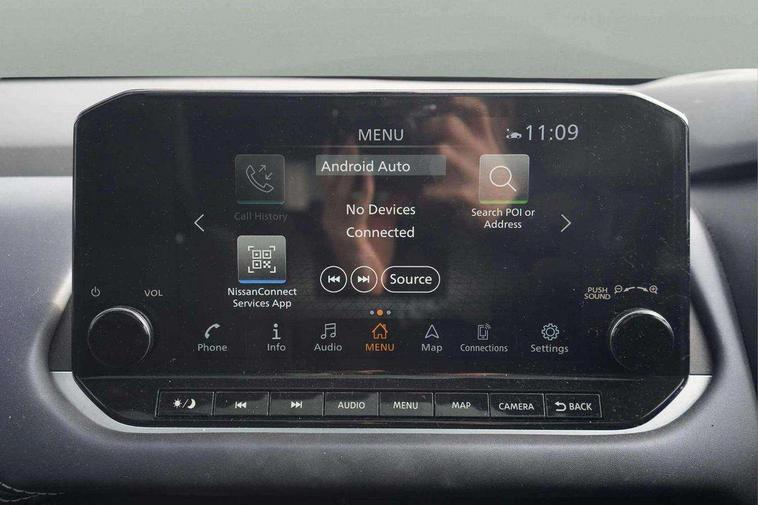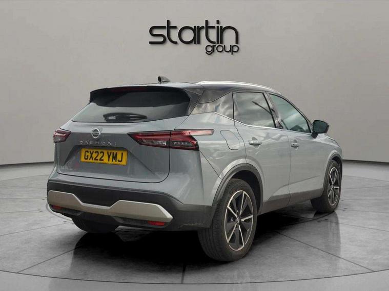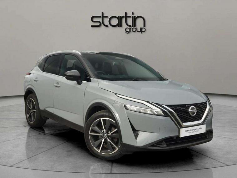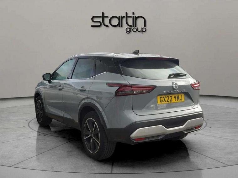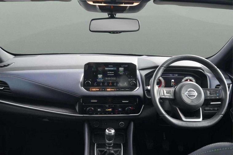 Blind spot warning, Drive modes (sport, normal, eco), Electric speed sensitive power steering, Emergency and breakdown call, Front and rear parking sensors, Full Digital 12.3" TFT Digital Combimeter, Google maps services - search, weather, 3D maps and Google street view, Hands free power tailgate, Idle stop/start system, Intelligent around view monitor, Intelligent Cruise control (ICC), Intelligent driver alert system, Intelligent forward collision warning, Intelligent lane intervention, Lane departure prevention, Lane departure warning system, Moving object detection, Nissan connect 9" touchscreen infotainment system, Nissan connect navigation, Push button starter, Rear cross traffic alert, Remote control services - door locks, lights, horn and car locator, Telematics - notifications and connectivity services, TomTom live traffic services, Traffic sign recognition with legal speed adjustment, Trip computer, Virtual personal assistant and firmware over the air capability, Wireless Apple CarPlay and wired Android Auto, Wireless charging pad, 6 speakers, AM/FM audio system with DAB, Bluetooth audio streaming, Front USB connections (Type-A and Type-C), Rear USB charging only ports (Type-A and Type-C), Auto dimming rear view mirror, Auto rear wiper when reversing, Body colour mirror caps, Body coloured door handles, Bodyside mouldings, Chrome side window finisher, Door handle with button, Dusk sensor, Electric auto folding door mirrors, Electrically adjustable and heated door mirrors with LED turn indicator, Fixed panoramic glass roof with electric sunshade, Follow me home headlights, Front and rear LED turning signals, Intelligent auto headlights, LED daytime running lights, LED rear lights, One touch front and rear electric windows with remote opening and closing, Partially body coloured bumpers, Privacy glass, Rear roof spoiler, Rear side wing doors, Rear styling plate, Roof rails, Shark fin antenna, Splash free rain sensing wipers, Super UV and infrared cut glass, Three blink turn signal, 12v power socket in dashboard and luggage, 2 way electrical driver lumbar adjustment, 2x Rear coat hooks, 3 bench rear seats in 2nd row, 3 rear headrests, 4 folding assist grip, 6 Luggage hooks - 4 on floor, 2 on side, 60/40 split folding rear seat bench, 8 way electric adjustable drivers seat, Ambient lighting around centre console, Ambient lighting in front doors, Centre console storage tray, Chrome interior door handles, Cloth/syntech leather monoform upholstery, Dark headlining, Driver and front passenger sunvisors with illuminated vanity mirrors, Driver seat back pocket, Dual zone automatic climate control with pollen filter, Front and rear door storage, Front cupholders x 2, Front door with bottle holders, Glovebox with light, Hard trunk cover, Height adjustable front headrests, Leather shift knob, Leather steering wheel, Luggage board system, Luggage space lighting, Manual lumbar support on passenger seat, Manually adjustable passenger (slide recline + lifter), Multifunction steering wheel, Passenger seat back pocket, PVC front centre console and armrest, Rear armrest with 2 cupholders, Rear door bottle holders, Single front passenger seat, Soft PVC kneepad, Steering wheel switches, Tilt/telescopic adjustable steering wheel, Two rear isofix child seat anchorage points with top tether, Welcome light and doors with console tray ambient lighting, Drive assist pack - Qashqai, Heat pack - Qashqai, Tech Pack (Drive Assist + HUD), 3x3 point rear seatbelt pretensioners + load limiters, ABS, ESP, EBD and brake assist, Active brake limited slip, Auto hold function, Child locks on rear doors, Curtain and front side, far side airbags, Driver and passenger airbags, Driver, passenger and 2nd row rear seat belt reminder, Electronic parking brake, Front seatbelt pretensioners + load limiters, Height adjustable front seatbelts, Hill start assist, Intelligent blind spot intervention, Intelligent front emergency braking with pedestrian, cyclist recognition and junction assist, Intelligent rear automatic braking, Tyre pressure monitoring system, Vehicle dynamic control, Capless fuel filler, Engine immobiliser, Nissan i-key, Rear bumper with silver insert, Remote central door locking with deadlocking, Thatcham Cat.1 alarm, 19" Alloy wheels,