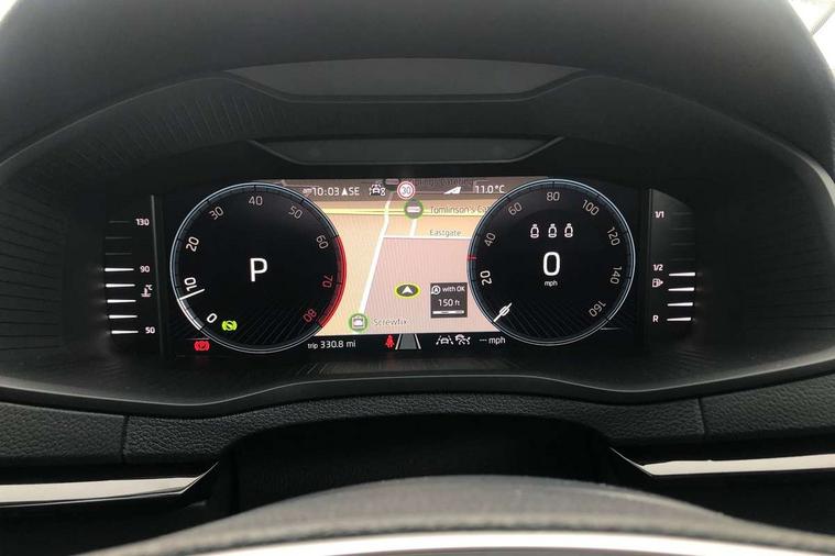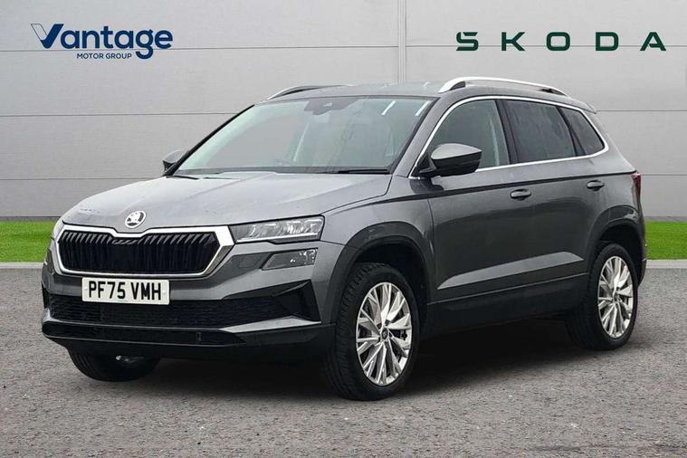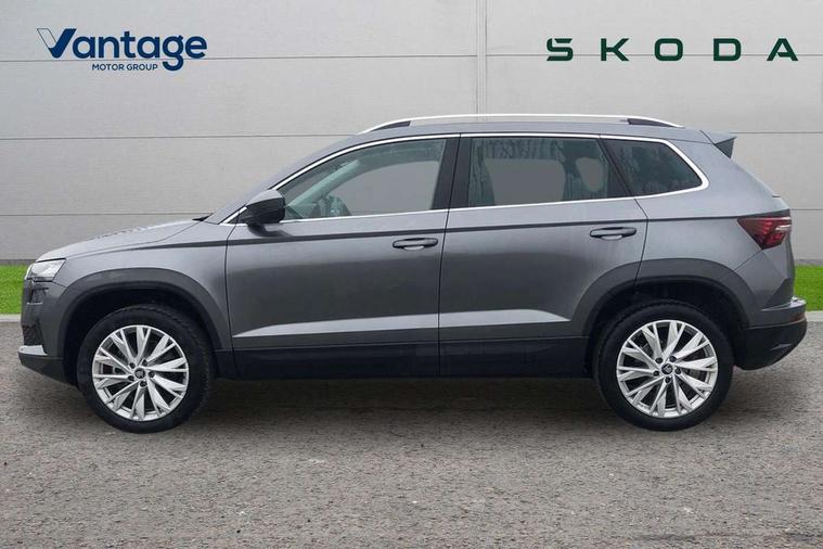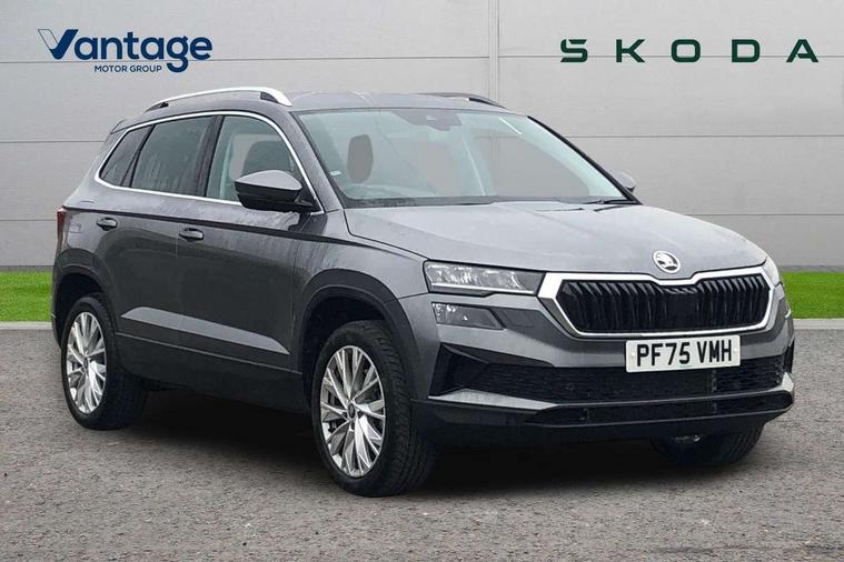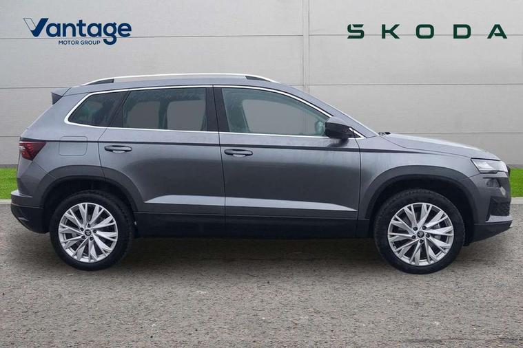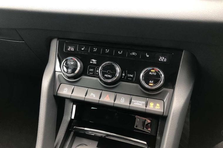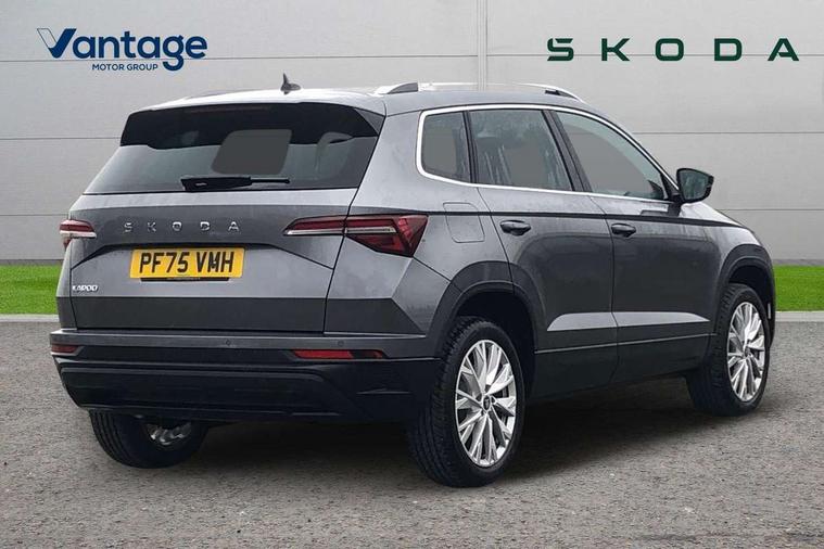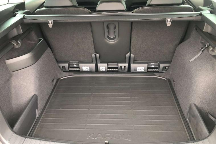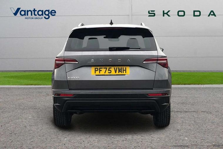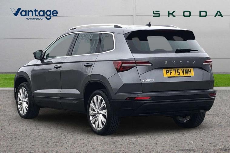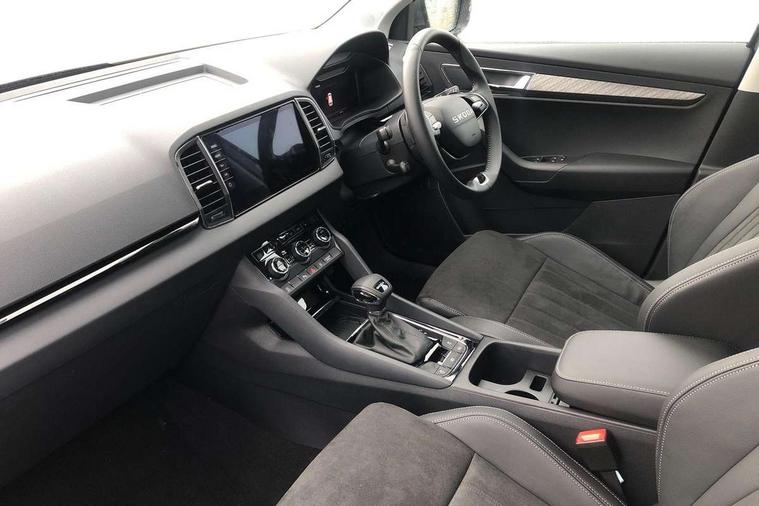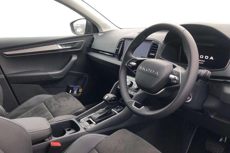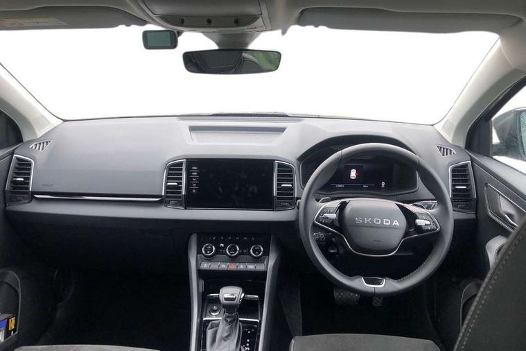 Advanced driver attention and drowsiness monitor, Drive Mode Selection including ECO function, Electro-mechanical PAS, Emergency services call system, Outside temperature gauge, Sensor for driver assistance systems, Service interval indicator, SmartLink wireless for Apple and wired for Android, Start/stop system with regenerative braking, Traffic sign recognition, USB C Port x 2 in front centre console, Virtual Cockpit - 10.25" digital display, Virtual pedal with electrically operated boot door, Wireless smartphone charging, DAB radio with Bluetooth, USB connection, Acoustic glass, Aero front windscreen wipers with intermittent function, Auto dimming rear view mirror with light and rain sensors, Black electric window control buttons, Body colour door mirrors and handles, Electric front and rear windows with child proof lock, Extended rear roof spoiler, Heated rear windscreen, LED daytime running lights, LED rear lights with high functionality welcome effect and dynamic indicators, Light assistant (coming/leaving home/tunnel light), Plastic scuff plates in door apertures, Privacy glass, Rear side wing doors, Rear window wiper with washer system and intermittent control, Safety reflectors on front doors, Third brake light, Unique dark chrome design logo on alloy wheels, 1.5 litre bottle holders in driver and front passenger door panels, 12V socket in boot, 12v socket in front centre armrest with storage compartment and rear air vents, 2 spoke leather heated multifunction steering wheel with DSG paddles, 2 x Tablet holder, 3 rear height adjustable headrests, 3 seat bench in 2nd row, 4 foldable roof handles with rear coat hooks, Black floor carpet, Cargo elements in boot, Chrome inner door handles, Decorative door sills with KAROQ badging, Foldable hooks in the boot, Front head restraints, Height adjustable front three point seats belts with tensioners, Height/reach adjust steering wheel, Ice scraper, Illuminated glovebox, Illuminated luggage compartment, Interior noise suppression, Isofix child seat preparation for front passenger seat, Isofix child seat preparation outer rear, Manual lumbar support for front seats, Pearl grey interior ceiling, Pen holder, Pollen filter, Rear backrest release from boot, Rear boot cover, Rear package tray, Rear reading lights, Rear seats fixed folding and divided 60:40, Rubbish bin door, Safety vest holder, Single front passenger seat, Skoda lettering on steering wheel, Storage box in upper central dashboard closed, Sunvisors with illuminated vanity mirrors, Textile floor mats, Ticket holder, Columbus pack - Karoq, Design Pack - Karoq, Non Smokers pack, Parking pack - Karoq, Automatic door unlocking in case of crash, Automatic fuel cut off in case of crash, Driver airbag, Electronic parking brake with auto hold function, Emergency rear braking signal, ESC (incl. ABS+MSR+ASR+EDS+HBA+DSR+RBS+MKB), Front side airbags, Head airbags, Hill hold control, Knee airbags, Passenger airbag with switch-off function, Pedestrian monitor, Power operated child safety locks, Seatbelt reminder signalisation and pretensioner for all seats, Three point seatbelts rear, Two tone horn, Tyre pressure monitor, Alarm with interior monitoring, back up horn and tilt sensor with safe function, Electronic engine immobiliser, Keyless entry and start/stop, Remote central locking with 2 remote folding keys, Black centre console, Chrome framed air vents, Satin black dashboard, Anti-theft wheel bolts protection, Breakdown and tool kit,