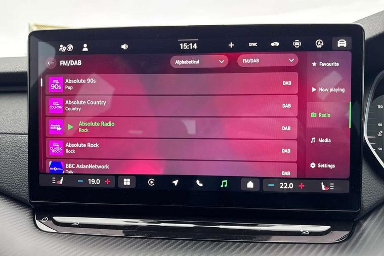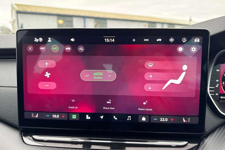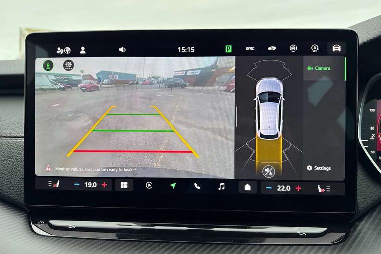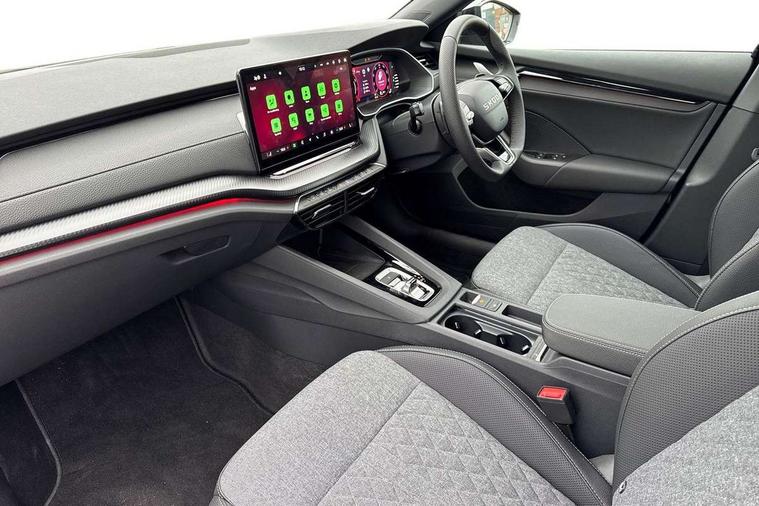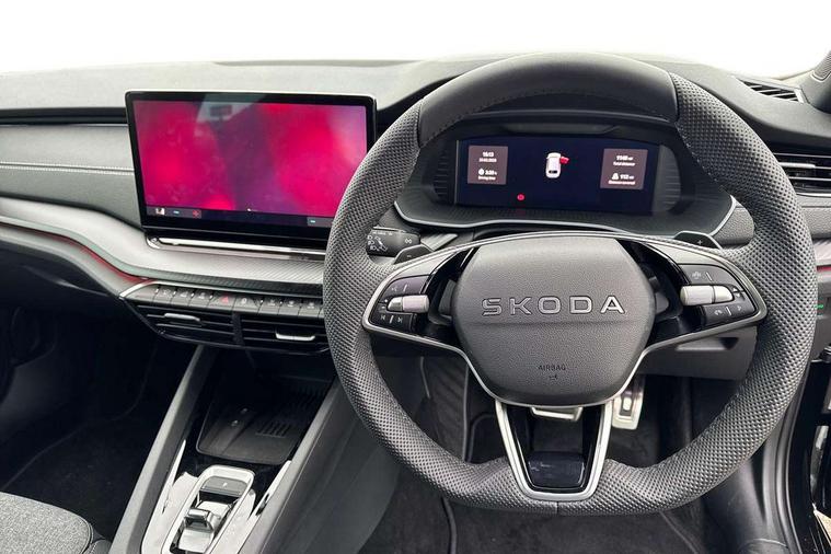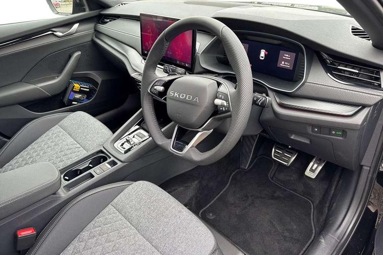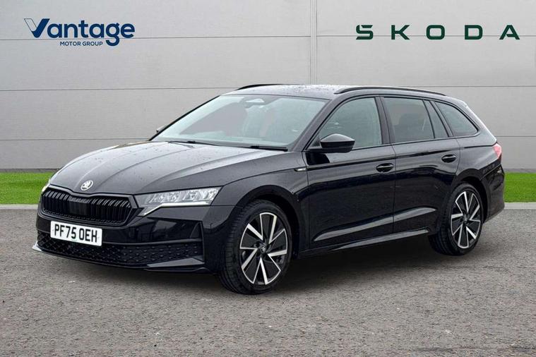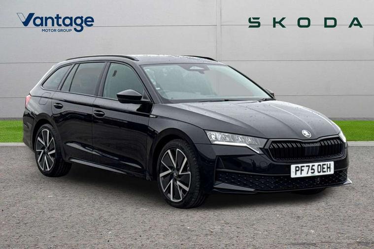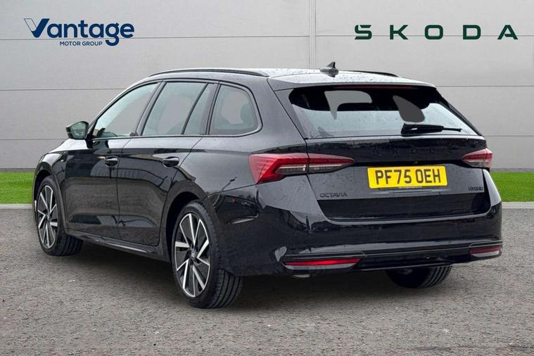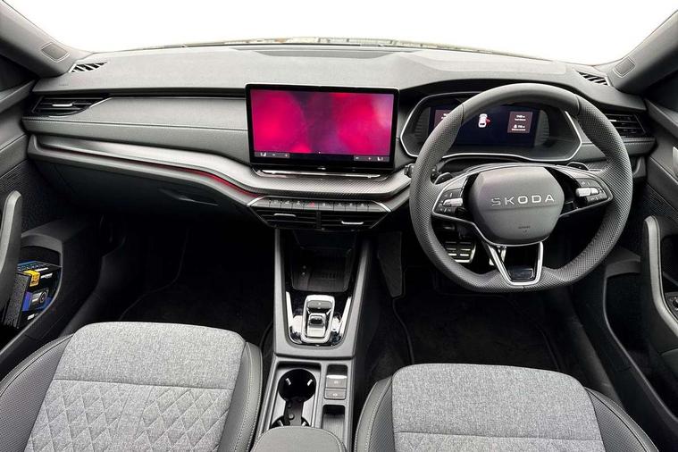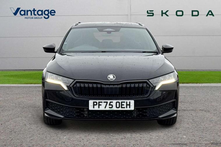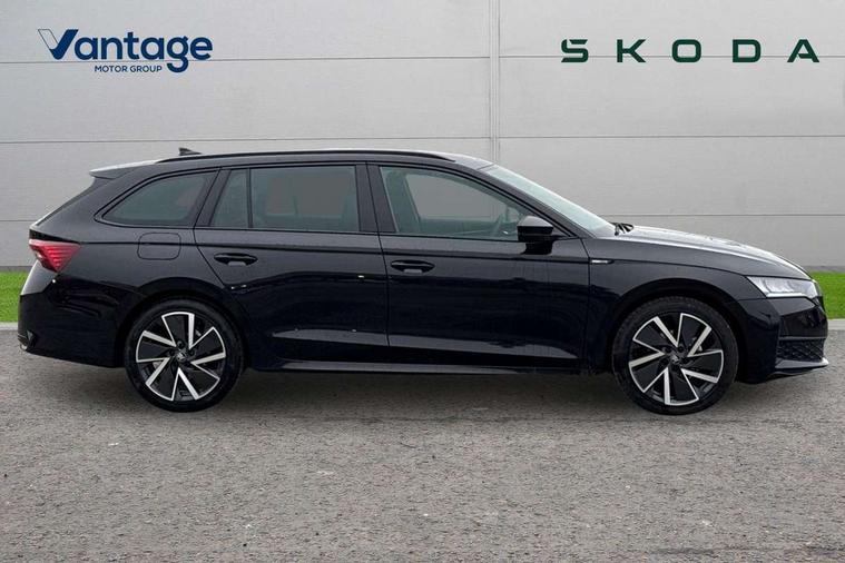 1x USB Typc C port in rear view mirror, 4x USB Type C ports - 2x in front centre console and 2x in rear (45W), Drive mode selection, Driver fatigue sensor, eCall emergency system, Front assist system, Progressive dynamic steering, Traffic sign recognition, Turn Assist, Virtual Cockpit - 10.25" digital display, Voice control system, Wireless charging (15W) with cooling function, Wireless SmartLink for Apple CarPlay and Android Auto, Sports suspension with 15mm lower, 13" touchscreen display with navigation, DAB Digital radio, Aero front windscreen wipers with intermittent function, Auto dimming rear view mirror, Body colour bumpers, Body colour door handles, Chrome strip in lower front bumper, Electric front and rear windows, Exterior gloss black sports styling including front grille, window surrounds, door mirrors and badging, Gloss black diffuser, Gloss black roof rails, Gloss black spoiler, Heated rear windscreen, High beam control, High level third brake light, Ice scraper in fuel cap, LED daytime running lights, Logo projection in front doors, Rain and light sensors, Rear fog light on one side and reversing lights on both sides, Rear privacy glass, Rear side wing doors, Rear window wiper, 12 volt socket in boot, 3 rear headrests, 3 seat bench in 2nd row, 4 foldable roof handles, Aluminium pedals, Front head restraints, Front sport seats, Heated front seats, Illuminated glovebox, Interior door handles in dark chrome, Jumbo Box storage, Luggage compartment lighting x2 lights, Mechanical rear seat release from boot, Single front passenger seat, Steering wheel in black leather with black stitching, Storage compartments in left and right of boot, Sun visors with mirrors, Sunglasses storage, Three spoke leather sports multifunction steering wheel with paddles, Ticket holder, Umbrella in door panel, Unsplit rear bench seat, split folding backrest with centre armrest with cupholder, SportLine Design Selection pack - Octavia, 3x3 point rear seat belts, Alarm with interior monitoring, tilt sensor and back up horn, Curtain airbags and front side airbags, Driver and front passenger airbags, Drivers knee airbag, Electronic parking brake, ESC including ABS, EBV, MSR, ASR, EDS, HBA, DSR, Front central airbag, Hill hold assist, ISOFIX on front passenger seat and outer rear seats, Passenger airbag deactivate switch, Three point seat belts in front and rear, Two tone horn, Tyre pressure monitor, Visual and acoustic seat belt reminder, Warning reflectors in front door, Anti-theft wheel bolts, Keyless entry and start/stop, Remote central locking, Gloss black air vent surrounds,