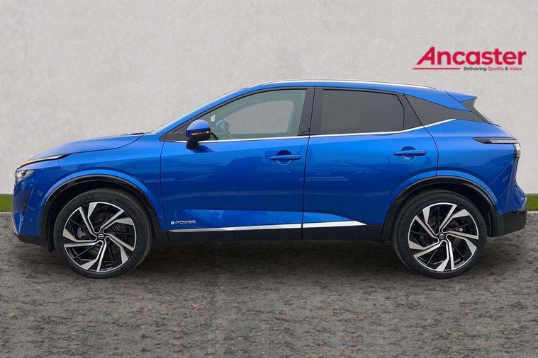 2 front USB-C ports, 2 rear USB-C ports, 360 degree Intelligent around view monitor with moving object detection, Advanced windscreen head up display, Blind spot intervention, Blind spot warning, Drive assist custom mode, Drive modes (sport, normal, eco), Driver drowsiness and attention warning, e-Pedal step, Electric speed sensitive power steering, Emergency and breakdown call, Emergency lane keep assist, Emergency Stop Signal (ESS), Engine start/stop button, EV mode switch, Event data recorder, Front and rear parking sensors, Full Digital 12.3" TFT Digital Combimeter, Google virtual personal assistance, Hands free power tailgate, Idle stop/start system, In-car WIFI hotspot, Intelligent Cruise control (ICC), Intelligent forward collision warning, Intelligent speed assist, Lane departure warning system, Nissan connect 12.3 inch touchscreen infotainment system, Nissan connect navigation with google maps, Nissan connect services 2.0 (Google Automotive System), Outside temperature sensor, Rear cross traffic alert, Reversing detection, Traffic jam pilot, Wireless Apple CarPlay/Android Auto, Wireless charging pad, Limited slip differential, Multi link suspension, 10 Bose speakers - 2 tweeters, 6 high and medium frequency door speakers and 2 in subwoofer, AM/FM audio system with DAB, Bluetooth audio streaming, Bose acoustimass bass box, Auto dimming frameless rear view mirror, Auto rear wiper when reversing, Body colour mirror caps, Body coloured bumpers, Body coloured door handles, Bodyside mouldings, Chrome side window finisher, e-POWER badging, Electric auto folding door mirrors, Electrically adjustable and heated door mirrors with LED turn indicator, Follow me home headlights, Glossy black bumper inserts and fenders, High beam assist, Intelligent auto headlights, LED 3rd brake light, LED daytime running lights, LED headlights with adaptive driving beam, LED rear lights, LED sequential turn lights, One touch front and rear electric windows with remote opening and closing, One touch passenger window, Rear privacy glass, Rear roof spoiler, Rear side wing doors, Rear styling plate, Reverse tilting door mirrors, Shark fin antenna, Silver roof rails, Splash free rain sensing wipers, Super RED rear LED lights, Super UV and infrared cut glass, Thermaclear heated windscreen, 3 bench rear seats in 2nd row, 3 rear headrests, 60/40 split folding rear seat bench, Chrome interior door handles, Dark headlining, Driver seat back pocket, Dual zone automatic climate control with pollen filter, e-POWER shifter, Fixed Glass roof with electric sunshade, Front door with bottle holders, Heated front seats, Heated steering wheel, Height adjustable front headrests, Luggage board system, Luggage space lighting, Multifunction steering wheel, Passenger seat back pocket, Quilted premium leather upholstery, Rear door bottle holders, RGB ambient light (Full area coverage), Single front passenger seat, Smooth leather steering wheel, Tilt/telescopic adjustable steering wheel, Two rear isofix child seat anchorage points with top tether, 3x3 point rear seatbelt pretensioners + load limiters, Autonomous emergency braking, Child locks on rear doors, Curtain and front side, far side airbags, Driver and passenger airbags, Driver, passenger and 2nd row rear seat belt reminder, Electric handbrake with auto hold function, Front seatbelt pretensioners + load limiters, Height adjustable front seatbelts, Hill start assist, intelligent front emergency braking, Rear automatic braking, Tyre pressure monitoring system, Vehicle dynamic control, Engine immobiliser, Intelligent key with walk away lock and approach unlock functions, Remote central door locking with deadlocking, Thatcham alarm, 20" Diamond cut alloy wheels, Tyre puncture repair kit,