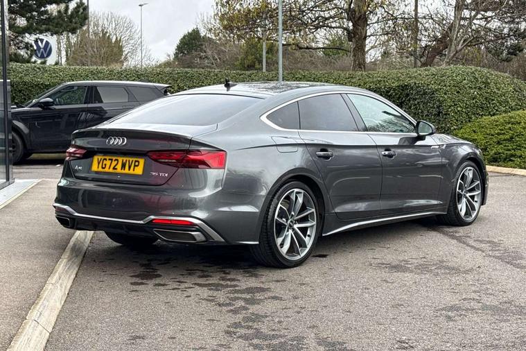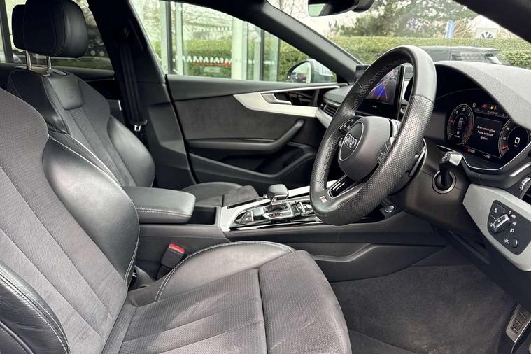 Audi connect safety and service (e-call), Audi connect with Amazon Alexa Integration, Audi drive select (Auto, Comfort, Dynamic, Efficiency and Individual), Audi parking system plus with front and rear sensors, Audi smartphone interface, Audi virtual cockpit - 12.3" full colour digital instrument cluster, vehicle/engine speed, Radio/media information+Driver assistance systems, Automatic start-stop system with coasting functionality and efficiency programme, Bluetooth interface, Electro-mechanical power steering, Email, calendar and text messages displayed via MMI, MMI nav+ with MMI touch - 10.1" high resolution MMI display, touch sensitive, 3D map, route/country info, dynamic route guide, personal route assist, Power operated tailgate, Rear view camera, Service interval indicator, Voice control system, Diesel particulate filter, Sports suspension lowered by 23mm, 8 passive loudspeakers, CD player, DAB digital radio reception, Two additional USB ports for rear passenger in rear centre console, Two SDXC card slots, Audi matrix LED headlights with LED rear lights + dynamic front and rear indicators, Auto dimming door mirrors, Auto dimming rear view mirror, Body colour bumpers, Body colour door handles, Body colour front spoiler lip, Body colour side sill trim, Body coloured door mirrors, Electric adjustable heated door mirrors, Electric folding door mirrors, Electric front windows, Front fog lights, Honeycomb structure radiator grille in grained matt black, Kerb-view function for passenger side, LED daytime running lights, LED side indicator lights integrated into door mirrors, LED third brake light, Matt aluminium silver tailpipe trim, Privacy glass, Rain and light sensors, Rear side wing doors, S line badges on front wings, S line front and rear bumpers with side skirts, S Line rear diffuser in matt titanium black with trim strip in matt aluminium silver, Side air inlets in grained matt black with matt aluminium silver inlay, Variable front intermittent wipers, Windscreen with acoustic glazing, 3 seat bench in 2nd row, 4 way electric lumbar support for driver and front passenger, 40/20/40 split folding 3 seater rear bench seat, Adjustable steering column, Black cloth headlining, Black perforated leather gearknob, Contrast stitching on seats, steering wheel and gear lever gaiter, Deluxe 3 zone electronic climate control, Front centre armrest, Front head restraints, Front/rear floor mats, Heated front seats, Illuminated door sill trim with S logo, ISOFIX child seat mounting and top tether, Luggage compartment mat, Manual seat adjustment, Rear centre armrest, Rear headrests, Single front passenger seat, Stainless steel pedals, Sunvisors with vanity mirrors, LED interior light pack - A5/RS5, 3x3 point rear seatbelts, 6 airbags - Driver, front passenger, curtain and side airbags, Electromechanical parking brake, Electronic Stabilisation Control (ESC) including ABS, ASR and EDL, Front passenger airbag deactivation, Height adjustable front seatbelts, Hill hold assist, Manual child lock in rear doors, Multi collision brake assist, Pop-up bonnet for pedestrian protection, Pre sense city, Seatbelt monitoring, Tyre pressure warning, Variable restraint system, Warning triangle and first aid kit, Anti theft alarm system, Anti theft wheel bolts, Immobiliser, Keyless Go, Remote central locking, Matt brushed aluminium inlays, Tool kit, Tyre repair kit,