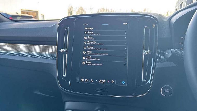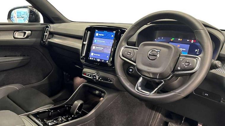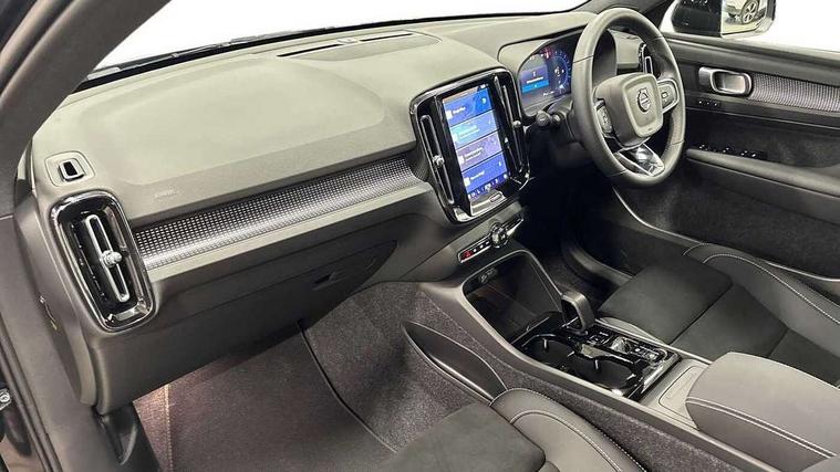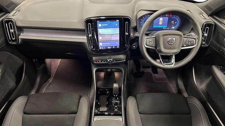 12.3" Progressive Driver Display, 9" centre console portrait touch screen, Adjustable steering wheel force, Android auto (Wired), Apple carplay (wired), Bluetooth handsfree system, Driver alert control, Driver assistance (pilot assist and adaptive cruise control), Driver awareness - Blind spot information system with steer assist, cross traffic alert with autobrake and rear collision warning and mitigation, E-call, Front park assist, Google automotive services - Enabled entertainment apps, navigation with google maps, voice recognition with google assistant, Hands free power tailgate, Intelligent speed assistance, Lane keeping aid, Oncoming Lane Mitigation, Rear park assist, Speed sensitive steering, Volvo cars services with app - Driving journal, emergency and breakdown call, engine remote start, remote door locking/unlocking and vehicle dashboard, Wireless/Inductive Mobile Phone Charging, Automatic transmission with start/stop and manual change functions, Dynamic chassis, DAB Digital radio, Steering wheel mounted remote controls, Adaptive brake lights with high level LED brake lights, Auto dimming feature for exterior door mirrors, Auto dimming interior mirror, Automatic headlamp levelling, Automatic LED Headlights + Active high beam incorporating daytime running lights, Colour coordinated auto folding and heated power door mirrors, Dark tinted windows - rear side windows and rear screen, Front aluminium tread plates, Front and rear electric windows, High gloss black front and rear skid plate, High gloss black front bumper deco, High gloss black front grille strikethrough and ironmark, High gloss black rear model, engine and volvo logo badges, High gloss black window trim, Home safe and approach lighting, Integrated roof rails in high gloss black, LED front fog lights, Puddle lights, Rain sensor with automatic windscreen wiper activation, Rear side wing doors, Rear wiper, Roof antenna, Roof spoiler, Visible VIN plate, 12V socket in front tunnel console and luggage compartment, 2-Zone electronic climate control with CleanZone air quality system and pollen filter, 3 seat bench in 2nd row, 3 Spoke tailored steering wheel with chrome trim, 60/40 versatile split folding rear seat, Centre console cupholders and storage, Charcoal headlining, Connect textile/microtech upholstery, Flexible load floor and grocery bag holder, Floor mats, Front cabin courtesy lights, Front door pocket, front cupholder, ambient front door, rear reading, rear courtesy, instrument panel and tailgate lighting, Front footwell illumination, Front headrests, Front reading lights, Front seat cushion extensions, Front side step illumination (under door), Glovebox bag hook, Heated front seats, Height adjustable passenger seat, Height/reach adjustable steering column, High gloss centre tunnel deco, Illuminated glovebox, Illuminated luggage compartment, Illuminated vanity mirrors + ticket holder, Integrated waste bin, Isofix attachments on outer rear seats, Load cover, Load protection net, Multi directional lumbar support for driver and passenger seat, Power driver seat with memory + exterior mirrors memory, Rear armrest with cupholders, Rear headrests, Single front passenger seat, Underfloor cargo storage, Climate pack without heated front seats - XC40, 3x3 point rear seatbelts, City safety with steering support with Pedestrian + cyclist + front collision warning with full auto brake and rear auto brake, Driver and passenger airbags, Drivers knee airbag, Electronic parking brake with auto hold, First aid kit, Front and outer rear seatbelt reminder and pretensioners, Front seats SIPS airbags, Hill descent control, Hill start assist, Inflatable curtain, Passenger airbag cut-off device, Power child locks on rear doors, Road sign information display, Run off Road Protection, SIPS (Side Impact Protection System), Slippery road and hazard light alert, Stability and Traction Control with Spin control, Engine Drag Control and Corner Traction Control, Tyre pressure monitoring system, Vehicle deceleration control with Anti-lock Brake System, Electronic Brake Distribution and Emergency Brake Assist, Warning triangle, WHIPS whiplash protection system - front, 2 x Key integrated remote control central locking including with deadlocking system and auto open/close windows, Anti-theft alarm including immobiliser/volume sensor + level sensor, Keyless drive includes keyless entry and keyless start, Locking wheel nuts, 20" 5 spoke high gloss black alloy wheels,