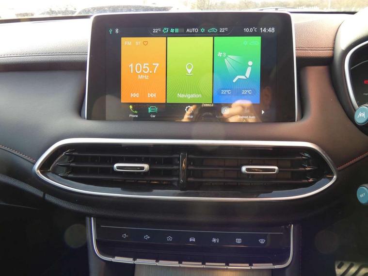 10.1" colour touchscreen, 12.3" Full digital driver information display, Adaptive cruise control, Android Auto, Apple CarPlay, Blind Spot Detection (BAS), Bluetooth connectivity, Driving modes, Emergency call service, Intelligent speed assist, Lane keep assist system (LAS) with Lane departure warning system (LDWS), PAS, Power tailgate, Rear cross traffic alert, Rear parking camera, Rear parking sensors, Satellite navigation system, Tailgate, Traffic jam assist, Trip computer, USB mobile phone charging function, 6 speaker audio system, DAB audio, Auto dimming rear view mirror, Automatic headlights, Body colour electric adjustable heated door mirrors, Electric folding door mirrors, Follow me home headlights, Front and rear aero wiper, Front and rear electric windows with one-touch up/down, Front fog lights, Intelligent high beam, LED Bi-Function headlights, LED centre brake light, LED daytime running lights, LED front and rear sequential indicators, Rain sensing wipers, Rear privacy glass, Rear side wing doors, Silver roof rails, 12V power sockets, 2nd row 60/40 split fold seat, 2nd row seat with 2 stage incline adjustment, 3 rear headrests, 3 seat bench in 2nd row, 4 way electric adjustable passenger seat, 6 way electric adjustable drivers seat + lumbar support, Ambient lighting (adjustable colour), Dual zone automatic air conditioning, Front centre sliding armrest with storage compartment, Front headrests, Heated front seats, Height and reach adjustable steering wheel, ISOFIX restraints on outer rear seats x2, Leather steering wheel, Metal sports pedals, Single passenger seat, Sports Style Front Seats with One-Piece Back, Steering wheel paddle shift, 3x3 point rear seatbelts, ABS/EBD, Active emergency braking with pedestrian/Bicycle detection, Anti rolling protection, Cornering brake control (CBC), Drivers seatbelt reminder, Dual front airbags, Electric parking brake with auto hold function, ESP, Front and rear passenger seat belt reminder, Front passenger airbag deactivation switch, Front seat belt height adjuster, Front seatbelts (3-point + pretensioner + load limiter), Front side airbags, Hill descent control, Hill launch assist, Manual rear child locks, Rear outer seatbelt pretensioner and load limiter, Side curtain airbags, Tyre pressure monitoring system, Alarm system and engine immobiliser, Keyless entry and push button start system, Remote central locking, Speed sensing door locks, 18" Hurricane diamond cut alloy wheels, Tyre repair kit,