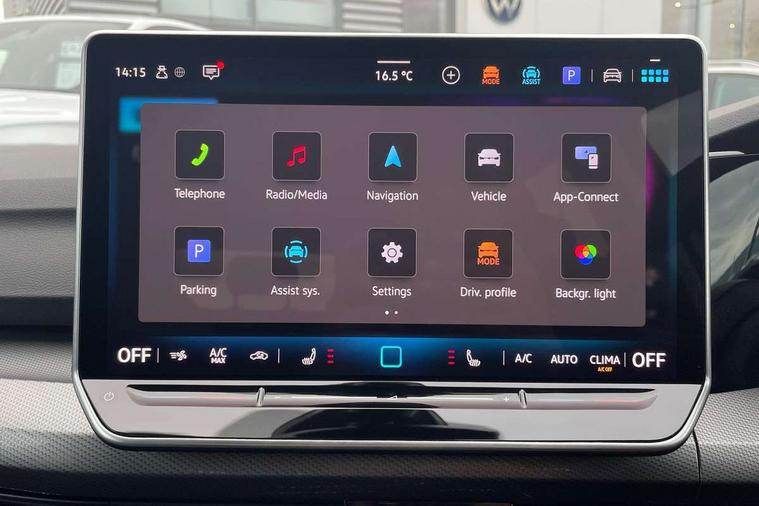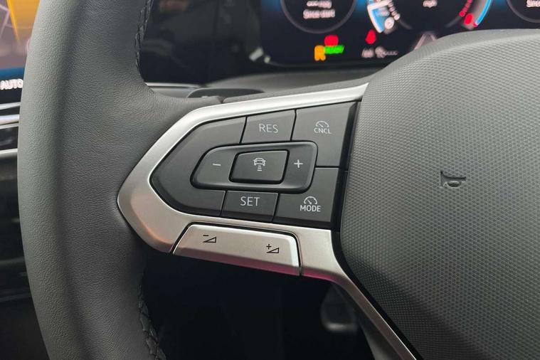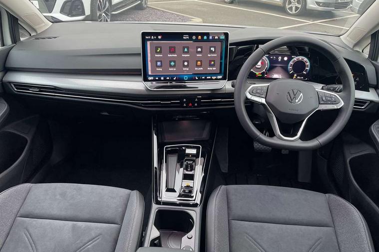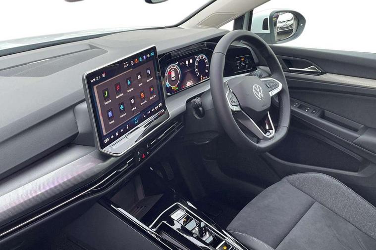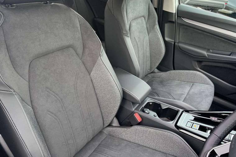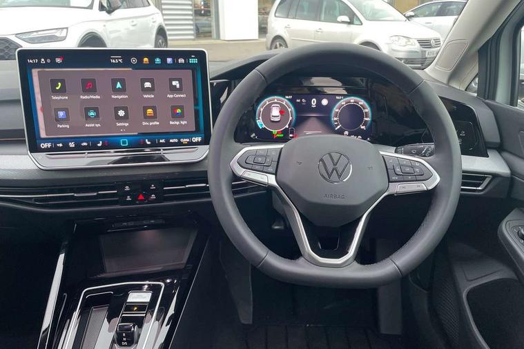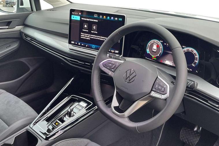 Activated carbon canister, Adaptive cruise control (ACC), Advanced driver attention and drowsiness monitor, Dynamic road sign display, E-Sim card for online connectivity, eCall emergency call system, Multi-color Digital cockpit pro, selection of different info profile possible, Multifunction front facing camera for distance control, Navigation system, Oncoming vehicle braking when turning including swerve support, Side assist blind spot lane change system, rear traffic alert and exit warning system, Speed limiter, Speedo, rev counter, electronic odometer, trip, service interval display, exterior temperature and fuel gauge, Traffic jam assist, Voice enhancer and voice control, Warning signal and warning light for front and rear seatbelts not fastened, We connect plus preparation, We connect preparation, Wireless app connect, Hybrid propulsion system, Petrol Particulate Filter, Start-stop system with battery regeneration (recuperation - energy recovery during braking), XDS electronic differential lock for improved traction and handling, 2 USB C ports in front, 2 USB charging sockets on the centre console in the rear charging capacity upto 45W, Digital radio reception (DAB), Diversity antenna for FM reception, Gaming platform via car app, Infotainment system with 12.9" display, Mobile phone interface with inductive charging feature, 3rd brake light, Automatic headlamp activation with Coming home and Leaving home feature, Body colour bumpers, Body colour door handles, Body colour door mirrors, Chrome trimmed front air intake surrounds, Chrome trims on the side window bottom, Exterior mirrors convex on the left and aspherical on the right, Front and rear electric windows, Heat insulating windshield made of laminated glass, LED separate daytime running light, Rear exhaust tailpipe, Rear fog light on one side and reversing lights on both sides, Rear side wing doors, Rear windscreen washer and wiper with interval delay, Remote electrically foldable door mirrors, puddle lights and reverse activated passenger's door mirror, Welcome light with surround lighting, 12V socket in front centre console, 12V socket in luggage compartment, 3 rear head restraints, 3 seat bench in 2nd row, Air care climatronic 3 Zone automatic climate control with rear air conditioning control panel, Ambient lighting with 30 colour including LED light unit in front footwell with selectable light colour, Art velours cloth upholstery, Chrome plated radiator grille inserts, air vent surrounds and light switch surrounds, Door insert, side trim panel and arm support in leatherette, Front + rear black carpet mats, Front centre armrest, Front head restraints, Front seat lumbar support adjuster, ISOFIX anchors for child seats on outer rear bench seats and on front passanger seat compatible for i-Size, Luggage compartment lighting, Manual height adjustable front passenger seat, Manually height adjustable driver seat, Plastic gear knob, Rear cupholder and loadthough, Single front passenger seat, Soul black instrument panel, Split folding backrest with centre armrest and unsplit rear seat bench, Sports comfort seats in front, Standard pedal cluster, Storm grey roof lining, Sun visors with illuminated vanity mirrors, Driver assistance pack - Golf Estate/Hatchback Auto, 3 point height adj front seatbelts + pretensioners, 3 rear three point seatbelts, ABS, Autonomous emergency braking front assist with pedestrian and cyclist monitoring, Child locks on rear doors, Driver and front passenger airbag with front passenger airbag deactivation, Electronic parking brake with auto hold, ESC (Electronic Stability Control), Extended pedestrian protection measures, Hill start assist, Rear disc brakes, Two tone horn, Tyre pressure loss indicator, Volkswagen roadside assistance, Anti theft wheel bolts, Preparation for alcohol interlock, New brushed dark metal decorative inserts for dashboard and front door panels,