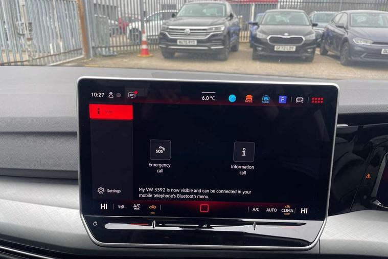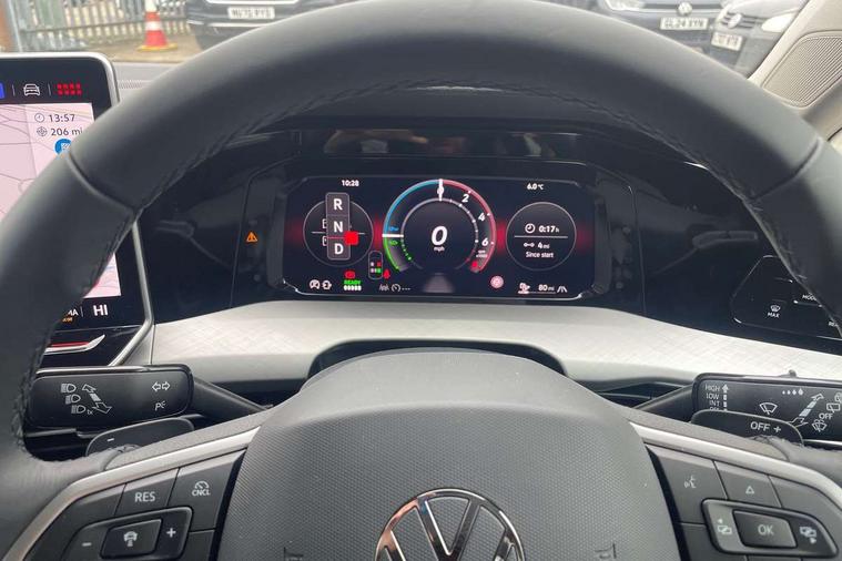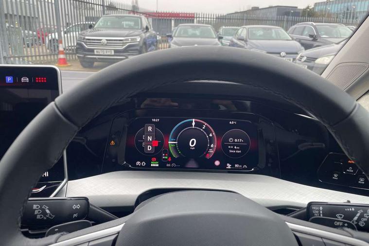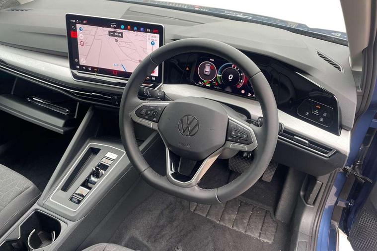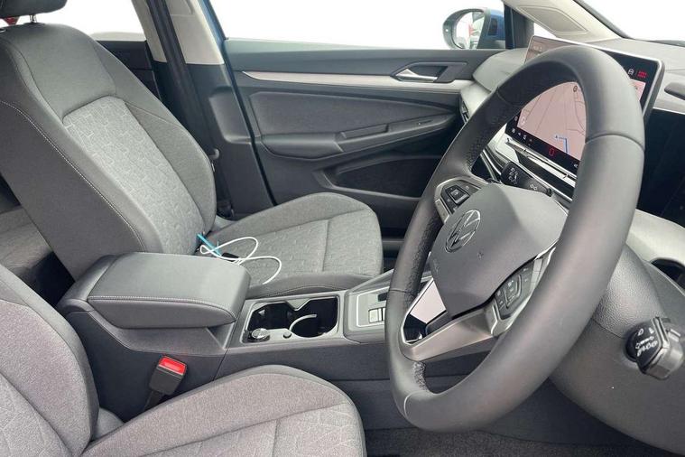 Activated carbon canister, Adaptive cruise control (ACC), Advanced driver attention and drowsiness monitor, Dynamic road sign display, E-Sim card for online connectivity, eCall emergency call system, Multi-color Digital cockpit pro, selection of different info profile possible, Multifunction front facing camera for distance control, Navigation system, Oncoming vehicle braking when turning including swerve support, Speed limiter, Speedo, rev counter, electronic odometer, trip, service interval display, exterior temperature and fuel gauge, Traffic jam assist, Voice enhancer and voice control, Warning signal and warning light for front and rear seatbelts not fastened, We connect plus preparation, We connect preparation, Wireless app connect, Charging cable Mode 2 Type 2 (10A), Charging cable mode 3, type 2 32 A, Electric motor (hybrid electric vehicle) total system output 200kw, unit OEK A, Hybrid propulsion system, Petrol Particulate Filter, Start-stop system with battery regeneration (recuperation - energy recovery during braking), XDS electronic differential lock for improved traction and handling, 2 USB C ports in front, 2 USB charging sockets on the centre console in the rear charging capacity upto 45W, 6 Speakers - 4 in front and 2 in rear with central speaker, Digital radio reception (DAB), Diversity antenna for FM reception, Gaming platform via car app, Infotainment system with 12.9" display, Mobile phone interface with inductive charging feature, 3rd brake light, Automatic headlamp activation with Coming home and Leaving home feature, Body colour door handles, Body colour door mirrors, Exterior mirrors convex on the left and aspherical on the right, Front and rear electric windows, Heat insulating windshield made of laminated glass, LED separate daytime running light, Rear exhaust tailpipe, Rear fog light on one side and reversing lights on both sides, Rear side wing doors, Rear tinted glass 65% light absorbing from B pillar backwards, Rear windscreen washer and wiper with interval delay, Remote electrically foldable door mirrors, puddle lights and reverse activated passenger's door mirror, Standard bumpers, Welcome light with surround lighting, 12V socket in front centre console, 12V socket in luggage compartment, 3 rear head restraints, 3 seat bench in 2nd row, Air care climatronic 3 Zone automatic climate control with rear air conditioning control panel, Chrome plated radiator grille inserts, air vent surrounds and light switch surrounds, Front + rear black carpet mats, Front centre armrest, Front head restraints, Front seat lumbar support adjuster, ISOFIX anchors for child seats on outer rear bench seats and on front passanger seat compatible for i-Size, Luggage compartment lighting, Manual height adjustable front passenger seat, Manually height adjustable driver seat, Plastic gear knob, Rear cupholder and loadthough, Single front passenger seat, Soul black instrument panel, Split folding backrest with centre armrest and unsplit rear seat bench, Standard pedal cluster, Storm grey roof lining, Sun visors with illuminated vanity mirrors, Technology park and comfort pro package - Golf Hatchback, 3 point height adj front seatbelts + pretensioners, 3 rear three point seatbelts, ABS, Autonomous emergency braking front assist with pedestrian and cyclist monitoring, Child locks on rear doors, Driver and front passenger airbag with front passenger airbag deactivation, Electronic parking brake with auto hold, ESC (Electronic Stability Control), Extended pedestrian protection measures, Hill start assist, Rear disc brakes, Two tone horn, Tyre pressure loss indicator, Volkswagen roadside assistance, Anti theft wheel bolts, Preparation for alcohol interlock, Nature cross brushed decorative inserts for dashboard and front door panels, Tool kit for tyre mobility set, Tyre mobility kit Includes 12V compressor and tyre sealant,