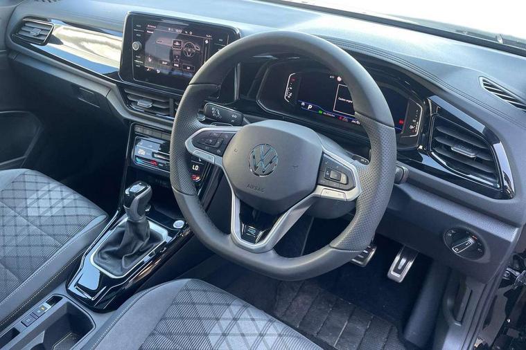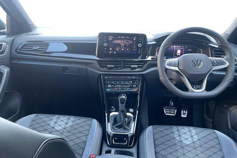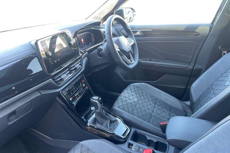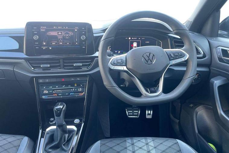 10.25" Digital cockpit pro, Advanced driver attention and drowsiness monitor, Emergency call service, Lane keeping system Lane Assist, Mobile phone interface, Modified key software - reduce switch off time for key status change to Long no motion, Online services, Park assist including front and rear parking sensors, Power assisted speed sensitive steering, Rear view camera, Service interval indicator, Tailgate/trunk lid release from outside, Think blue trainer driver tips and journey analysis, Warning sound and light for front seatbelts unfastened, Wireless app connect, Battery regeneration during braking, Rear shock absorption chassis with increased ride height, Start/stop function with battery regeneration, DAB Digital radio, Diversity antenna for FM reception, Music playback - MP3, WMA and AAC files, SD card slot, Simultaneous pairing of 2 compatible mobile devices, Title and cover art display, We Connect and We Connect Plus functionality, Advanced dynamic light assist for LED matrix headlights, Auto dimming interior rear view mirror, Automatic hazard lights activation under emergency braking, Black roof rails, Dynamic cornering light, Dynamic headlight range control with self adjusting whilst driving, Electrically adjustable and heated door mirrors, Extended roof spoiler, Exterior ambient lighting, Exterior mirrors aspherical on driver side, convex on front passenger side, External USB type C socket and charging sockets, Front windscreen wiper with intermittent wipe and 4 position delay, Heated rear window, Illuminated front grille, IQ LED matrix headlights, LED 3rd brake light, LED rear number plate lights, LED rear tail lights with dynamic turn signal, LED separate daytime running light, Light mode for poor weather, rain, fog or snow, Power windows with comfort operation and circuit breaker, Privacy glass for rear side windows and rear window, R-Line design body coloured bumpers, Rain sensor, Rear exhaust tailpipe, Rear fog light on one side and reversing lights on both sides, Rear side wing doors, Rear wash/wipe with intermittent wipe setting, Remote electrically foldable door mirrors, puddle lights and reverse activated passenger's door mirror, Tilting and sliding panoramic sunroof with rear panoramic sunroof, 12V power socket in centre console, 3 rear head restraints, 3 seat bench in 2nd row, 4 load lashing points in luggage compartment, Air care climatronic air conditoning system with active combination filter and 2-zone temperature control, Chrome plated radiator grille inserts, air vent surrounds and light switch surrounds, Door and side trim panel with leatherette insert, Drawer under drivers seat, Front + rear carpet mats, Front centre armrest, Front comfort sports seats, Front cupholders x 2, Front footwell illumination, Front reading light, Front scuff plates with R Line logo, Front seat back storage pockets, Glove compartment door with light, Instrument lighting, white adjustable panel illumination, Interior ambient lighting and surround lighting, Interior light delay, Isofix child seat preparation, Leather gearshift handle, Load-through provision with cup holder when folded down ('Unsplit rear seat bench, split folding backrest, with centre armrest), Luggage compartment lighting, Non-folding front passenger seat backrest, Single front passenger seat, Stainless steel pedals, Storage compartment in left and right luggage area, Storage compartment in rear doors, Storage compartments in driver and front passenger doors, Sunvisors with illuminated vanity mirrors, Variable boot floor, height adjustable and removable, Black design pack - T-Roc black edition plus, Easy open package with safelock - T-Roc, Sport pack with sports suspension - T-Roc, 3 point height adj front seatbelts + pretensioners, 3 point seatbelts in outer rear with ECE label, ABS, Child locks on rear doors, City emergency braking and pedestrian monitoring, Driver and front passenger airbag with front passenger airbag deactivation, Driver and front passenger safety-optimised head restraints, Drivers seatbelt reminder, Electronic parking brake, Electronic Stability Control (ESC) inc EDL (Electronic Differential Lock) and ASR (Traction Control), Front and rear passengers curtain airbag system including front side airbags, Front disc brakes, Hill start assist, Predictive pedestrian protection, Rear disc brakes, Two tone horn, Tyre pressure loss indicator, Volkswagen roadside assistance, Keyless locking and starting system keyless access with safelock, Gloss deep iron dash trim, 19" Misano black diamond turned alloy wheels with low rolling resistance and anti theft wheel bolts, Tool kit, Trims for alloy wheels, Tyre mobility kit including compressor and sealing foam,