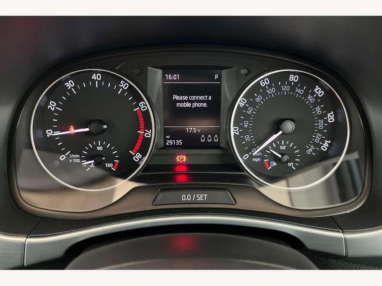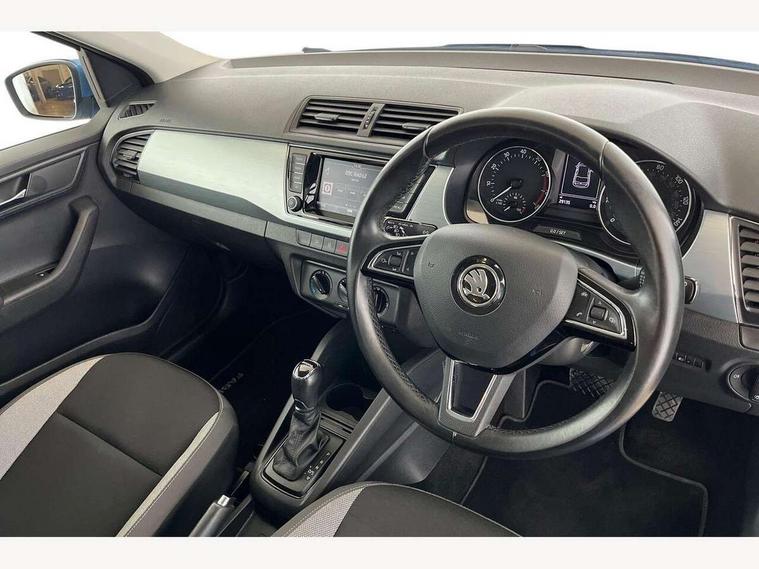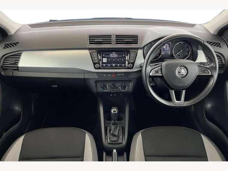Bluetooth system, Exterior temperature gauge, Front assistant collision mitigation, Multi function trip computer, PAS, Service interval indicator, SmartLink, 6.5" touchscreen, Auxiliary socket for external MP3 player, Bolero Radio, DAB Digital radio, SD card slot, USB interface, Body colour bumpers, Body colour door handles, Chrome grille surround, Electric front windows, Electrically adjustable and heated door mirrors, Heated rear window, Height adjustable headlamps, Intermittent rear wash/wipe, Tinted rear windows, Tinted windscreen, 1.5L bottle holder in front door panels, 2 height adjustable rear headrests, 60/40 split folding rear seat, Boot stowage box, Cargo area storage tray, Driver + passenger vanity mirrors, Folding grab handles, Front reading lights, Height adjustable driver's seat, Height adjustable front headrests, Height adjustable passenger seat, Height/reach adjust steering wheel, Interior light with delay, Leather gearshift, Leather handbrake, Lower glovebox cover, Luggage load hooks, Parcel shelf, Pollen filter, Rear courtesy light, Rear storage trays, Ticket holder, Two rear outer seat isofix location points, Umbrella under front passenger seat, Arkamys surround sound pack - Fabia, Chrome Pack - Fabia, 3x3 point rear seatbelts, ABS, Curtain airbags, Driver and passenger airbags, Driver and passenger side airbags, EDS, ESC with ASR, Front seatbelt pretensioners, HBA (Hydraulic Brake Assist), Hill hold control, Motor Slip Regulation (MSR) - Engine Drag Torque Control, Passenger airbag deactivate switch, Seatbelt warning, Tyre pressure monitor, Alarm with interior monitoring, Immobiliser, Locking wheel bolts, Remote central locking,