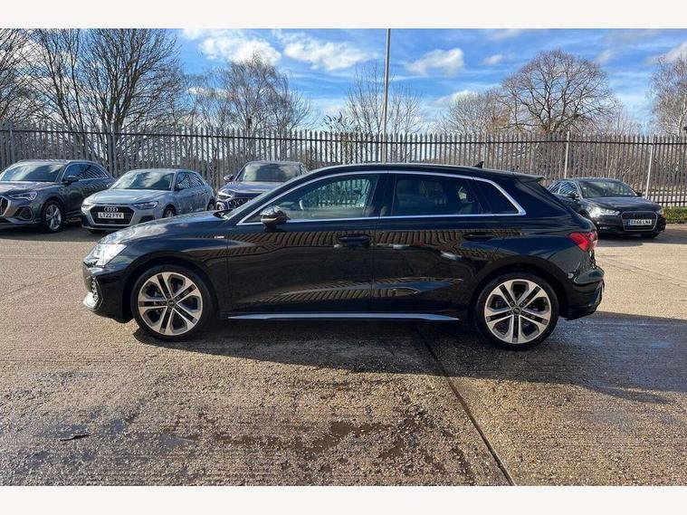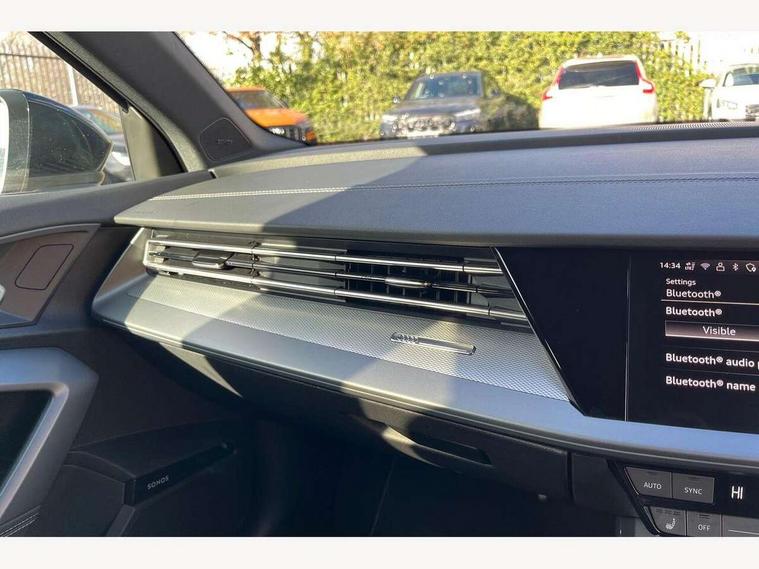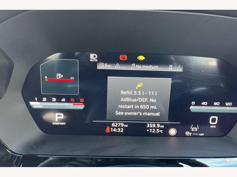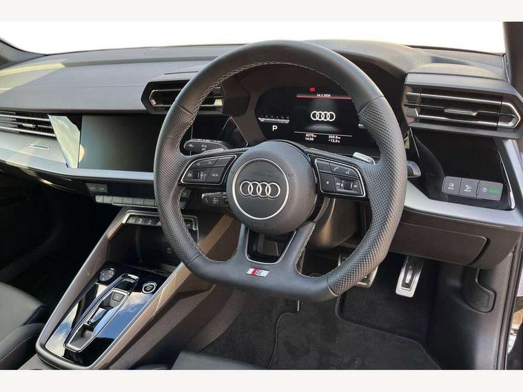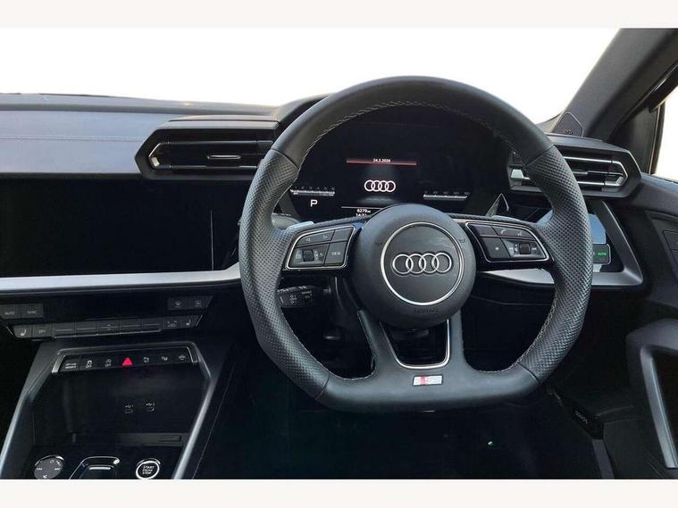 Adaptive cruise control (ACC), Adjustable speed limiter, Audi drive select (Auto, Comfort, Dynamic, Efficiency and Individual), Audi virtual cockpit plus - 12.3" full HD resolution dynamic digital instrument cluster, Automatic start/stop system with recuperation, Bluetooth interface, Camera based traffic sign recognition, Collision avoidance assistant, Driver attention and fatigue detection, e-Call (emergency call), Electromechanical power speed sensitive steering, Emergency assist, Intersection assist, Lane departure warning system, MMI Navigation Plus with high resolution 10.1" colour touch screen display, Park Assist with parking system Plus, Reversing camera, Service indicator, Smartphone interface with app store includes wireless Apple carplay, Android auto and Amazon alexa integration, Trip computer, Voice control system with natural language interaction, Diesel particulate filter, Sports suspension, Audi Phonebox light with wireless charging, Audi sound system - 10 loudspeakers including centre loudspeaker and subwoofer, DAB Digital radio, USB ports with charging function in the rear, Acoustic glass windscreen, All weather light, Aluminium window trim, Auto dimming frameless rear view mirror, Automatic dynamic range control, Body colour exterior mirrors, Dipped beam, main beam, position light and turning light, Electrically adjustable/heated/folding/auto dimming door mirrors with integrated LED indications + kerb view function for passenger side, Exterior model badging, Front and rear side air inlets in grained matt black with dark liquid chrome frame, Front electric windows, Front radiator grill in high gloss dark chrome, Heat insulating glass windscreen, Illuminated door sills with aluminium inserts at the front with S logo, Intersection light, Invisible tailpipe, LED 3rd brake light, LED brake lights, LED daytime running x3, LED headlights with LED rear lights and dynamic rear indicators, LED rear number plate lights, LED reverse light, LED tail lights, Light and rain sensors, Manoeuvring light, Motorway light, Privacy glass - dark tinted rear window, rear door and side windows, Rear diffuser and grill in grained matt black with inlay in dark liquid chrome, Rear electric windows, Rear side wing doors, Rear wiper, S line bumpers, S roof spoiler, Side S line emblems on front wings, Side sill trim in dark liquid chrome, Static cornering light, 12V socket and storage compartment in front centre console, 3 seat bench in 2nd row, 3 spoke flat bottomed leather multifunction sport steering wheel with gear shift paddles, 3-zone deluxe automatic air conditioning, 4 way electrically adjustable lumbar support for driver and front passenger, 40/20/40 split folding rear seat bench, Black cloth headlining, Black front and rear floor mats, Front and rear centre armrest in artificial leather with contrasting stitching on armrests and instrument panel, Front and rear headrests, Heated front seats, Height and reach adjustable steering wheel, i-Size child seat mounting on the front passenger side and outer rear seats, i-Size and top tether on the outer rear seats, Manual boot compartment lid, Manually adjustable front seats, Rear centre armrest with cupholder, S badging on the steering wheel, Seat side bolsters, Single front passenger seat, Stainless steel pedals and front footrest in black, Twin leather upholstery with front sports seats S embossed logo, Aluminium interior elements pack - A3, Multi-coloured LED interior lighting package with Multi-coloured contour lighting of instrument panel - A3, 3x3 point rear seat belts, Driver and front passenger airbag with passenger airbag deactivation, Electronic Stabilisation Control (ESC) including ABS, ASR and EDL, First aid kit with warning triangle and 2 safety vests, Front side airbags with head airbags and interaction airbag, Hill hold assist, Pre-sense front with pedestrian and cyclist detection, Seatbelt monitoring, Tyre pressure loss indicator, Anti theft alarm, Anti-theft wheel bolts, Electronically operated child locks, Immobiliser, Black dashboard, Inlay in dark aluminium spectrum,