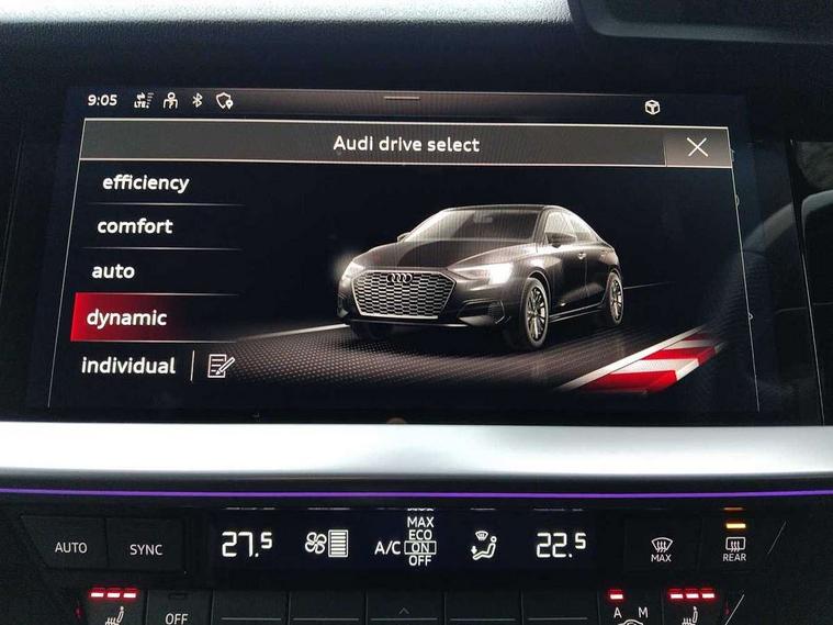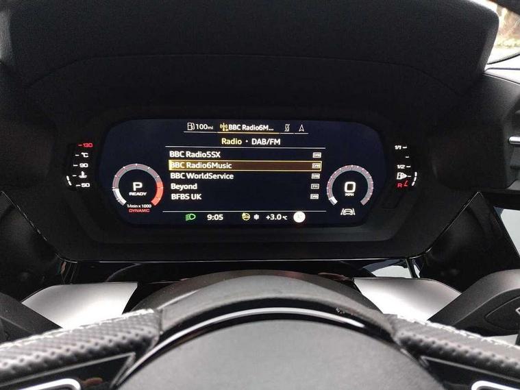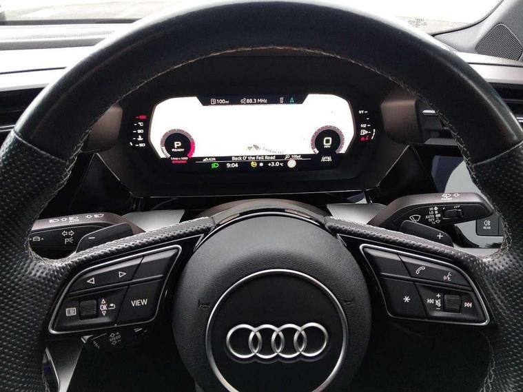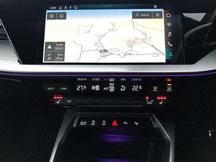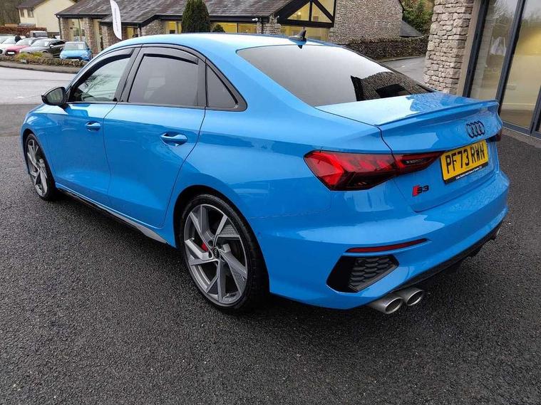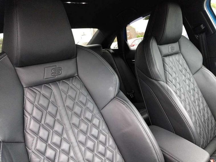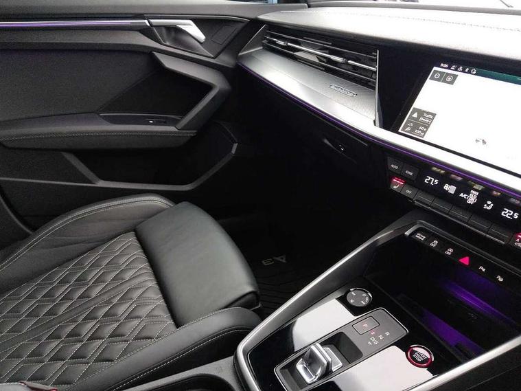 Audi drive select (Auto, Comfort, Dynamic, Efficiency and Individual), Audi smartphone interface, Audi Virtual Cockpit - 10.25" digital and colour instrument cluster, Automatic start/stop system with recuperation, Bluetooth interface, Camera based traffic sign recognition, Collision avoidance assistant, e-Call (emergency call), Lane departure warning system, MMI Navigation Plus with high resolution 10.1" colour touch screen display, Progressive steering, Service indicator, Trip computer, Voice control system with natural language interaction, Quattro permanent all wheel drive, S sport suspension with spring damper adjustment and lowering by 15mm, 2xUSB-C connection with data and charging functions, CD player, DAB Digital radio, 3rd brake light, Acoustic glass windscreen, Audi Beam uses LEDs to project the Audi logo onto the ground as you exit your S3, Auto dimming frameless rear view mirror, Dual branch oval twin tailpipes in chrome plated finish, Electrically adjustable/heated/folding/auto dimming door mirrors with integrated LED indications + kerb view function for passenger side, Front electric windows, Headlight washers, Illuminated door sills with aluminium inserts at the front with S logo, LED daytime running lights, LED headlights with LED rear lights and dynamic rear indicators, Light and rain sensors, Model and engine designation badges at rear, Privacy glass - dark tinted rear window, rear door and side windows, Rear boot, Rear electric windows, Rear side wing doors, 12V socket and storage compartment in front centre console, 3 seat bench in 2nd row, 3 spoke flat bottomed leather multifunction sport steering wheel with gear shift paddles, 4 way electrically adjustable lumbar support for driver and front passenger, 60/40 split folding rear seat bench, Black cloth headlining, Dual zone electronic climate control, Fine Nappa leather upholstery with front sports seats S embossed logo, Front and rear centre armrest in artificial leather, Front and rear headrests, Front/rear floor mats, Height and reach adjustable steering wheel, Interior lighting - glove compartment light and right hand side, Luggage compartment floor covering, Manual boot compartment lid, Manually adjustable front seats, Single front passenger seat, Stainless steel pedals and front footrest in black, Aluminium interior elements pack - A3, Black styling pack - A3 Saloon/S3, Body styling design pack - S3, Extended ambient lighting pack - A3/S3 Saloon, Storage pack - A3/S3 Saloon, Technology pack with parking assist - A3 Saloon, 3x3 point rear seat belts, Driver and front passenger airbag with passenger airbag deactivation, Electronic Stabilisation Control (ESC) including ABS, ASR and EDL, First aid kit with warning triangle and 2 safety vests, Front side airbags with head airbags and interaction airbag, Pre-sense front with pedestrian and cyclist detection, Seatbelt monitoring, Tyre pressure loss indicator, Anti theft alarm, Anti-theft wheel bolts, Electronically operated child locks, Immobiliser, Remote control central locking, Aluminium air vent surrounds, Dark spectrum aluminium inlays, accent surfaces in the dashboard and centre console in platinum grey silk effect paint finish,