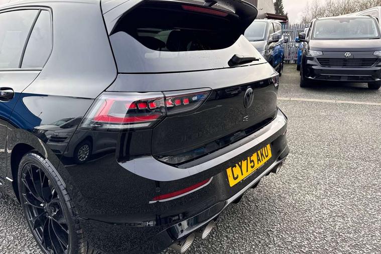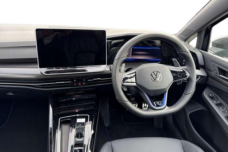 Activated carbon canister, Adaptive cruise control (ACC), Advanced driver attention and drowsiness monitor, Dynamic road sign display, E-Sim card for online connectivity, eCall emergency call system, Electronic maximum speed limit increased to 270 km/h, includes driving Modes 'drift' and 'special', larger roof spolier and GPS laptimer + G-Meter, Multi-color Digital cockpit pro, selection of different info profile possible, Multifunction front facing camera for distance control, Navigation system, Oncoming vehicle braking when turning including swerve support, Progressive steering, Side assist blind spot lane change system, rear traffic alert and exit warning system, Speed limiter, Speedo, rev counter, electronic odometer, trip, service interval display, exterior temperature and fuel gauge, Traffic jam assist, Voice enhancer and voice control, Warning signal and warning light for front and rear seatbelts not fastened, We connect plus preparation, We connect preparation, Wireless app connect, All wheel drive - 4Motion, Petrol Particulate Filter, Start-stop system with battery regeneration (recuperation - energy recovery during braking), XDS electronic differential lock for improved traction and handling, 2 USB C ports in front, 2 USB charging sockets on the centre console in the rear charging capacity upto 45W, Digital radio reception (DAB), Diversity antenna for FM reception, Gaming platform via car app, Infotainment system with 12.9" display, Mobile phone interface with inductive charging feature, 3rd brake light, Auto dimming rear view mirror, Automatic headlamp activation with Coming home and Leaving home feature, Black badge on B-pillar, Black mirror caps, Black strips on radiator grille and headlights, Body colour door handles, Darkened headlights, Darkened R Logos and VW logos in front, rear and on fender, Exterior mirrors convex on the left and aspherical on the right, Front and rear electric windows, Front fog lamps and cornering light, Heat insulating windshield made of laminated glass, Illuminated lighting animation with wake up/goodbye scenario, LED matrix headlights with ambient light V2, advanced high beam, dynamic range contol with cornering, LED rear lamp with indicator, poor weather, LED separate daytime running light, Light assist with High beam control, R name plate, Rain sensor, Rear fog light on one side and reversing lights on both sides, Rear side wing doors, Rear tinted glass 65% light absorbing from B pillar backwards, Rear windscreen washer and wiper with interval delay, Remote electrically foldable door mirrors, puddle lights and reverse activated passenger's door mirror, Welcome light with surround lighting, 12V socket in front centre console, 12V socket in luggage compartment, 3 rear head restraints, 3 seat bench in 2nd row, 30 colour ambient lighting, illuminated center console storage compartment in front, Air care climatronic 3 Zone automatic climate control with rear air conditioning control panel, Aluminium gearshift handle, Brushed stainless steel pedals, Chrome plated radiator grille inserts, air vent surrounds and light switch surrounds, Entry lights, Front + rear black carpet mats, Front centre armrest, Integrated front head restraints, ISOFIX anchors for child seats on outer rear bench seats and on front passanger seat compatible for i-Size, Luggage compartment lighting, Rear cupholder and loadthough, Single front passenger seat, Soul black instrument panel, Soul black roof lining, Split folding backrest with centre armrest and unsplit rear seat bench, Sun visors with illuminated vanity mirrors, Driver assistance pack - Golf Estate/Hatchback Auto, R styling pack - Golf, Technology park and comfort pro package - Golf Hatchback, 3 point height adj front seatbelts + pretensioners, 3 rear three point seatbelts, ABS, Autonomous emergency braking front assist with pedestrian and cyclist monitoring, Child locks on rear doors, Driver and front passenger airbag with front passenger airbag deactivation, Electronic parking brake with auto hold, ESC (Electronic Stability Control), Extended pedestrian protection measures, Front and rear black brake calipers with darkened R-logo, Hill start assist, Rear disc brakes, Two tone horn, Tyre pressure loss indicator, Volkswagen roadside assistance, Anti theft wheel bolts, Preparation for alcohol interlock, Sporty vehicle dynamics, Tool kit for tyre mobility set, Tyre mobility kit Includes 12V compressor and tyre sealant, Wheel hub cover with darkened R-logo,