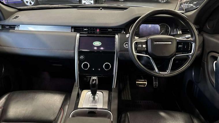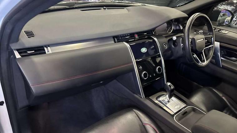 10" touch screen, 3D Surround Camera with 360 View, 180 Rear View, Front Traffic Detection, Forward Vehicle Guidance, Tow Hitch Assist and clear sight Ground View, Android Auto, Apple CarPlay, Driver condition monitor, eCall emergency call system, Front and rear parking aid, InControl remote premium, Lane keep assist, PAS, Pivi Pro connected navigation system with upgraded Infotainment, Powered tailgate/boot lid, Rear view camera, Service interval indicator, Traffic sign recognition with adaptive speed limiter, Trip computer, Wade Sensing, All terrain progress control, Coil suspension system, Diesel particulate filter, Terrain Response 2, Bluetooth connectivity including audio streaming, Digital Audio Broadcast radio-DAB, Steering wheel mounted audio controls, 3rd brake light, Automatic headlights, Day time running light, Electric front/rear windows, No badges, Power fold, auto-dimming, heated door mirrors with approach lights, Privacy glass, Rain sensing windscreen wipers, Rear fog lights, Rear side wing doors, Rear wiper, 3 seat bench in 2nd row, Bright metal pedals, Centre console with armrest, Front passenger isofix child seat attachment, Front passenger seat, Rear headrests, Satin chrome gearshift paddles, Sunvisors with illuminated vanity mirrors, Third row dual adjustable individual seats, Tilt/reach adjustable steering wheel, Black exterior pack - Discovery sport, Online pack - Discovery sport, 3 point seatbelts on all seats, ABS, Brake hold function, Child locks on rear doors, Collision mitigation braking system, Cornering brake control (CBC), Driver/Front Passenger airbags, Drivers knee airbag, Electronic brake force distribution, Electronic parking brake, Emergency brake assist, ESP + traction control, Hill descent control, Hill launch assist, Pedestrian airbag system, Rear seat ISOFIX, Side and curtain airbags for front and 2nd row seats, Trailer stability control, Tyre pressure monitoring system, Battery Back Up System (BBUS) with tilt sensor, Intrusion sensor, Locking wheel nuts, Centre stack rails in noble chrome,