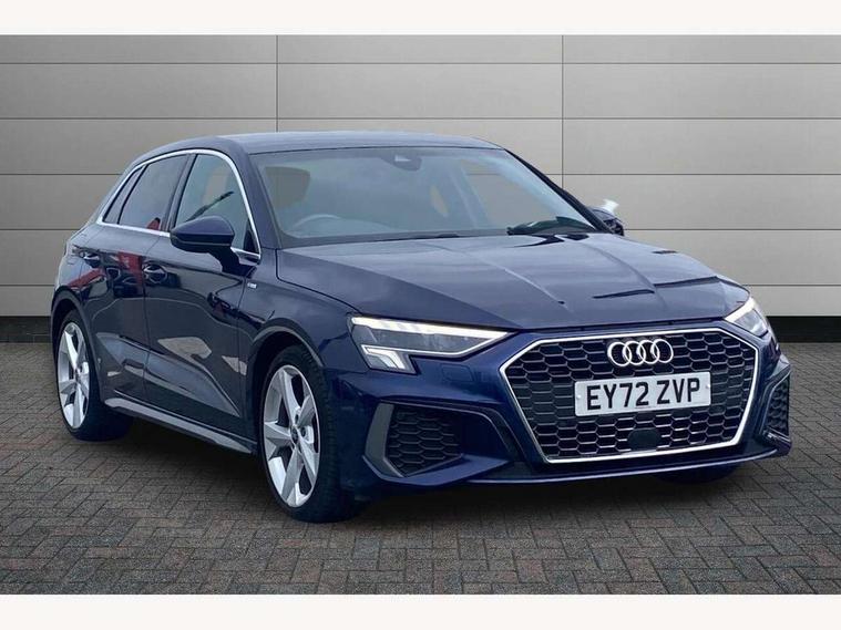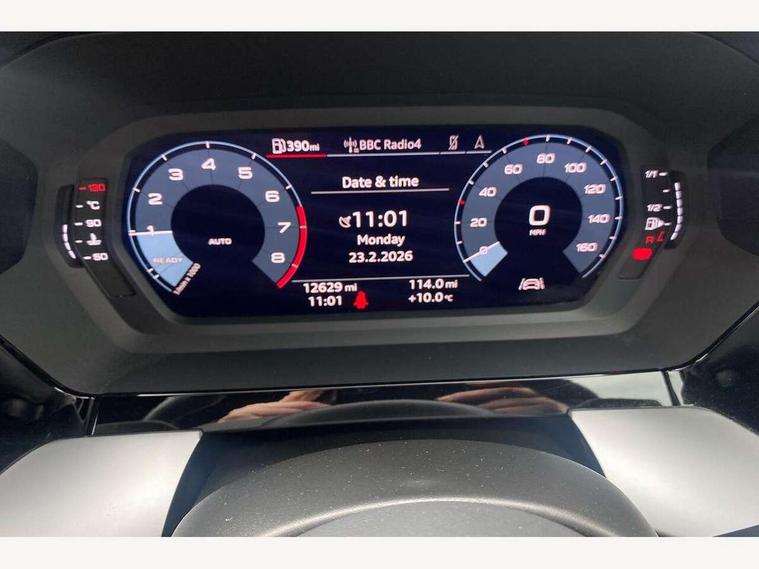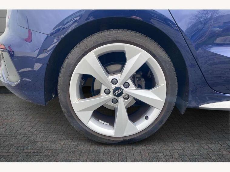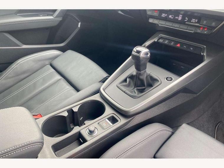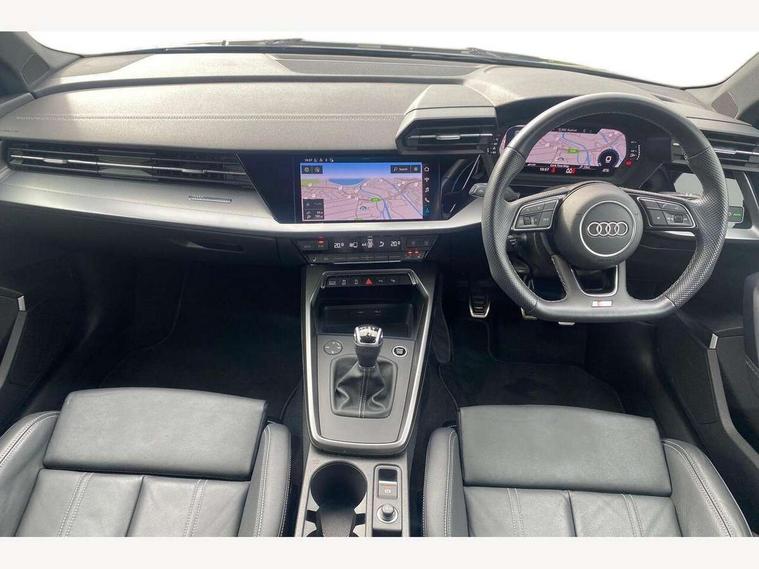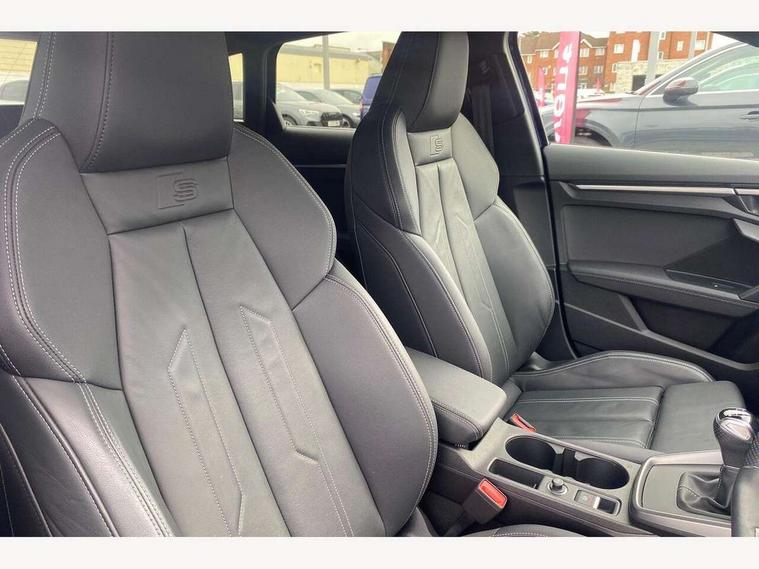 Audi drive select (Auto, Comfort, Dynamic, Efficiency and Individual), Audi smartphone interface, Audi Virtual Cockpit - 10.25" digital and colour instrument cluster, Automatic start/stop system with recuperation, Bluetooth interface, Collision avoidance assistant, Cruise control, e-Call (emergency call), Electromechanical power speed sensitive steering, Lane departure warning system, MMI Navigation Plus with high resolution 10.1" colour touch screen display, Rear parking sensors, Service indicator, Trip computer, Voice control system with natural language interaction, 2xUSB-C connection with data and charging functions, 6 passive loudspeakers, DAB Digital radio, 3rd brake light, Acoustic glass windscreen, Aluminium window trim, Auto dimming frameless rear view mirror, Electrically adjustable/heated/folding/auto dimming door mirrors with integrated LED indications + kerb view function for passenger side, Front electric windows, Illuminated aluminium inserts front door sills with S logo, LED daytime running lights, LED headlights with LED rear lights and dynamic rear indicators, Light and rain sensors, Privacy glass - dark tinted rear window, rear door and side windows, Rear electric windows, Rear side air outlets in grained matt black, Rear side wing doors, Rear wiper, S line bumpers, S roof spoiler, 12V socket and storage compartment in front centre console, 3 seat bench in 2nd row, 40/20/40 split folding rear seat bench with cupholder, Black cloth headlining, Dual zone electronic climate control, Front and rear centre armrest in leather, Front and rear headrests, Front/rear floor mats, Height and reach adjustable steering wheel, Illuminated vanity mirror, Interior lighting - glove compartment light and right hand side, Luggage compartment floor covering, Manual boot compartment lid, Manually adjustable front seats, Seat side bolsters, Single front passenger seat, Stainless steel pedals and front footrest in black, Twin leather upholstery with front sports seats S embossed logo, Aluminium interior elements pack - A3 Sportback, LED interior lighting pack - A3 Sportback, S line styling pack - A3 Sportback, 3x3 point rear seat belts, Audi pre sense front, Driver and front passenger airbag with passenger airbag deactivation, Electronic Stabilisation Control (ESC) including ABS, ASR and EDL, First aid kit with warning triangle and 2 safety vests, Front side airbags with head airbags and interaction airbag, Pre-sense front with pedestrian and cyclist detection, Seatbelt monitoring, Tyre pressure loss indicator, Anti theft alarm, Anti-theft wheel bolts, Electronically operated child lock, Immobiliser, Remote control central locking, Accent surfaces in the dashboard and centre console in platinum grey silk effect paint finish, Dark spectrum aluminium inlays,