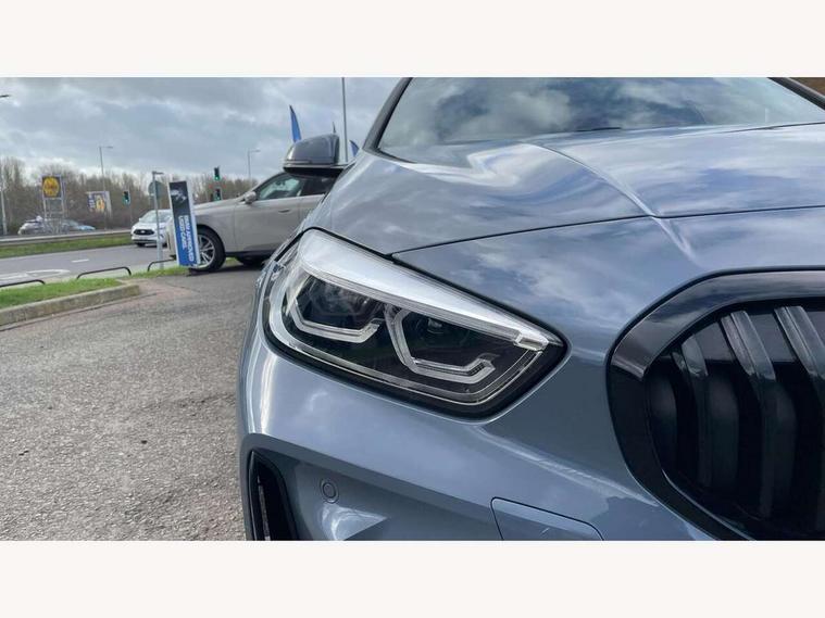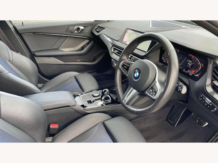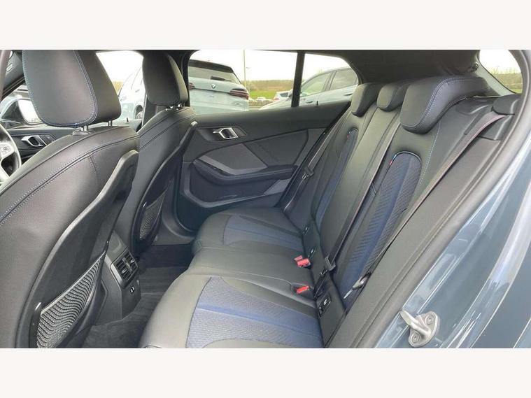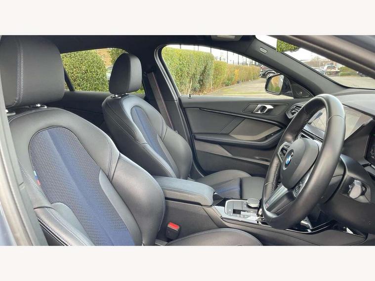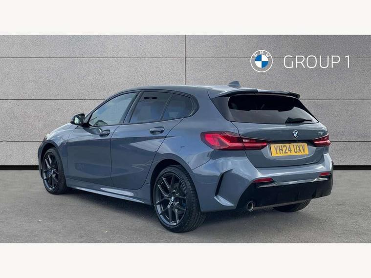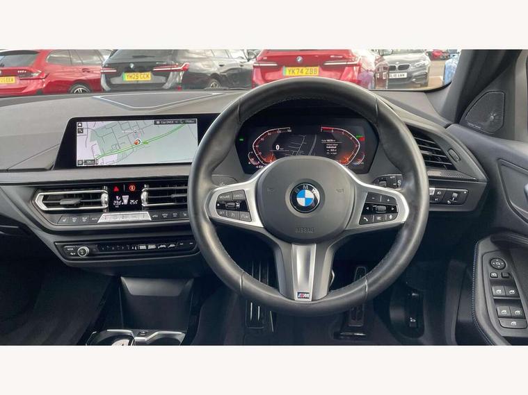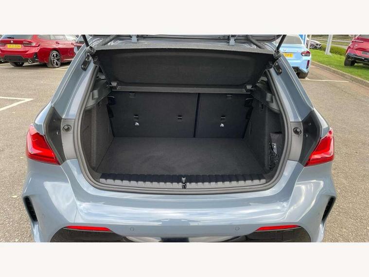 Active guard plus, Attentiveness assist, BMW ConnectedDrive online services, BMW Teleservices, Check Control warning system for monitoring of lights and door/luggage compartment open warning, Cruise control with speed limiter, Eco pro mode, Front axle single joint with specific axle kinematics to minimise drive influences on steering + provide increased rigidity agile driving behaviour, Integrated owners handbook, Lane departure warning system, Oil sensor for level and grade, On board computer, Optimum shift indicator, Personal Profile, Pull away assistant, Rigidly mounted rear subframe - Multi link construction with separate spring / damper configuration and excellent driving characteristics, Speed limit Info including no-overtaking indicator, Aluminium lightweight construction, Anti roll bar front and rear, Balancer shaft, Double VANOS twin scroll turbocharging system, Drive Performance Control, Electronic differential lock, High precision injection, M sport suspension, Petrol Particulate Filter, Twin tube gas filled shock absorbers with degressive characteristic curve, VALVETRONIC engine management, DAB Digital radio, Auto dimming rear view mirror, Automatic headlight beam throw control, Automatic windscreen wipers and automatic headlight, Body colour door handles, Body colour mirror caps, Body colour roof trims, Chrome 'M' logo side designation, Chrome exhaust twin tailpipes round 90mm in left, Chrome kidney grille frame with Satin Aluminium struts, Direction indicator side lights in exterior mirrors, Electrically adjustable exterior mirror with mirror adjustment switch on drivers armrest and aspheric on driver side, convex on passenger side, Fading support, Folding side mirrors with auto dimming/folding wing mirrors with auto dimming, Follow me home headlights, Front and rear bumper system with replaceable deformation elements, Front and rear electric windows with open and close fingertip control, anti trap facility and comfort closing, Front door sill finishers in black plastic with M designation in metallic look, Green tinted heat protection glazing, High gloss shadowline window frame, Recess cover mirror frames and B/C pillar embelisher trim, High level third brake light, Integrated front windscreen with washer jets, LED daytime running lights, LED eyebrow turn indicators, LED front fog lights, Lightweight engineering, Matt black air guide grilles, Matt black wheel arch trim, Model designation on electric bootlid, Nearside reverse light in rear light cluster, Preparation for high beam assistant, Rear fog lights, Rear side wing doors, Rear window wiper, Shark fin antenna, Trailer stabilisation logic, Visible VIN plate, Welcome lighting, 12V power socket in front centre console with blanking plug, 3 rear seat head restraints, 3 seat bench in 2nd row, 3 spoke sports leather steering wheel with black leather and stitching, pearl chrome decorative finish, specific M Badge, Anthracite headlining, Black boot net with lashing eyes, Cargo function on 2nd seat row, Child seat ISOFIX attachment for two outer rear seats and front passenger seat with anchorage points, Conditioned based service, Driver and front passenger backrest net on rear, Driver and front passenger seat heating, Driver side folding compartment in instrument panel, Folding rear clothes hook, Four grab handles integrated in roof lining, Front and rear door pockets with bottle holders, Front and rear side armrest integrated into door trim, Front armrest, Front sports seats, Glove compartment, Height adjustable front head restraints, Luggage compartment for bag hooks on left and right, foldable luggage compartment liner and four lashing eyelets, Manual adjust steering wheel, Multi-function controls for steering wheel, Single front passenger seat, Storage compartment in centre console, Storage compartment in luggage compartment, Stowage of the parcel shelf in luggage compartment trim, Sun visors with vanity mirrors and insert tab, Two front centre console cupholders, Two zone automatic air conditioning, Type C two USB ports in rear centre console, Velour floor mats, Additional interior lighting pack - 1 Series, BMW live cockpit professional pack- 1 Series, Connected pack professional - 1 Series, Interior lights pack - 1 Series, M Sport exterior styling aerodynamics pack - 1 Series, 2 tone horn, 3 point seatbelts on all seats, front pyrotechnic belt tensioners, stopper and belt force limiters, rear coded belt buckles, Airbags - Front driver/passenger, front and rear curtain head protection, front side, manual deactivation of front passenger airbag, Anti lock braking system (ABS) with brake assist, BMW emergency call, Brake drying, Braking readiness, Child proof locking system in rear door, City braking function, Comfort modes, Cornering brake control, Crash sensor activating of airbags, Unlocking doors, hazard warning lights, fuel cut off, interior lighting+activation of safety battery terminal clamp, Driver and front passenger seat belt security check, Dynamic stability control + (DSC+), Dynamic Traction Control - DTC, Electrically operated hand brake including automatic hold function, Front and rear disc brakes, Seatbelt warning, Side impact protection, Tyre pressure monitoring system, Warning triangle and first aid kit, Central locking switch for all doors, fuel filler cap and luggage compartment, Deadlocking function system to all doors, Drive away locking system on all doors and luggage compartment with de-activated in iDrive settings, Locking wheel bolts, Remote control with integrated key with High-gloss Black inlay and M designation and 1 button for open/ close lock, window, open luggage compartment, Start/stop button illuminated in centre console with keyless engine start and auto start stop deactivation button, Thatcham Cat.1 alarm and immobiliser, Wheel slip limitation close to the actuator (ARB), Contrast stitching on instrument panel, 18" Burnished M double spoke bi-colour alloy wheels finished in orbit grey - styl