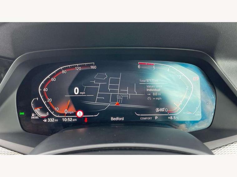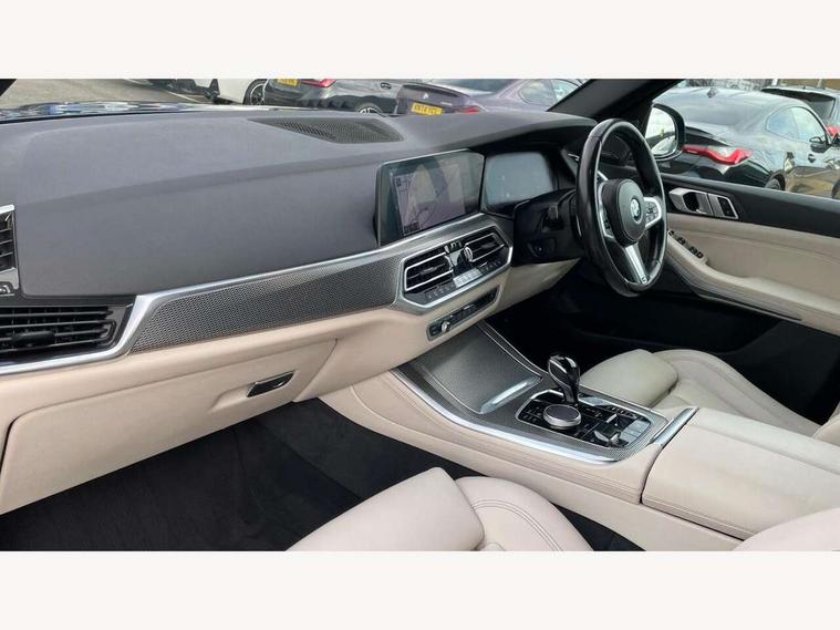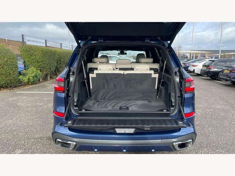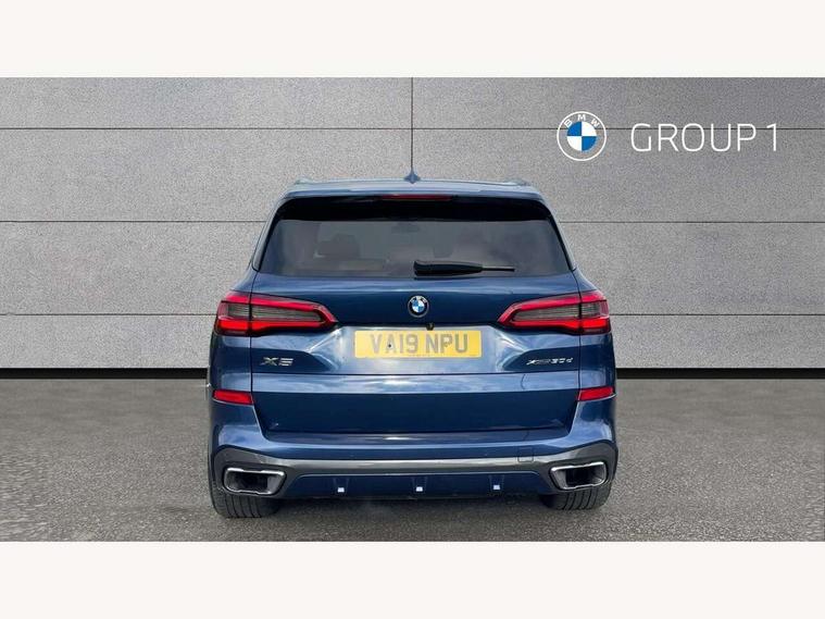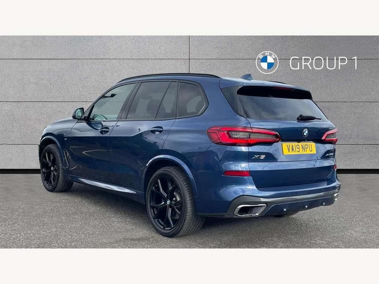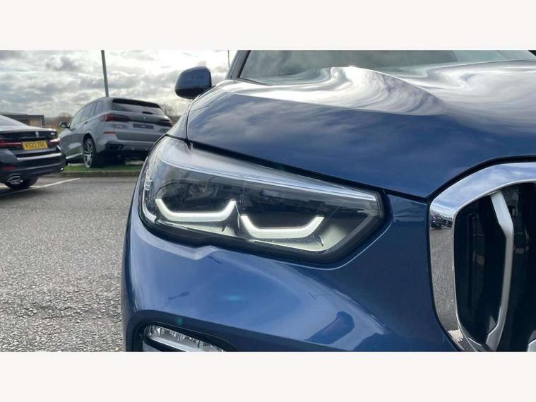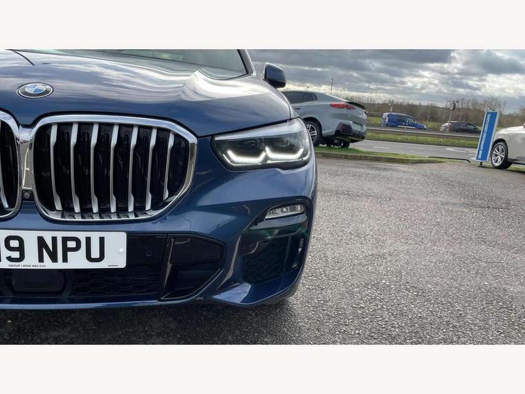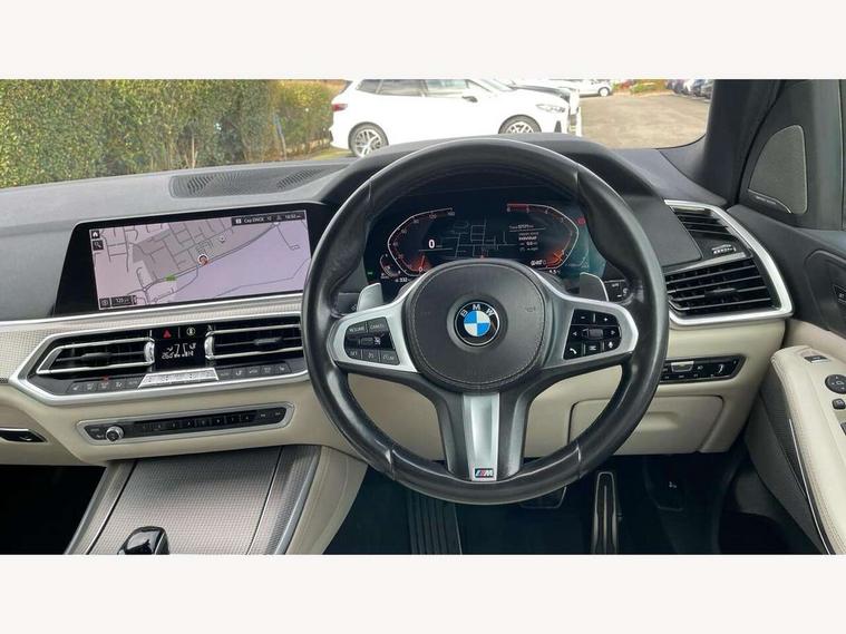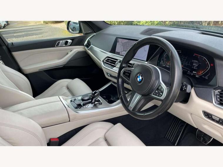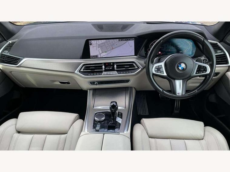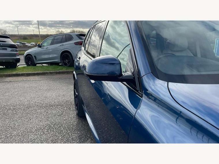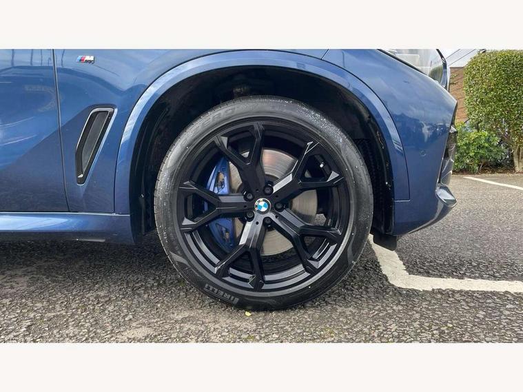 20GB hard disc drive (HDD) memory, Active guard plus, Attentiveness assist, Automatic tailgate with top hinged section open and manual bottom hinged section, BMW digital live cockpit professional - 12.3" digital instrument panel and 12.3" CID, with touch/voice command, BMW legal emergency call, BMW Online services, BMW Teleservices, Brake force display, Brake pad wear indicator warning light, Cruise control with brake assist, Enhanced bluetooth hands free facility with Telephony wireless charging, Front/rear park distance control, iDrive touch controller with shortcut buttons, Lights on warning, Oil sensor for level and grade, On board computer inc. average speed, fuel consumption, liquid crystal Info display, journey computer, outside temperature display, personal profile, Service interval indicator, Speed limiting function, Wi-Fi hotspot, Adaptive 2-axle air suspension, Diesel particulate filter, Double wishbone front axle, Drive performance control with ECO PRO comfort + sport mode, Safety battery terminal clamp, Sport automatic transmission, DAB Digital radio, Favourite buttons, Gesture control for infotainment system, USB connection, USB type A 1.5A in cupholder, USB Type C 3A in centre armrest, Active Air Stream kidney grille with high-gloss chrome, Adaptive air flap control bar in high-gloss black, Automatically dimming rear view mirror, Body colour bumpers, Body colour door handles, Body colour mirror housing, Dynamic brake lights with LED technology, Exhaust tailpipes - single, left and right with Chrome finisher, Follow me home headlights, Front and rear electric windows with open and close fingertip control, anti trap facility and comfort closing, Heat insulated glass, Heated windscreen washer jets, High gloss black outer and central air intakes on front bumper with pearlescent chrome finish, High gloss black Side elements, Intermittent rear wash/wipe, LED daytime running lights, LED fog lights, LED rear lights, M aerodynamic body styling, M designation on left and right front side panels, Pearlescent chrome front grille bars, Rain sensor with automatic headlight activation and windscreen wiper control, Satin aluminium side window graphic, Third brake light in rear spoiler, Welcome light carpet, X5 on left tailgate, xDrive designation on right tailgate, 12V - Power sockets with 2x centre console and 1x luggage compartment, 40:20:40 split folding rear seats, Ambient interior lighting with 6 pre-designed selectable lights including dynamic function, Anthracite headlining, Centre and rear interior light, Child seat ISOFIX attachment with rear outer seats includes top tether, Compartment in front of cupholder, Electric adjustable front seats + driver memory, Electrical steering column with adjustable height and length with activation and control on the steering column, Foldable rear centre armrest with 2 cupholders and storage compartment, Front and rear cupholders x 2, Front and rear door pockets, Front and rear door sill finishers with illuminated BMW designation, Front and rear door sill inlays with illuminated BMW M designation, Front and rear side armrest integrated into door trim, Front footwell lights, Front reading lights, Gearshift paddles on steering wheel, Light inside glove compartment, Lockable glove compartment, Luggage compartment floor panel with integral storage tray, Luggage compartment lighting, M leather steering wheel, M specific key, M specific pedals, M specific steering wheel, M specific velour floor mats, Make-up mirror lights, Multifunction controls for leather steering wheel, Multifunctional hooks, Seat back with flap pocket, Securing rings in luggage compartment, Storage bins on all doors, Storage tray and compartment with cover in centre console, Sunvisors with illuminated vanity mirrors, Toolkit located in luggage compartment, Connected Package Professional - X5, Expanded exterior mirror pack - X5/X5 M, Non-smokers pack - X5, ADB - Automatic Differential Brake, Airbags - driver/front passenger, rear and side, first and second row seats head airbags, front passenger seat airbag deactivation + knee airbag, Anti-lock braking system (ABS), Automatic Stability Control (ASC), Brake drying, Brake energy regeneration, Brake fade compensation, Braking pre-tensioning, Cornering brake control (CBC), Crash sensor activating central locking release, hazard warning lights, fuel cut off, interior lighting + activation of safety battery terminal clamp, Deformation zones - front and rear with door reinforcements and bumpers up to 2.5 mph, DSC - Dynamic Stability Control, Dynamic brake control, Dynamic Traction Control - DTC, Electromechanical parking brake with automatic drive away release and auto hold function, Electronic brake force distribution, Front and rear seatbelts with seatbelt stopper, seatbelt tensioner for front and outer rear seats and belt force limiter, Front head restraints with anti-whiplash, Height adjustable front seatbelts, Hill start assistant, Integrated brake system, M Sport braking system in blue high gloss + blue painted brake calipers with M designation, Mechanical child proof lock on rear doors, Passive protection for pedestrians, Seat occupancy detection for driver and passenger side, Side impact protection, Three 3 point inertia reel seatbelts, Two tone horn, Tyre pressure monitoring system, Ventilated front and rear disc brakes, Warning triangle and first aid kit, Closing system with central locking, Driver and front passenger door centre lock switch, Locking wheel bolts, Remote central locking, Thatcham 1 alarm system with remote control and engine immobiliser, Start/stop toggle diamond shaped trim finisher in pearl chrome,