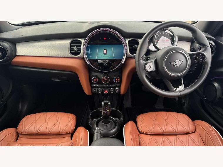 Apple CarPlay, Automatic start/stop function with brake energy recuperation, Compatible mobile phone bluetooth with audio streaming, Cruise control with brake assist, Electro-mechanical speed dependant steering assistance, Flexible car sharing preparation, Instrument cluster, MINI Driving Modes - centre toggle switch to control driving setting (sport, mid and green), Mini E-call, MINI TeleServices, On board computer, Rear park distance control, Service interval indicator, Double Vanos system, Fully variable valve control, High precision injection, Performance Control, Steptronic sport transmission with double clutch and steering wheel paddles, 8.8" touchscreen with LED ring, FM tuner and DAB digital radio, 3rd brake light, Automatic headlight activation switch, Bonnet scoop, Chrome line exterior - radiator grille bars, tailgate handle, lower front grille grating and rear central fog-light, Dynamic brake lights, Electric front windows, Heated rear window, Heated windscreen washer jets, LED headlight with closed ring and daytime driving lights, Metal door sill strips with Cooper S, Model logo Cooper S on right of tailgate, Rain sensor window wipers, Rear fog lights, Rear LED lights with union jack design, Rear window wiper, Side scuttle panel with integrated indicator, Sun/heat protection glass, White indicator lenses, 12V Accessory socket in centre console, 2 seat bench in 2nd row, 4 lashing eyes in luggage compartment, 60/40 split folding rear seat, Carbon black colour line - Knee roll and door armrest, Chrome interior highlights, Chrome line interior - air vents, gear lever base, door handles and speakers in doors, Cupholders, Front and rear head restraints, Front and rear isofix with front passenger airbag deactivation, Front floor mats in velour, Glove compartment, Height and length steering column adjustment, Interior lighting with 12 different colours across the dashboard, underneath door bezel with illuminated laser-engraved design on central display, Leatherette gearshift lever and handbrake gaiters, LED reading lights, vanity mirror lights, front foot well light and spotlight on front seats, Manual air conditioning, Mechanical seat adjustment - forward/back & backrest for front seats and driver seat height adjust, MINI yours badge on exterior pillar, Multifunction steering wheel, Passenger seat height adjuster, Satellite grey headlining including grab handles and clothes hooks, Single front passenger seat, Storage compartments in doors, Storage pocket on back of front seats, Sunvisors with vanity mirrors, Walknappa leather steering wheel with grey seam and MINI Yours badge on Piano Black lower steering wheel spoke, 3 point seatbelts on all four seats, 6 Airbags - front, side, head and seat belt tensioners, Anti-lock braking system (ABS), DSC - Dynamic Stability Control, Front and rear disc brakes, Two tone horn, Tyre pressure monitoring system, Alarm system with tilt sensor, monitoring doors, bonnet interior and tailgate, Electronic vehicle immobiliser, Start/stop toggle with keyless go, Tool kit,
