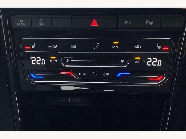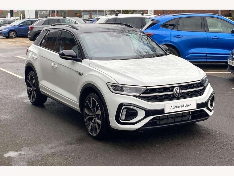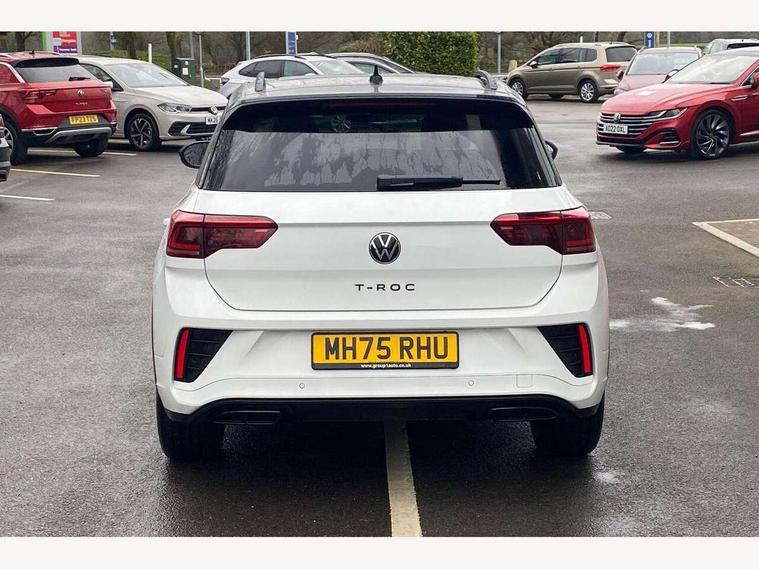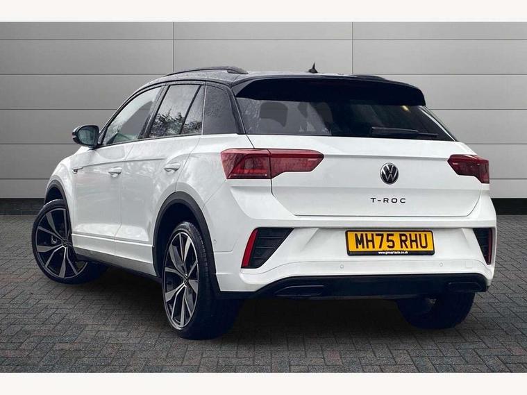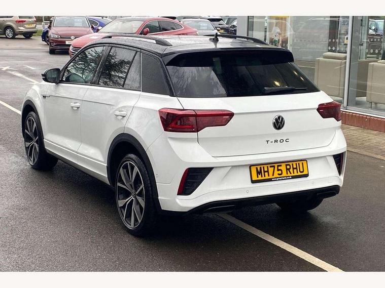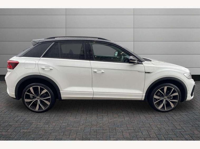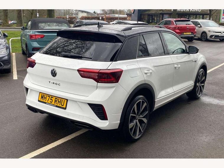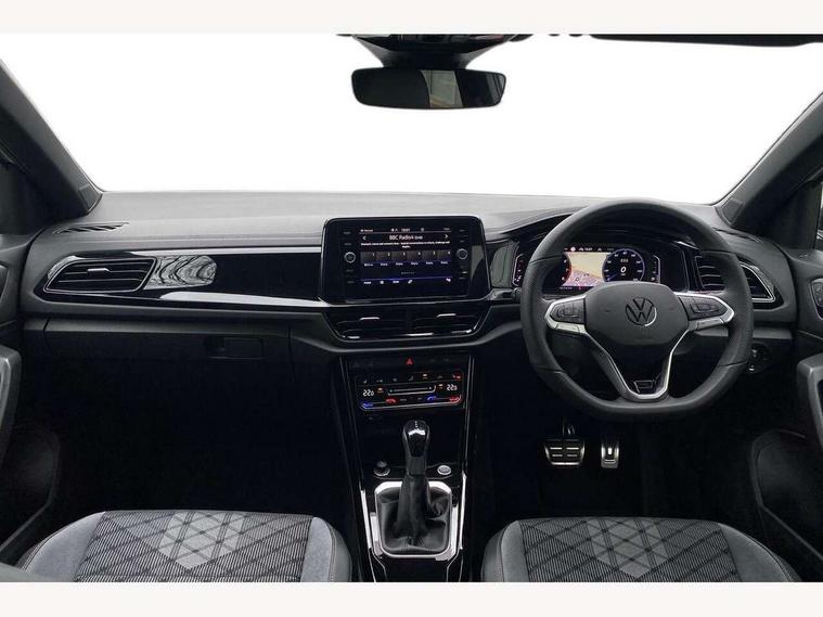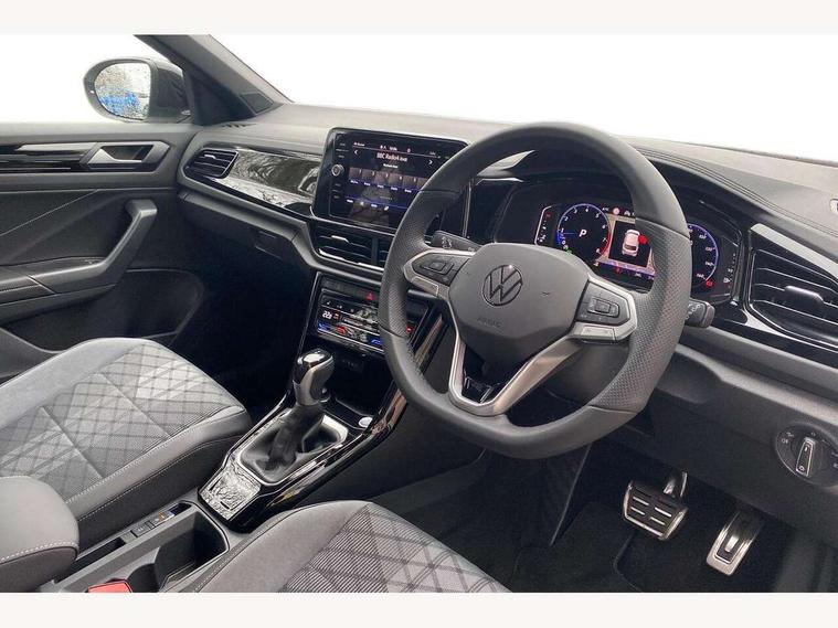 10.25" Digital cockpit pro, Advanced driver attention and drowsiness monitor, Emergency call service, Lane keeping system Lane Assist, Mobile phone interface, Modified key software - reduce switch off time for key status change to Long no motion, Online services, Park assist including front and rear parking sensors, Power assisted speed sensitive steering, Rear view camera, Service interval indicator, Tailgate/trunk lid release from outside, Think blue trainer driver tips and journey analysis, Warning sound and light for front seatbelts unfastened, Wireless app connect, Battery regeneration during braking, Rear shock absorption chassis with increased ride height, Start/stop function with battery regeneration, DAB Digital radio, Diversity antenna for FM reception, Music playback - MP3, WMA and AAC files, SD card slot, Simultaneous pairing of 2 compatible mobile devices, Title and cover art display, We Connect and We Connect Plus functionality, Advanced dynamic light assist for LED matrix headlights, Auto dimming interior rear view mirror, Automatic hazard lights activation under emergency braking, Black roof rails, Dynamic cornering light, Dynamic headlight range control with self adjusting whilst driving, Electrically adjustable and heated door mirrors, Extended roof spoiler, Exterior ambient lighting, Exterior mirrors aspherical on driver side, convex on front passenger side, External USB type C socket and charging sockets, Front windscreen wiper with intermittent wipe and 4 position delay, Heated rear window, Illuminated front grille, IQ LED matrix headlights, LED 3rd brake light, LED rear number plate lights, LED rear tail lights with dynamic turn signal, LED separate daytime running light, Light mode for poor weather, rain, fog or snow, Power windows with comfort operation and circuit breaker, Privacy glass for rear side windows and rear window, R-Line design body coloured bumpers, Rain sensor, Rear exhaust tailpipe, Rear fog light on one side and reversing lights on both sides, Rear side wing doors, Rear wash/wipe with intermittent wipe setting, Remote electrically foldable door mirrors, puddle lights and reverse activated passenger's door mirror, Tilting and sliding panoramic sunroof with rear panoramic sunroof, 12V power socket in centre console, 3 rear head restraints, 3 seat bench in 2nd row, 4 load lashing points in luggage compartment, Air care climatronic air conditoning system with active combination filter and 2-zone temperature control, Chrome plated radiator grille inserts, air vent surrounds and light switch surrounds, Door and side trim panel with leatherette insert, Drawer under drivers seat, Front + rear carpet mats, Front centre armrest, Front comfort sports seats, Front cupholders x 2, Front footwell illumination, Front reading light, Front scuff plates with R Line logo, Front seat back storage pockets, Glove compartment door with light, Instrument lighting, white adjustable panel illumination, Interior ambient lighting and surround lighting, Interior light delay, Isofix child seat preparation, Leather gearshift handle, Load-through provision with cup holder when folded down ('Unsplit rear seat bench, split folding backrest, with centre armrest), Luggage compartment lighting, Non-folding front passenger seat backrest, Single front passenger seat, Stainless steel pedals, Storage compartment in left and right luggage area, Storage compartment in rear doors, Storage compartments in driver and front passenger doors, Sunvisors with illuminated vanity mirrors, Variable boot floor, height adjustable and removable, Black design pack - T-Roc black edition plus, Easy open package with safelock - T-Roc, Sport pack with sports suspension - T-Roc, 3 point height adj front seatbelts + pretensioners, 3 point seatbelts in outer rear with ECE label, ABS, Child locks on rear doors, City emergency braking and pedestrian monitoring, Driver and front passenger airbag with front passenger airbag deactivation, Driver and front passenger safety-optimised head restraints, Drivers seatbelt reminder, Electronic parking brake, Electronic Stability Control (ESC) inc EDL (Electronic Differential Lock) and ASR (Traction Control), Front and rear passengers curtain airbag system including front side airbags, Front disc brakes, Hill start assist, Predictive pedestrian protection, Rear disc brakes, Two tone horn, Tyre pressure loss indicator, Volkswagen roadside assistance, Keyless locking and starting system keyless access with safelock, Gloss deep iron dash trim, 19" Misano black diamond turned alloy wheels with low rolling resistance and anti theft wheel bolts, Tool kit, Trims for alloy wheels, Tyre mobility kit including compressor and sealing foam,