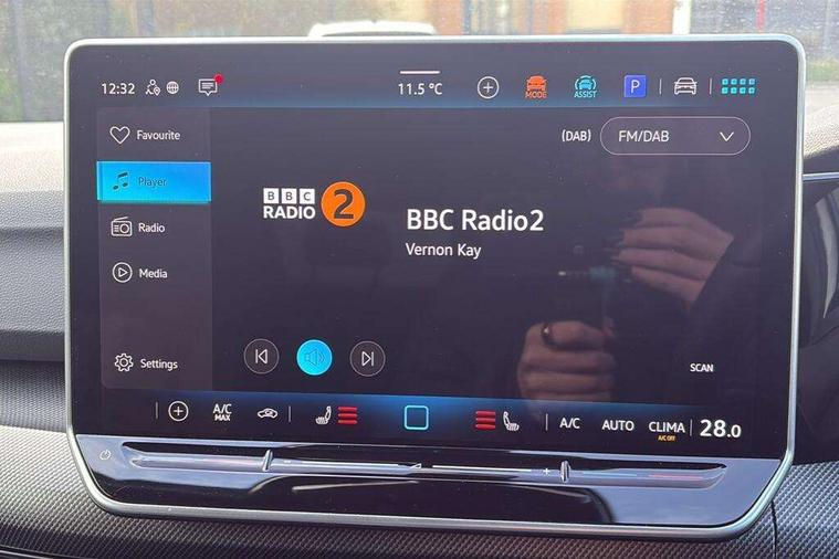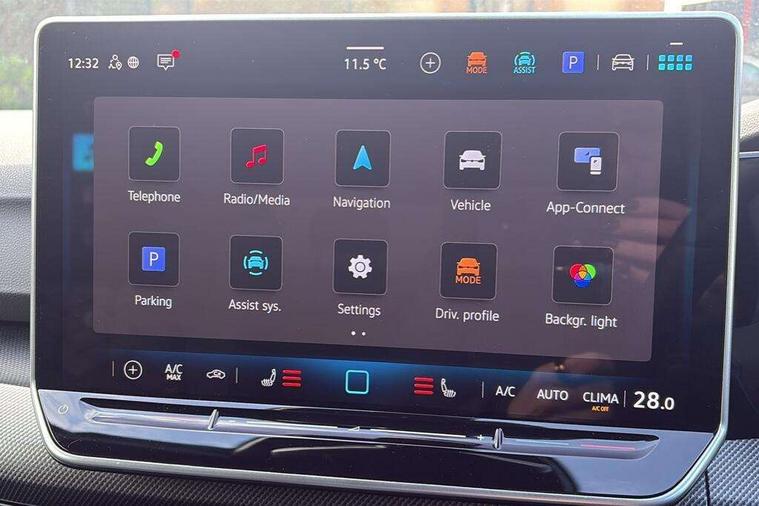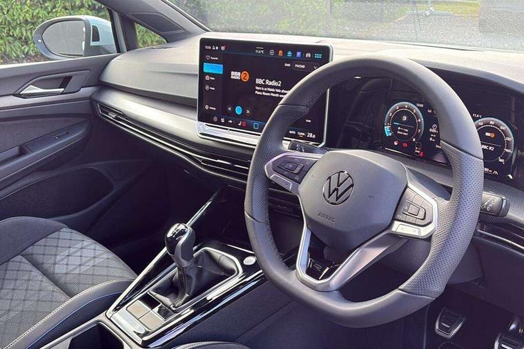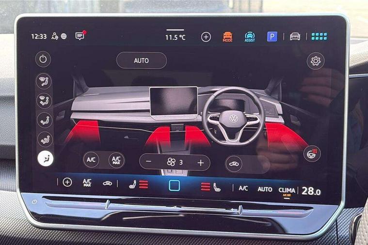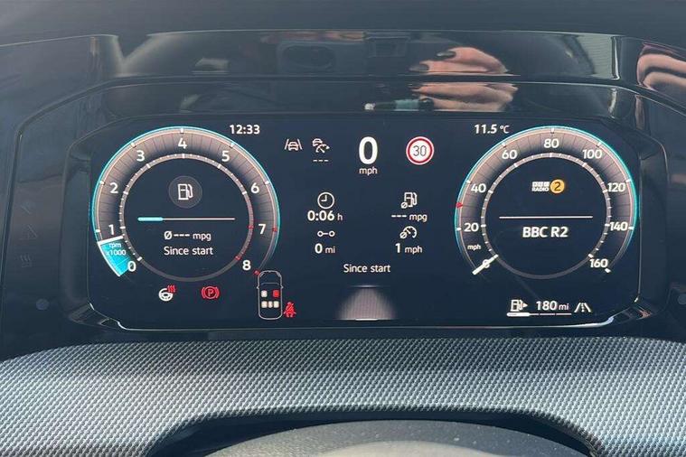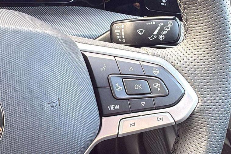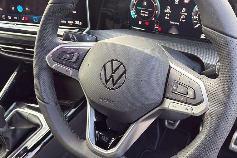 Activated carbon canister, Adaptive cruise control (ACC), Advanced driver attention and drowsiness monitor, Dynamic road sign display, Dynamic steering, E-Sim card for online connectivity, eCall emergency call system, Multi-color Digital cockpit pro, selection of different info profile possible, Multifunction front facing camera for distance control, Navigation system, Oncoming vehicle braking when turning including swerve support, Speed limiter, Speedo, rev counter, electronic odometer, trip, service interval display, exterior temperature and fuel gauge, Traffic jam assist, Voice enhancer and voice control, Warning signal and warning light for front and rear seatbelts not fastened, We connect plus preparation, We connect preparation, Wireless app connect, Petrol Particulate Filter, Start-stop system with battery regeneration (recuperation - energy recovery during braking), XDS electronic differential lock for improved traction and handling, 2 USB C ports in front, 2 USB charging sockets on the centre console in the rear charging capacity upto 45W, Digital radio reception (DAB), Diversity antenna for FM reception, Gaming platform via car app, Infotainment system with 12.9" display, Mobile phone interface with inductive charging feature, 3rd brake light, Automatic headlamp activation with Coming home and Leaving home feature, Body colored bumpers in R-Line style, Body colour door handles, Exterior mirrors convex on the left and aspherical on the right, Front and rear electric windows, Heat insulating windshield made of laminated glass, LED separate daytime running light, Rear exhaust tailpipe, Rear fog light on one side and reversing lights on both sides, Rear side wing doors, Rear windscreen washer and wiper with interval delay, Remote electrically foldable door mirrors, puddle lights and reverse activated passenger's door mirror, Welcome light with surround lighting, 12V socket in front centre console, 12V socket in luggage compartment, 3 rear head restraints, 3 seat bench in 2nd row, Ambient lighting with 30 colour including LED light unit in front footwell with selectable light colour, Black roof lining, Brushed stainless steel pedals, Chrome plated radiator grille inserts, air vent surrounds and light switch surrounds, Front + rear black carpet mats, Front centre armrest, Integrated front head restraints, ISOFIX anchors for child seats on outer rear bench seats and on front passanger seat compatible for i-Size, Leather gearshift handle, Luggage compartment lighting, Premium sports seats in front, Rear cupholder and loadthough, Single front passenger seat, Split folding backrest with centre armrest and unsplit rear seat bench, Sun visors with illuminated vanity mirrors, Titanium black instrument panel, 3 point height adj front seatbelts + pretensioners, 3 rear three point seatbelts, ABS, Autonomous emergency braking front assist with pedestrian and cyclist monitoring, Child locks on rear doors, Driver and front passenger airbag with front passenger airbag deactivation, Electronic parking brake with auto hold, ESC (Electronic Stability Control), Extended pedestrian protection measures, Rear disc brakes, Two tone horn, Tyre pressure loss indicator, Volkswagen roadside assistance, Anti theft wheel bolts, Preparation for alcohol interlock, Decorative inserts carbon grey for dashboard and front door trim panels,