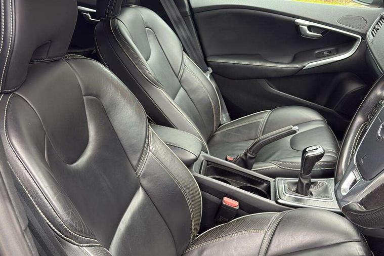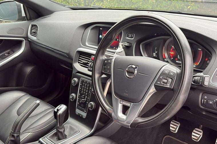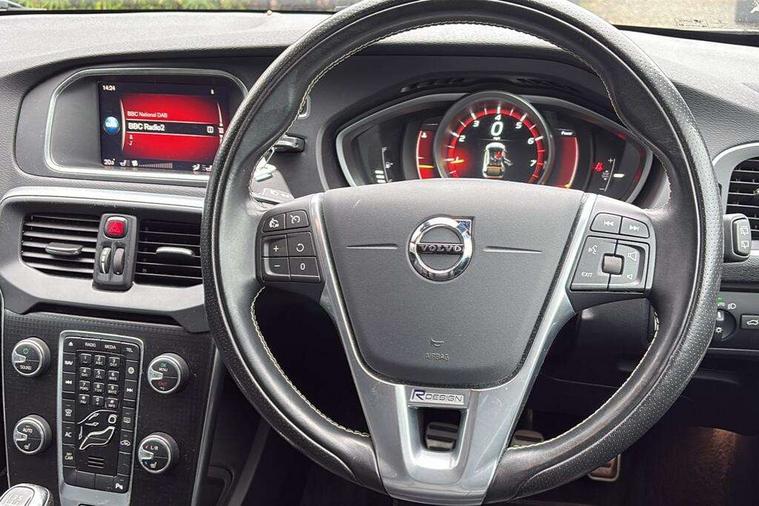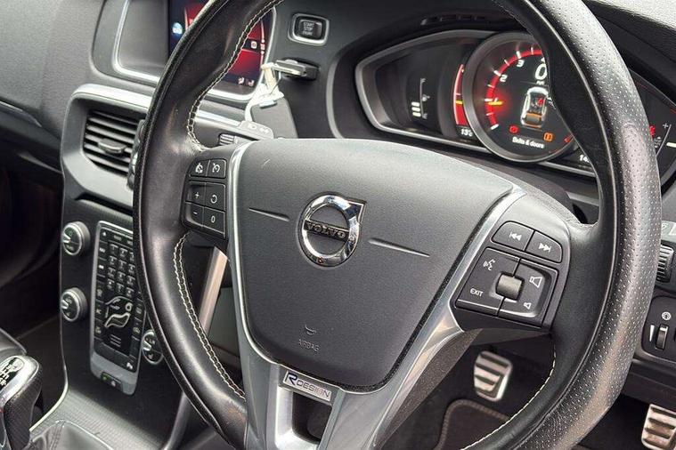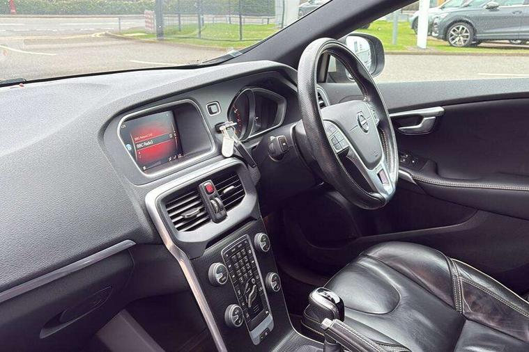 Active TFT crystal driver's instrument display, Front park assist, Information centre, Intelligent driver information system (IDIS), Rear park assist, Rear parking camera, Sensus navigation system, Service interval indicator, Speed limiter, Speed sensitive steering, Dynamic chassis, DAB Digital radio, Steering wheel audio controls, Active bending LED headlights, Adaptive brake lights, Auto dimming rear view mirror, Automatic folding door mirrors with ground lights, Automatic headlights, Body colour bumpers, Body colour door handles, Dark tinted rear side windows, Dual exhaust pipes, Electrically adjustable and heated door mirrors, Frameless rear view mirror, Front and rear electric windows, Headlamp levelling, Headlight cleaning system, High level LED brake light, Home safe and approach lighting, LED daytime running lights, LED Headlights, Matt silver finish door mirrors, R Design front grille, R Design lower front nose, Rain sensor windscreen wipers, Rear diffuser, Rear tailgate emblem, Rear wiper, Roof spoiler, Silk metal window trim surround, Visible VIN plate, 12V socket in front + rear tunnel console, 3 spoke leather steering wheel with chrome trim and R design logo, 5 headrests, 60/40 split folding rear seat, A-pillar parking ticket holder, Adjustable front centre armrest, Charcoal headlining, Door sill tread plates, Electronic climate control (ECC), Flexible load floor and grocery bag holder, Folding front passenger seat with height/lumbar adjust, Footwell lights, Front cupholders, Front door step lamp, Front reading lights, Front sports seats, Front storage box, Height adjustable drivers seat with lumbar support, Height/reach adjustable steering column, Illuminated driver/passenger vanity mirrors, Illuminated gear knob, Isofix attachments on outer rear seats, Load cover, Lockable glovebox, Pollen filter, R Design leather sports upholstery, Rear armrest with cupholder, Rear reading lights, Rear theatre lighting, Sports floor mats, Sports pedals, WHIPS - Whiplash Protection System, 5 x 3 point seatbelts, ABS+EBA, City safety braking system, Drivers knee airbag, DSTC-Dynamic Stability and Traction Control, Dual stage driver's airbag, Dual stage passenger airbag, Front/rear seatbelt pre-tensioners, Hill start assist, Inflatable curtain, Manual rear child locks, Passenger airbag cut-off device, Pedestrian airbag system, Side airbags, Side curtain airbags, Side impact protection, Tyre pressure monitor, Warning triangle, Anti-theft alarm including immobiliser/volume sensor + level sensor, Deadlocking system, Key integrated remote control central locking, Locking wheel nuts, Stealth aluminium trim,