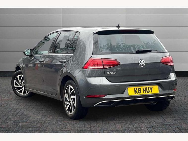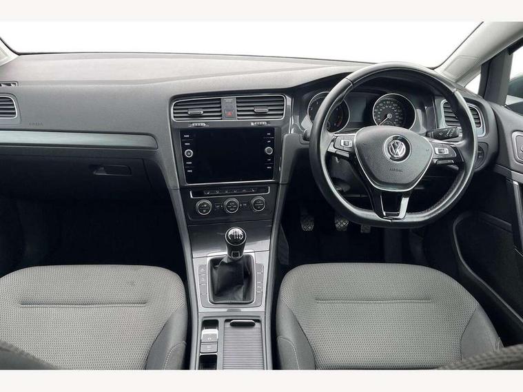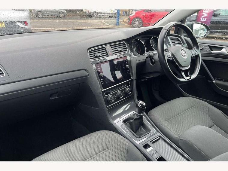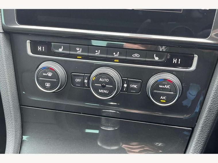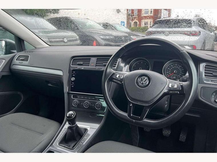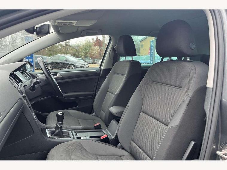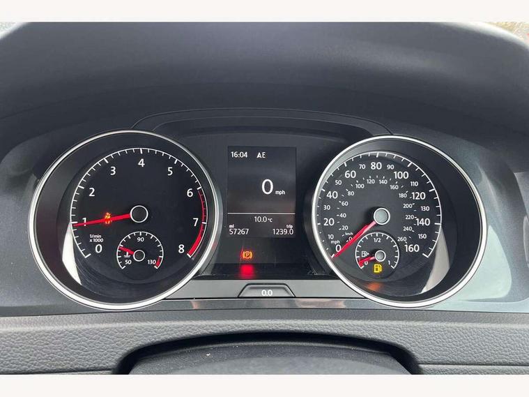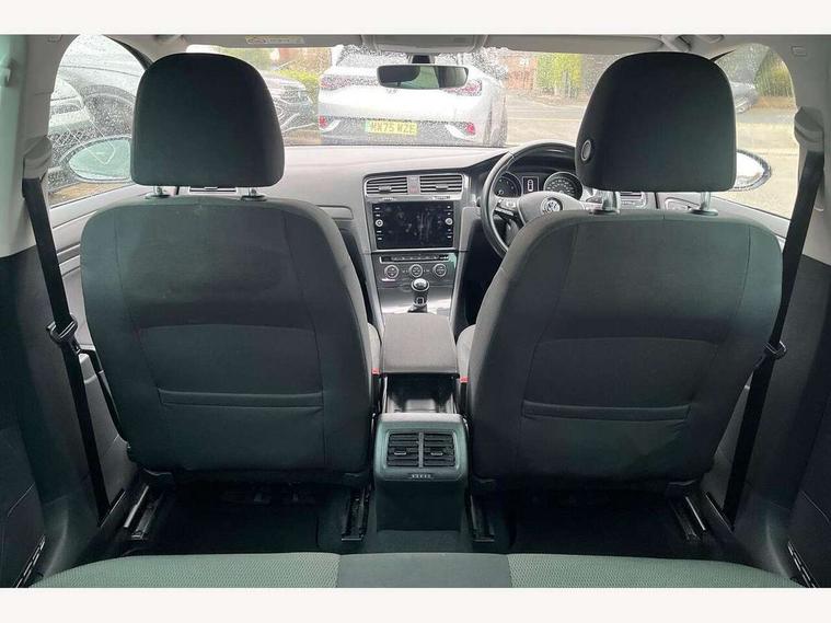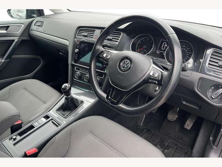 'Lights On' Reminder warning buzzer, ACC - Adaptive cruise control with front assist, forward collision warning, distance monitoring, city emergency brake and speed limiter, Bluetooth telephone and audio connection for compatible devices, Brake pad wear indicator warning light, Driver alert system, Driving Mode Selection with four preset modes - Eco, normal, sport or individual modes, Multifunction computer with visual gear change recommendation for fuel consumption, Power assisted speed sensitive electro-mechanical steering, Push tank flap, Speed limit display, Speedo, rev counter, electronic odometer, trip, service interval display, exterior temperature and fuel gauge, Stop/start system, Think blue trainer driver tips and journey analysis, Warning buzzer and light for front seatbelts unfastened, Battery regeneration during braking, XDS electronic differential lock, Composition media system, DAB Digital radio receiver, Driver Personalisation profile selection, MP3/WMA compatability, Multi device interface (MDI) via USB connection, Premium USB cable in choice of either Apple or Android smartphone compatibility, SMS Functionality, Title and cover art display, USB and SD card connectivity, Volkswagen media control, Black front air intake and radiator grille with chrome insert, Black rear diffuser, Body colour bumpers, Body colour door handles, Body colour door mirrors with integrated indicators, Dusk sensor + automatic driving lights, Electric front windows, Electric rear windows, Electrically adjustable and heated door mirrors, Fully galvanised body, Heated rear windscreen, High level 3rd brake light incorporating LED Technology, LED front fog lights with static cornering light function, Range adjustable headlights via infotainment system with LED daytime running lights, Rear fog lamp, Rear number plate lights incorporating LED technology, Rear tinted glass 65% light absorbing from B pillar backwards, Rear window aerial, Rear window wash/wipe with intermittent wipe, Reflectors in all doors, Tailgate with integrated rear roof spoiler, Windscreen wipers/ intermittent wipe + 4 position delay, 12V socket in luggage compartment, 3 rear headrests, 4 load lashing points in luggage compartment, 60/40 split folding rear seat backrest, Bag hook in luggage compartment x 2, Climate control - 2 zone electronic air conditioning with automatic air recirculation and allergy filter, Cooled glovebox, Cover for storage compartment in centre, Dust/pollen filter, Front and rear reading lights X 2, Front centre armrest with storage compartment and two rear air vents, Front seat back storage pockets, Grab handles front x 2, rear x 2 with integrated coat hooks, Height and reach adjustable steering wheel, Illuminated vanity mirrors, Instrument lighting white adjustable panel illumination, Interior light delay, Isofix preparation for 2 rear child seats, Load through provision with rear centre armrest and cupholders x2, Luggage compartment lighting, Overhead storage box, Pearl grey headlining, Storage box in luggage compartment, Storage compartment in roof console with cover, Storage compartments in centre console, Storage compartments in front doors, Storage compartments in rear doors, Stowable luggage compartment cover, Sun visors, Variable boot floor, height adjustable and removable, Convenience Pack - Golf, Mirror pack - Golf, Winter pack - Golf, 3 rear three point seatbelts, Airbags - Driver's and front passenger's, curtain airbag, Driver's knee, front side impact and passenger's airbag deactivation switch, Anti-lock Braking System (ABS) with Hydraulic Brake Assist (HBA), Automatic post collision braking system, Child locks on rear doors, Driver/Passenger optimised head restraints, Electronic parking brake with auto hold, Electronic stability control (ESC) including Electronic differential lock (EDL) and ASR (Traction control) with deactivation via infotainment system, Front ventilated disc brakes and rear disc brakes, Pre crash preventive occupant protection, Three point height adjustable front seatbelts with tensioners, Tyre pressure loss indicator, Alarm with interior protection and deactivation via infotainment system, Electronic engine immobiliser, Brushed dark silver decorative inserts in dash and door panels, Chrome plated air vent surround, Chrome-plated light switch surround, Polar night black decorative inserts in centre console, Steel space saver spare wheel,