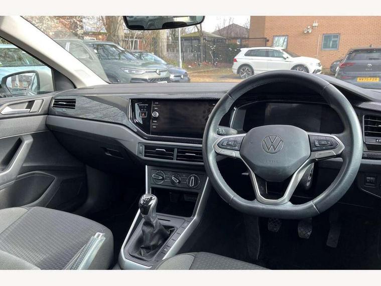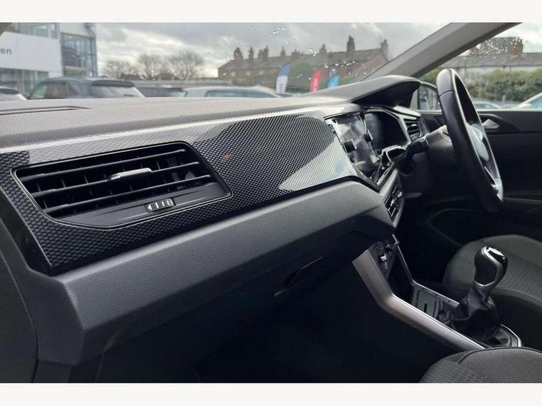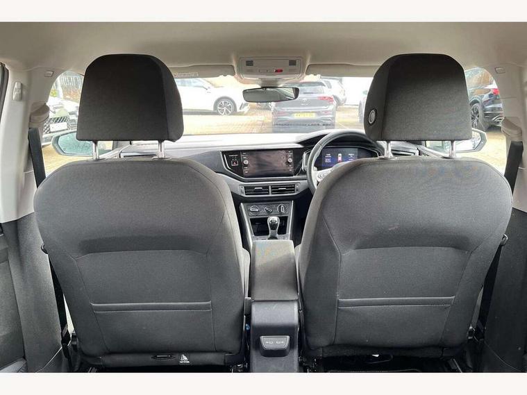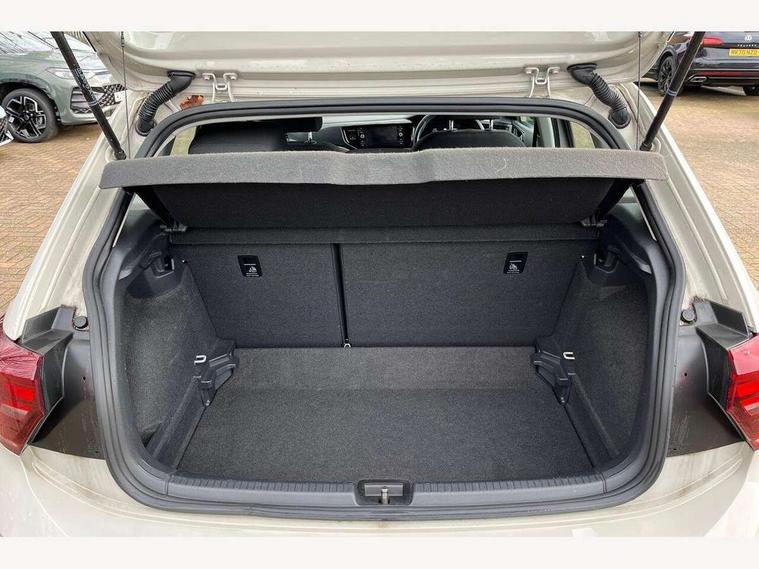 Adaptive cruise control without follow-to-stop and speed limiter, Bluetooth mobile phone interface, Driver alert system, Emergency call service, Front assist system, Power assisted speed sensitive steering, Preparation for We connect and We connect plus, Speedo and rev counter, electronic odometer, trip, service interval display and fuel gauge, Standard rear axle, Travel Assist - Lane keeping system and traffic jam assist, Travel assist including emergency assist, Trip computer, Warning signal and warning light for front and rear seatbelts not fastened, Washer fluid level indicator, Wireless app connect, Front wheel drive, Rear shock absorpion, Start-stop system with battery regeneration (recuperation - energy recovery during braking), DAB Digital radio, Diversity antenna for FM reception, Front and rear 6 speakers, Automatic dimming interior rear view mirror, Body colour bumpers, Body colour door handles, Body colour door mirrors, Electric front windows, Heat insulating darkened glass in side and rear windows, Heat insulating glass windscreen, Power folding adjustable/heated exterior mirrors and front passenger exterior mirror lowering function, Rain sensor, Rear electric windows, Rear fog light, Rear side wing doors, Rear windscreen washer and wiper with interval delay, Third brake light, 12V power socket in centre console, 2 front and 2 rear reading lights, 2 USB-C ports in the front, 2 USB-C charging sockets on the center console in the rear, 3 rear head restraints, 60/40 split folding rear seat and rear seat bench not split, Ceramique headliner, Chrome plated radiator grille inserts, air vent surrounds and light switch surrounds, Door and side trim panel, Driver and front passenger seat height adjustment, Driver/passenger sunvisors with illuminated vanity mirrors, Front centre armrest, Front seat backrest storage pockets, Front standard seats, Handbrake lever handle in leather, Hartley/Thomas cloth upholstery, Isofix child seat preparation easy-fit (for two outer rear seats, and front passenger seat) compatible with I-size, Leather trimmed gear knob, Luggage compartment cover, Luggage compartment floor, Luggage compartment lighting, Multifunction steering wheel, Single front passenger seat, Standard pedal cluster, Light and vision pack - Polo, 3 point height adj front seatbelts + pretensioners, 3x3 point rear seatbelts, ABS, Driver and front passenger airbag with front passenger airbag deactivation, Drivers and front passengers safety optimised head restraints, ESC (Electronic stability control) + EDL (Electronic Differntial lock) and ASR (Traction control), Extended and predictive pedestrian/ cyclist protection, Front curtain and side airbags with center airbag, Front disc brakes, Hill hold control, Manual child lock in rear doors, Rear drum brakes, Single tone horn, Tyre pressure loss indicator, Alarm with interior protection, Anti-theft alarm system with interior monitoring, backup horn, and towing protection, Anti-theft wheel bolts, Electronic engine immobiliser, Lava stone black gloss/matt decorative inserts in dash and front door panels, Low rolling resistance tyres,