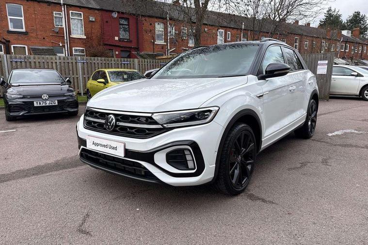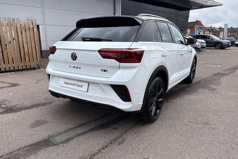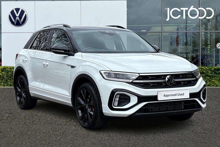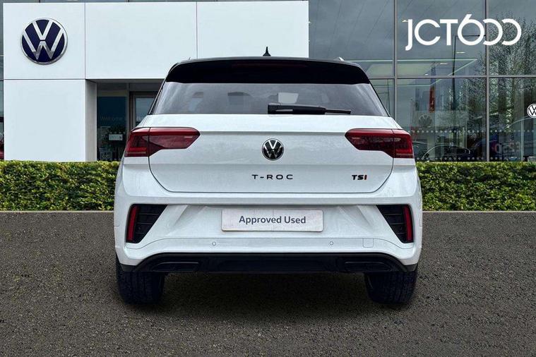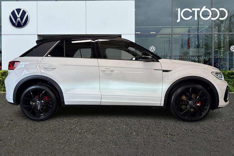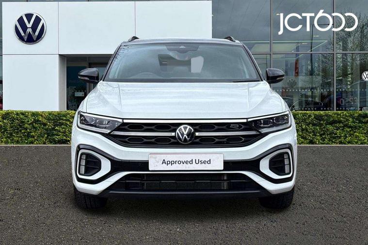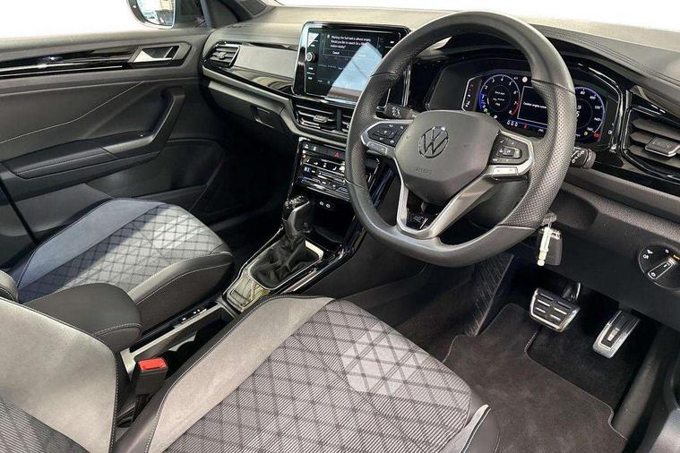 10.25" Digital cockpit pro, Advanced driver attention and drowsiness monitor, Emergency call service, Lane keeping system Lane Assist, Mobile phone interface, Modified key software - reduce switch off time for key status change to Long no motion, Online services, Park assist including front and rear parking sensors, Power assisted speed sensitive steering, Service interval indicator, Tailgate/trunk lid release from outside, Think blue trainer driver tips and journey analysis, Warning sound and light for front seatbelts unfastened, Wireless app connect, Battery regeneration during braking, Rear shock absorption chassis with increased ride height, Start/stop function with battery regeneration, DAB Digital radio, Diversity antenna for FM reception, Front and rear 6 speakers, Music playback - MP3, WMA and AAC files, Premium USB cable in choice of either Apple or Android smartphone compatibility, SD card slot, Simultaneous pairing of 2 compatible mobile devices, Title and cover art display, We Connect and We Connect Plus functionality, Auto dimming interior rear view mirror, Automatic hazard lights activation under emergency braking, Automatic headlight control with LED separate daytime running lights with coming/leaving home function, Dynamic cornering light, Electrically adjustable and heated door mirrors, Extended roof spoiler, Exterior mirrors aspherical on driver side, convex on front passenger side, External USB type C socket and charging sockets, Front windscreen wiper with intermittent wipe and 4 position delay, Heated rear window, Illuminated front grille, IQ LED matrix headlights, LED 3rd brake light, LED rear number plate lights, LED rear tail lights with dynamic turn signal, Light mode for poor weather, rain, fog or snow, Power windows with comfort operation and circuit breaker, R-Line design body coloured bumpers, Rain sensor, Rear exhaust tailpipe, Rear fog light on one side and reversing lights on both sides, Rear side wing doors, Rear wash/wipe with intermittent wipe setting, Remote electrically foldable door mirrors, puddle lights and reverse activated passenger's door mirror, 12V power socket in centre console, 3 rear head restraints, 3 seat bench in 2nd row, 4 load lashing points in luggage compartment, Air care climatronic air conditoning system with active combination filter and 2-zone temperature control, Artvelours cloth upholstery, Black roof lining, Chrome plated radiator grille inserts, air vent surrounds and light switch surrounds, Door and side trim panel with leatherette insert, Drawer under drivers seat, Driver seat height adjust, Driver's seat lumbar support, Front + rear carpet mats, Front centre armrest, Front comfort sports seats, Front cupholders x 2, Front footwell illumination, Front reading light, Front scuff plates with R Line logo, Front seat back storage pockets, Glove compartment door with light, Instrument lighting, white adjustable panel illumination, Interior ambient lighting and surround lighting, Interior light delay, Isofix child seat preparation, Leather gearshift handle, Leather wrapped multifunction steering wheel with paddle shift, Load-through provision with cup holder when folded down ('Unsplit rear seat bench, split folding backrest, with centre armrest), Luggage compartment lighting, Non-folding front passenger seat backrest, Passenger seat height adjuster, Passenger seat lumbar support, Single front passenger seat, Stainless steel pedals, Storage compartment in left and right luggage area, Storage compartment in rear doors, Storage compartments in driver and front passenger doors, Sunvisors with illuminated vanity mirrors, Variable boot floor, height adjustable and removable, Winter pack without heated windscreen washer jets - T-Roc, 3 point height adj front seatbelts + pretensioners, 3 point seatbelts in outer rear with ECE label, ABS, Child locks on rear doors, City emergency braking and pedestrian monitoring, Driver and front passenger airbag with front passenger airbag deactivation, Driver and front passenger safety-optimised head restraints, Drivers seatbelt reminder, Electronic parking brake, Electronic Stability Control (ESC) inc EDL (Electronic Differential Lock) and ASR (Traction Control), Front and rear passengers curtain airbag system including front side airbags, Front disc brakes, Hill start assist, Predictive pedestrian protection, Rear disc brakes, Two tone horn, Tyre pressure loss indicator, Volkswagen roadside assistance, Tool kit, Trims for alloy wheels, Tyre mobility kit including compressor and sealing foam,