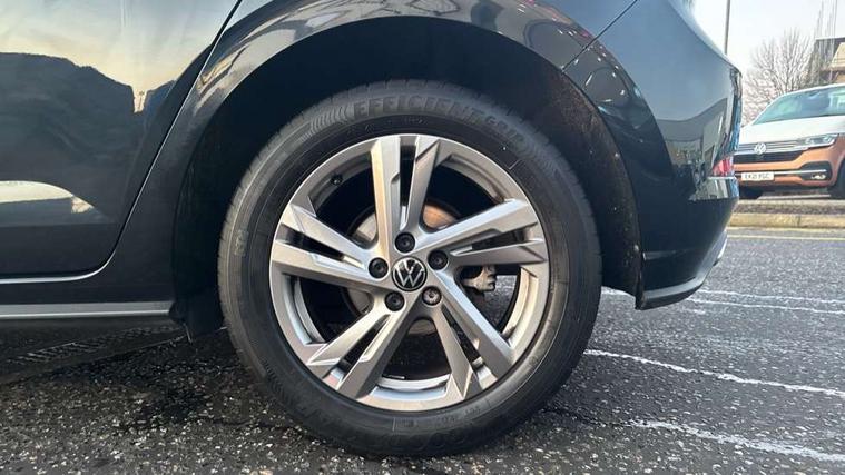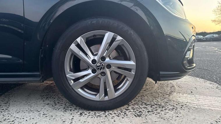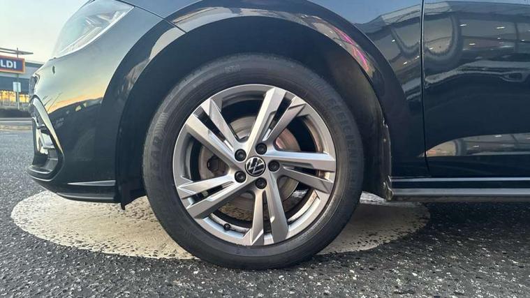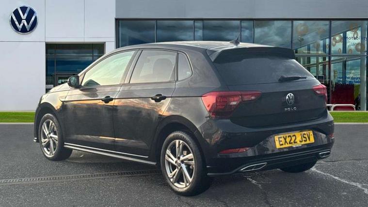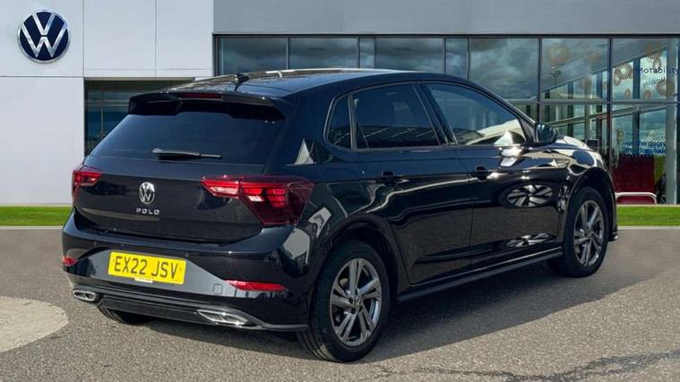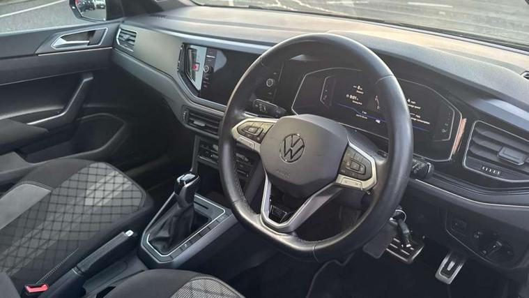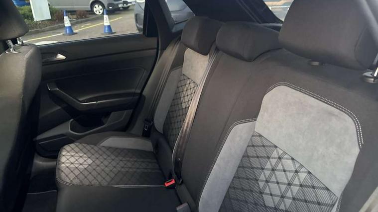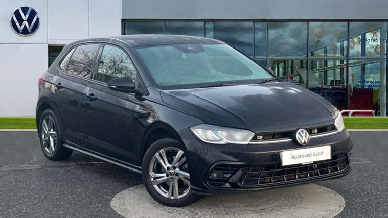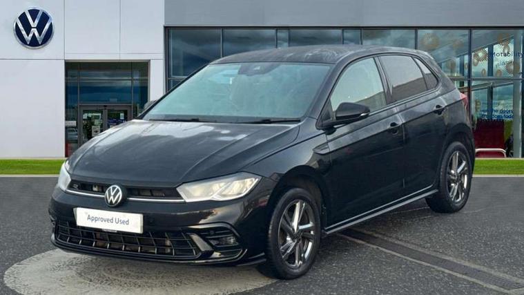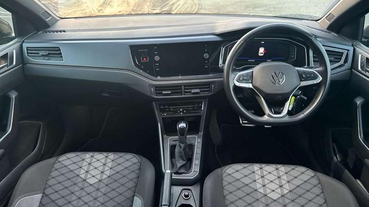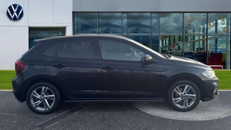 Adaptive cruise control with follow-to-stop and speed limiter, Bluetooth mobile phone interface, Digital Cockpit Pro with 10.25" Display, Driver alert system, Dynamic road sign display, Emergency call service, Power assisted speed sensitive steering, Preparation for We connect and We connect plus, Speedo and rev counter, electronic odometer, trip, service interval display and fuel gauge, Standard rear axle, Travel Assist - Lane keeping system and traffic jam assist, Travel assist including emergency assist, Trip computer, Warning signal and warning light for front and rear seatbelts not fastened, Washer fluid level indicator, Wireless app connect, Front wheel drive, Rear shock absorpion, Start-stop system with battery regeneration (recuperation - energy recovery during braking), DAB Digital radio, Diversity antenna for FM reception, Front and rear 6 speakers, Body colour bumpers, Body colour door handles, Body colour door mirrors, Electric front windows, Front fog lights with static cornering function, Front scuff plates with R-Line logo, Heat insulating darkened glass in side and rear windows, Heat insulating glass windscreen, Power folding adjustable/heated exterior mirrors and front passenger exterior mirror lowering function, Rear electric windows, Rear fog light, Rear side wing doors, Rear tinted glass from B-pillar backwards approx 65% tinted, Rear windscreen washer and wiper with interval delay, Third brake light, 12V power socket in centre console, 2 USB-C ports in the front, 2 USB-C charging sockets on the center console in the rear, 3 rear head restraints, 60/40 split folding rear seat and rear seat bench not split, Air care climatronic air conditoning system with active combination filter and 2-zone temperature control, Black roof lining, Ceramique headliner, Chrome plated radiator grille inserts, air vent surrounds and light switch surrounds, Door and side trim panel, Driver and front passenger seat height adjustment, Driver/passenger sunvisors with illuminated vanity mirrors, Front + rear carpet mats, Front centre armrest, Front footwell illumination, Front seat backrest storage pockets, Front sports comfort seats, Handbrake lever handle in leather, Isofix child seat preparation easy-fit (for two outer rear seats, and front passenger seat) compatible with I-size, Karoso artvelours cloth upholstery, Leather trimmed gear knob, LED interior light with switch off delay and dimmer, 2 reading lights front and rear, Luggage compartment cover, Luggage compartment floor, Luggage compartment lighting, Lumbar adjustment for front seats, Single front passenger seat, Stainless steel pedals, Standard pedal cluster, Three spoke leather wrapped multifunction steering wheel with shifting paddles, Light and sight pack - Polo R-Line/Black Edition, 3 point height adj front seatbelts + pretensioners, 3x3 point rear seatbelts, ABS, Driver and front passenger airbag with front passenger airbag deactivation, Drivers and front passengers safety optimised head restraints, ESC (Electronic stability control) + EDL (Electronic Differntial lock) and ASR (Traction control), Extended and predictive pedestrian/ cyclist protection, Front curtain and side airbags with center airbag, Front/rear disc brakes, Hill hold control, Manual child lock in rear doors, Single tone horn, Tyre pressure loss indicator, Alarm with interior protection, Anti-theft alarm system with interior monitoring, backup horn, and towing protection, Anti-theft wheel bolts, Electronic engine immobiliser, Chrome applications on rotary light, mirror adjustment, window regulator switches, outlet with frame in black, Dark grey anodised matt decorative inserts in dash and front door panels, Low rolling resistance tyres,