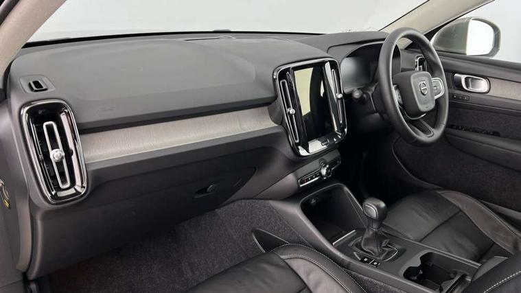 12.3" Active TFT crystal driver's instrument display, 9" centre console portrait touch screen, Adjustable steering wheel force, Bluetooth hands free telephone kit, Drive mode selector, E-call, Lane keep assist with driver alert control, Oncoming Lane Mitigation, Power operated tailgate, Sensus navigation with European mapping and traffic information, Speed limiter, Speed sensitive steering, Voice activated control for key functions, Volvo on call, Dynamic chassis, DAB Digital radio, Steering wheel mounted remote controls, Adaptive brake lights with high level LED brake lights, Auto dimming interior mirror, Automatic headlamp levelling, Chrome window surround, Colour coordinated auto folding and heated power door mirrors, Front aluminium tread plates, Front and rear electric windows, High gloss black front grille with chrome inserts, High gloss black sensus surround deco, High Gloss silver front and rear skid plate, Home safe and approach lighting, Integrated roof rails in silver, LED Headlights + Active high beam incorporating daytime running lights, Rain sensor with automatic windscreen wiper activation, Rear side wing doors, Rear wiper, Roof antenna, Roof spoiler, Visible VIN plate, 12V socket in front tunnel console and luggage compartment, 2 zone electronic climate control and rear air vent, 3 seat bench in 2nd row, 3 Spoke tailored steering wheel with chrome trim, 60/40 versatile split folding rear seat, A-pillar parking ticket holder, Bright metal luggage threshold, Centre console cupholders and storage, Floor mats, Front footwell illumination, Front headrests, Front reading light and theatre lighting, Glovebox bag hook, Height/reach adjustable steering column, Height/tilt adjustable driver's seat, Illuminated glovebox, Illuminated luggage compartment, Illuminated vanity mirrors, Isofix attachments on outer rear seats, Leather faced upholstery, Leather gearknob, Load protection net, Multi directional lumbar support, Power driver seat with memory + exterior mirrors memory, Rear armrest / integral cup holders / storage tray, Rear coat hook, Single front passenger seat, Underfloor cargo storage, Vanity mirror with ticket holder, Park assist pack - XC40, 3x3 point rear seatbelts, City safety includes pedestrian, cyclist and large animal detection and front collision warning with full auto brake, Drivers knee airbag, Dual stage driver/passenger airbags, Electronic parking brake with auto hold, First aid kit, Front and outer rear seatbelt reminder and pretensioners, Front seats SIPS airbags, Hill descent control, Hill start assist, Inflatable curtain, Passenger airbag cut-off device, Road sign information display, Run off Road Mitigation, Run off Road Protection, SIPS (Side Impact Protection System), Slippery road and hazard light alert, Stability and Traction Control with Spin control, Engine Drag Control and Corner Traction Control, Tyre pressure monitoring system, Vehicle deceleration control with Anti-lock Brake System, Electronic Brake Distribution and Emergency Brake Assist, Warning triangle, WHIPS whiplash protection system - front, Anti-theft alarm including immobiliser/volume sensor + level sensor, Care key with user defined top speed, Key integrated remote control central locking + fuel flap with deadlocking system and auto open/close power windows, Locking wheel nuts, Private locking for tailgate, Driftwood inlays,