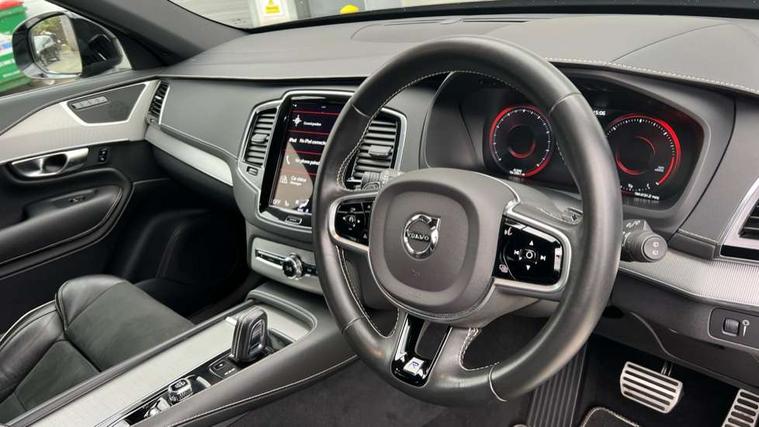 12.3" Active TFT crystal driver's instrument display, 9" centre console portrait touch screen, Adjustable steering wheel force, Bluetooth hands free telephone connection, Drive mode settings, Driver alert control with lane keeping aid, Front and rear park assist, Handsfree power tailgate opening and closing, Intellisafe assist - Adaptive cruise control with pilot assist, Oncoming Lane Mitigation, Sensus navigation with European mapping and traffic information, Service interval indicator, Speed limiter, Speed sensitive steering, Trip computer, Voice activated control for key functions, Volvo on call, Wireless internet connection, 8 speed automatic transmission with start/stop + manual change functions, All wheel drive system, Touring chassis, DAB Radio (Digital Audio Broadcasting), Steering wheel audio controls, Steering wheel remote infotainment controls, Adaptive brake lights with high level LED brake lights, Auto dimming interior + exterior mirrors, Automatic headlight levelling system, Automatic LED Headlights + Active high beam incorporating daytime running lights, Body colour bumpers, Colour coordinated auto folding and heated power door mirrors, Dark tinted windows for rear side windows and cargo area, Dual integrated exhaust pipes with high gloss black surround, Front and rear power windows, Front LED fog lights with cornering function, High gloss black Deco lower front bumper, High gloss black door mirrors, High gloss black mesh front grille with silk metal surround, High gloss black window surround, Home safe and approach lighting, Integrated roof rails in high gloss black, Puddle lights, Rain sensor with automatic windscreen wiper activation, Rear wash/wipe with intermittent wipe setting, Roof antenna, Roof spoiler, Visible VIN plate, 2nd Row centre armrest with storage and cupholders, 3 spoke leather steering wheel and illuminated gear knob with chrome trim, A-pillar parking ticket holder, Ambient door and instrument panel lighting, B Pillar ventilation, Bright metal luggage threshold, Cargo divider with grocery bag holder, Centre console cupholders and storage, Driver's side lower dashboard storage compartment, Front and rear door pocket and front cupholder illumination, Front and rear reading lights, multi-colour theatre lighting and centre armrest storage illumination, Front footwell and side step illumination, Front headrests, Front seat cushion extensions, Heated front seats, Height/reach adjustable steering column, Illuminated front and rear R-Design tread plates, Illuminated luggage compartment, Illuminated tailgate, Illuminated vanity mirrors + ticket holder, Illumination lockable glovebox compartment, Isofix outer rear child seat preparation in 2nd row, Load protection net, Nappa Leather Key Integrated Remote, Outboard armrest with cupholder and storage for third row passengers, Passenger seat electric height adjuster, Power driver seat with multi directional lumbar support and memory for seat and exterior mirrors, Rear footwell and side step illumination, Rear headrests, Semi automatic load cover, Sports floor mats, Sports leather gear knob, Sports pedals, Sports steering wheel with gear shift paddles, Three 2nd row individual folding passenger seats with fore/aft adjustment, Two 3rd row individual folding passenger seats, Underfloor cargo storage, 7 three point seatbelts, City safety includes pedestrian, cyclist and large animal detection and front collision warning with full auto brake, Drivers knee airbag, Dual stage driver/passenger airbags, First aid kit, Front and rear curtain airbags, Front seat side impact airbags, Front seats SIPS airbags, Hill descent control, Hill start assist, IC (Inflatable Curtains) - Full Length, Passenger airbag cut-off switch, Power parking brake with auto hold function, Road sign information display, Run off Road Mitigation, Run off Road Protection, Seatbelt reminder and pretensioners for all seats, SIPS (Side Impact Protection System), Slippery road and hazard light alert, Stability and Traction Control with Spin control, Engine Drag Control and Corner Traction Control, Tyre pressure monitoring system, Vehicle deceleration control with Anti-lock Brake System, Electronic Brake Distribution and Emergency Brake Assist, Warning triangle, WHIPS whiplash protection system - front, Anti-theft alarm including immobiliser/volume sensor + level sensor, Key integrated remote control central locking + fuel flap with deadlocking system and auto open/close power windows, Keyless drive (includes keyless entry and keyless start) with remote tag, Locking wheel nuts, Private locking for glovebox and tailgate, Tailored Instrument Panel and Door Tops with Contrast Stitching, Tempa spare wheel and jack,