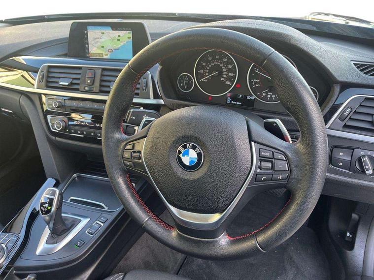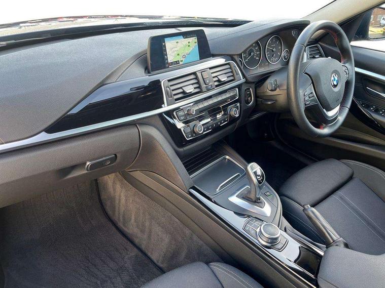 BMW Online services, BMW remote services, BMW Teleservices, Brake force display, Brake pad wear indicator warning light, Check control system, Digital clock, Door/boot open warning light, Lights on warning, Oil temperature gauge, On board computer, On board diagnostics, Operation warning of all exterior lights, Outside temperature display, Push button starter, Real time traffic information, Run flat tyre indicator, Service interval indicator, Traffic message channel (TMC), Diesel particulate filter, Drive Performance Control, Electronic differential lock, Sports function on gearbox with steering wheel mounted gearshift paddles, BMW professional radio/CD/MP3, CD Changer preparation, DAB Digital radio, 2 speed adjustable intermittent wipers with wash/wipe function, Auto dimming rear view mirror, Automatic headlight beam throw control, Body colour bumpers, Body colour door handles, Body colour roof mouldings, Chrome exhaust tailpipe, Clear indicator lenses, Dynamic brake lights, Electric adjustable door mirrors, Electric front and rear windows with one touch/convenient open/close function, Front ornamental grille with black kidney bars and chrome bezel, Green tinted heat insulating glass, Heated rear window with automatic switch off, Heated windscreen washer jets, LED daytime running lights, LED fog lights, LED welcome home lights, Rain sensor + automatic driving lights control, Shark fin roof aerial, 12V sockets in front centre console and passenger footwell, 2 x folding cupholders in instrument panel above glovebox, 3 rear seat head restraints, 4 foldable grab handles - rear with clothes hook, 4 lashing points to secure luggage, 40:20:40 split folding rear bench seat, Automatic interior light soft on/soft off system, Driver and passenger sunvisors with vanity mirrors + slide cover, Dual zone automatic air conditioning, Folding front centre armrest + storage, Front and rear door armrests, Front and rear velour floor mats, Front door storage bins with bottle holder, Front sports seats with electric side bolster adjustment, Glovebox light, Height adjustable front headrests, Indirect front interior illumination - soft-light function, Isofix system on outer rear seats, Leather gear knob, Leather gear selector lever handle, Leather handbrake grip, Lockable glovebox, Luggage compartment lighting, Multi-function controls for steering wheel, Reach + rake adjustable steering column, Rear centre armrest with 2 cupholders, Rear storage compartment in multifunction centre console with sliding cover, Storage compartment in rear doors, Toolkit located in luggage compartment, Extended lighting package - 3 Series, 3 point inertia reel seatbelts + pre-tensioners on outer rear seats, ABS, Automatic Stability Control (ASC), BMW emergency call, Cornering brake control (CBC), Crash sensor, Driver and passenger airbags, DSC+, Dynamic brake control, Dynamic Traction Control - DTC, Front and rear head airbags, Front passenger airbag deactivation, Front seat side impact airbags, Front seatbelt pretensioners + load limiters, Hill start assist, Rear child proof door locks, Seatbelt warning, Three 3 point rear seatbelts, Twin horns, Tyre pressure monitor, Warning triangle and first aid kit, Automatic drive away locking facility, Central locking fuel filler cap, Centre lock switch, Electronic immobiliser, Key integrated remote control central locking, Remote control alarm, Low rolling resistance tyres, Run-flat tyres,