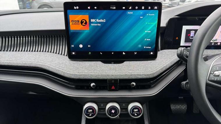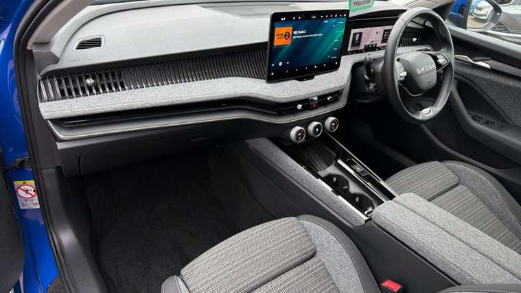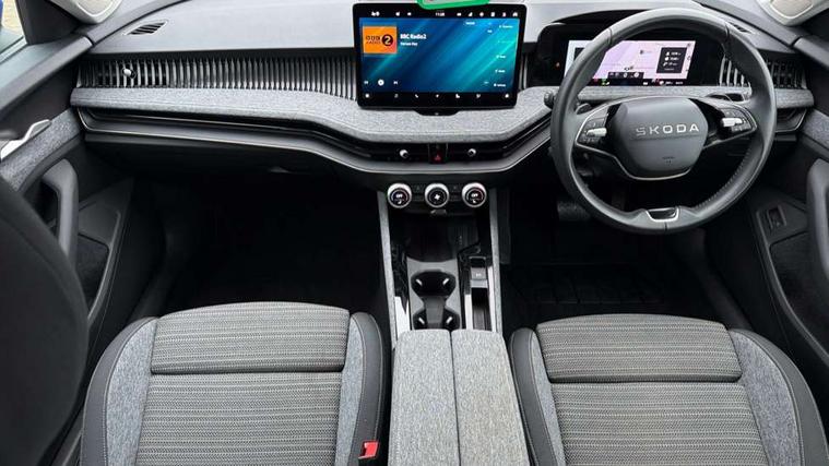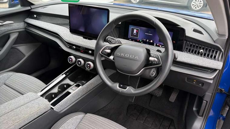 13" touchscreen display with satellite navigation, 4x USB-C ports (2x in front centre console and 2x in rear) (45W), Adaptive cruise control with speed assist, lane assist plus and traffic tram assist, Blind spot detection with door exit warning, Bluetooth system, CareConnect and Emergency Call, ChatGPT functionality, Drive mode selection, Driver fatigue sensor, Front assist with extended predictive pedestrian protection, Front cross traffic assist, PAS, Quick start all heating software functionality, Stop/start engine system, Traffic sign recognition, Turn assist with evasive assistance, Virtual Cockpit - 10.25" digital display, Voice control system, Washer for rear camera, Wireless charging for one smartphone (15W) with cooling function, Wireless smartlink apple carplay, SmartLink+ android auto, Mode 3 charging cable, 8 Speakers, DAB Digital radio, Display cleaner, FM radio connection, Web radio connection, Acoustic side windows and interior noise suppression, Backdrop lighting, Body colour door handles, Body coloured door mirrors, Chrome roof rails, Chrome window surround, Dark chrome grille surround, Electrically adjustable, heated, folding and driver side auto-dimming door mirrors with integrated indicators and logo projection, Frameless auto-dimming rear view mirror with USB-C, Ice scraper in fuel tank cap, LED 3rd brake light, Light assist with High beam control, Light assistant (coming/leaving home/tunnel light), Privacy glass, Rear fog light (x1), Rear roof spoiler, Rear side wing doors, Rear windscreen wiper, Unique dark chrome design logo on alloy wheels, Windscreen wipers with rain sensor, 12V socket 1x centre console 1x boot, 2x cargo elements in boot, 2x light in boot, 3 seat bench in 2nd row, 4x foldable bag hooks in boot, 60:40 Split folding rear seats, Bottle holders in the front doors 1.5 litre bottle and rear 1.5 litre bottle, Cup holder in front with easy open mat, Front armrest with storage box, Front comfort seats, Heated front seats, Height adjustable driver and front passenger seats with 2-way electric tilt, 4-way pneumatic lumbar support, and extendable thigh support, Height adjustable front and rear head restraints, Height adjustable front passenger seat, Illuminated glovebox, Interior lights with control switches, Isofix child seat fittings in outer rear and front passenger seats, LED front and rear reading lights, Massage function for front seats, Single front passenger seat, Skoda lettering on steering wheel, Storage compartment with cover, Storage pockets on back of front seats, Sun visors with illuminated vanity mirrors, Ticket holder on A Pillar, Tri zone climate control, Umbrella in driver's door, 3 rear seatbelts, 8 Airbags - Front driver and passenger, front side driver and passenger, centre, curtain front and rear, drivers knee, Crew protect assist, Driver and passenger seatbelts with warning light, Electronic parking brake, ESC including ABS, EBV, MSR, ASR, EDS, HBA, DSR, RBS, CBC, multi-collision brake (MKB) and Auto hold, Hill hold assist, Power operated child lock in rear doors, Alarm with interior monitoring tilt sensor and back up horn, Backrest remote release from trunk, Electronic engine immobiliser, Keyless start/stop, Remote central locking with SAFE system, Third key, Decorative front door sills, Tyre repair kit,