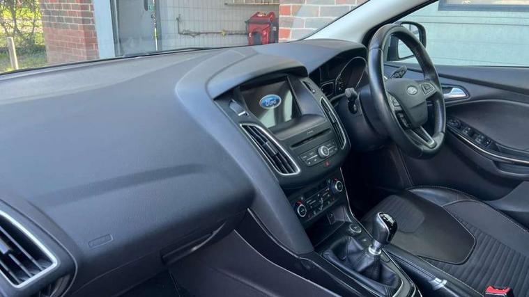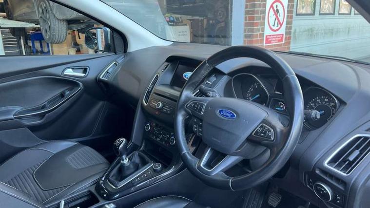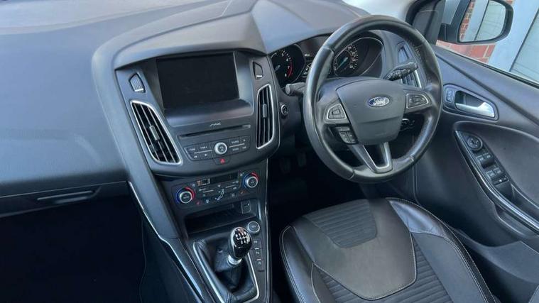 Digital clock, Easy fuel capless refuelling system, Eco mode, Electric boot release, Front and rear parking sensors, Park assist system with steering assist, PAS, Rear view camera, TFT cluster screen, Trip computer, 6 speakers, Aux input, Steering column with mounted audio controls, SYNC 2 DAB radio/CD, 8" colour touch screen, emergency assistance, Bluetooth connection, advanced voice control, USB connection, 'Quickclear' heated windscreen/heated washer jets, Adaptive front lighting system, Auto dimming rear view mirror, Automatic headlights, Automatic rain sensing wipers, Bi-Xenon headlights and headlight washers, Body colour bumpers, Body colour door handles, Body colour door mirrors, Body colour rear spoiler, Chrome finish on upper door line, Chrome radiator grille and surround, Electric adjustable heated door mirrors, Front fog lights, Front variable intermittent wipers with electric wash, Heated rear window, LED daytime running lights, Tailgate wash/wipe, 3 spoke leather steering wheel, 60/40 split back and cushion rear seats with 2 height adjustable headrests, Advanced multicolour ambient light and LED interior light, Centre console storage box/armrest, Driver's seat electric height adjustment, Driver's seat with adjustable lumbar support, Dual electronic automatic temperature control air conditioning - CFC-free, Height adjustable front headrests, Isofix child seat preparation, Passenger seat height/lumbar adjustment, Reach + rake adjustable steering column, Sports style front seats, ABS+Electronic Brake force Distribution, Active city stop, Driver airbag, ESP with traction control + emergency brake assist, Front inertia reel height adjustable seatbelts with pre-tensioners, Front passenger airbag, Front side airbags, Hill start assist, Side curtain airbags, Three rear inertia reel lap/diagonal seatbelts, Torque vectoring brake, Tyre pressure monitoring system, Immobiliser-Passive Anti-Theft System (PATS), Key free system, MyKey system, Remote central double locking, Thatcham Cat.1 alarm, Mini steel spare wheel,