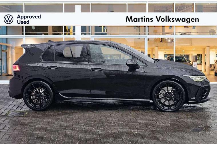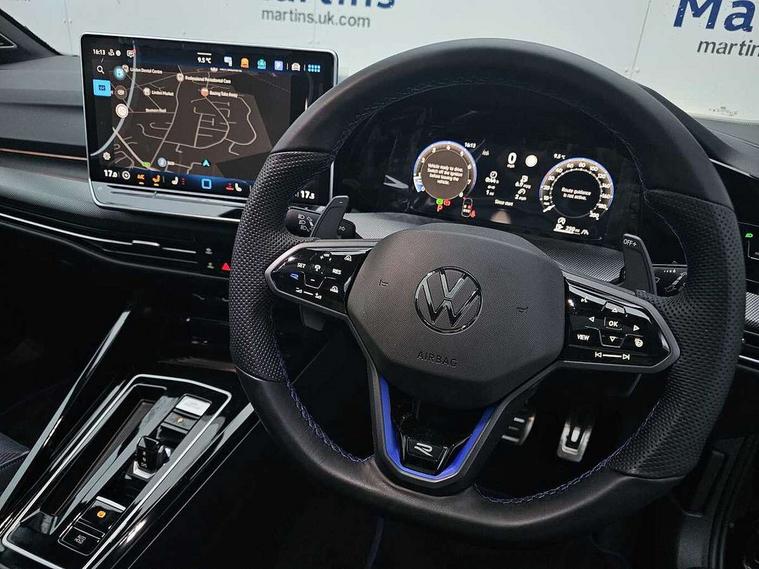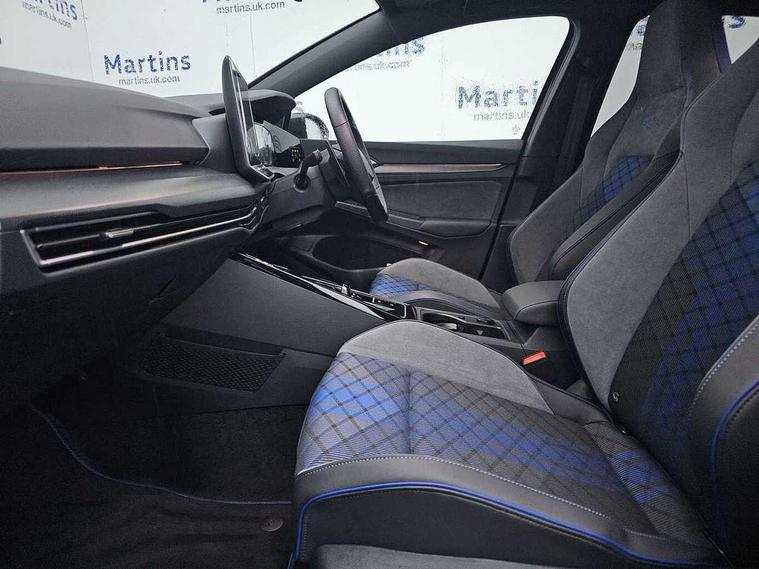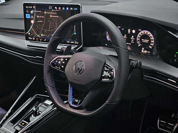 Activated carbon canister, Adaptive cruise control (ACC), Advanced driver attention and drowsiness monitor, Dynamic road sign display, E-Sim card for online connectivity, eCall emergency call system, Electronic maximum speed limit increased to 270 km/h, includes driving Modes 'drift' and 'special', larger roof spolier and GPS laptimer + G-Meter, Multi-color Digital cockpit pro, selection of different info profile possible, Multifunction front facing camera for distance control, Navigation system, Oncoming vehicle braking when turning including swerve support, Progressive steering, Side assist blind spot lane change system, rear traffic alert and exit warning system, Speed limiter, Speedo, rev counter, electronic odometer, trip, service interval display, exterior temperature and fuel gauge, Traffic jam assist, Voice enhancer and voice control, Warning signal and warning light for front and rear seatbelts not fastened, We connect plus preparation, We connect preparation, Wireless app connect, All wheel drive - 4Motion, Petrol Particulate Filter, Start-stop system with battery regeneration (recuperation - energy recovery during braking), XDS electronic differential lock for improved traction and handling, 2 USB C ports in front, 2 USB charging sockets on the centre console in the rear charging capacity upto 45W, Digital radio reception (DAB), Diversity antenna for FM reception, Gaming platform via car app, Infotainment system with 12.9" display, Mobile phone interface with inductive charging feature, 3rd brake light, Auto dimming rear view mirror, Automatic headlamp activation with Coming home and Leaving home feature, Black badge on B-pillar, Black mirror caps, Black strips on radiator grille and headlights, Body colour door handles, Darkened headlights, Darkened R Logos and VW logos in front, rear and on fender, Exterior mirrors convex on the left and aspherical on the right, Front and rear electric windows, Front fog lamps and cornering light, Heat insulating windshield made of laminated glass, Illuminated lighting animation with wake up/goodbye scenario, LED matrix headlights with ambient light V2, advanced high beam, dynamic range contol with cornering, LED rear lamp with indicator, poor weather, LED separate daytime running light, Light assist with High beam control, R name plate, Rain sensor, Rear fog light on one side and reversing lights on both sides, Rear side wing doors, Rear tinted glass 65% light absorbing from B pillar backwards, Rear windscreen washer and wiper with interval delay, Remote electrically foldable door mirrors, puddle lights and reverse activated passenger's door mirror, Welcome light with surround lighting, 12V socket in front centre console, 12V socket in luggage compartment, 3 rear head restraints, 3 seat bench in 2nd row, 30 colour ambient lighting, illuminated center console storage compartment in front, Air care climatronic 3 Zone automatic climate control with rear air conditioning control panel, Aluminium gearshift handle, Brushed stainless steel pedals, Chrome plated radiator grille inserts, air vent surrounds and light switch surrounds, Entry lights, Front + rear black carpet mats, Front centre armrest, Integrated front head restraints, ISOFIX anchors for child seats on outer rear bench seats and on front passanger seat compatible for i-Size, Luggage compartment lighting, Rear cupholder and loadthough, Single front passenger seat, Soul black instrument panel, Soul black roof lining, Split folding backrest with centre armrest and unsplit rear seat bench, Sun visors with illuminated vanity mirrors, Driver assistance pack - Golf Estate/Hatchback Auto, R styling pack - Golf, Technology park and comfort pro package - Golf Hatchback, 3 point height adj front seatbelts + pretensioners, 3 rear three point seatbelts, ABS, Autonomous emergency braking front assist with pedestrian and cyclist monitoring, Child locks on rear doors, Driver and front passenger airbag with front passenger airbag deactivation, Electronic parking brake with auto hold, ESC (Electronic Stability Control), Extended pedestrian protection measures, Front and rear black brake calipers with darkened R-logo, Hill start assist, Rear disc brakes, Two tone horn, Tyre pressure loss indicator, Volkswagen roadside assistance, Anti theft wheel bolts, Preparation for alcohol interlock, Sporty vehicle dynamics, Tool kit for tyre mobility set, Tyre mobility kit Includes 12V compressor and tyre sealant, Wheel hub cover with darkened R-logo,