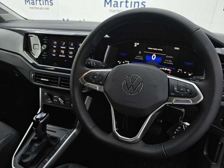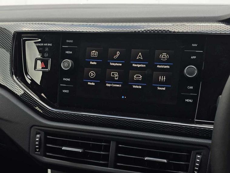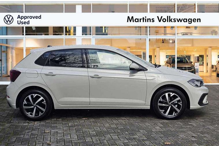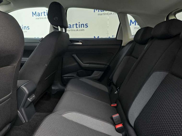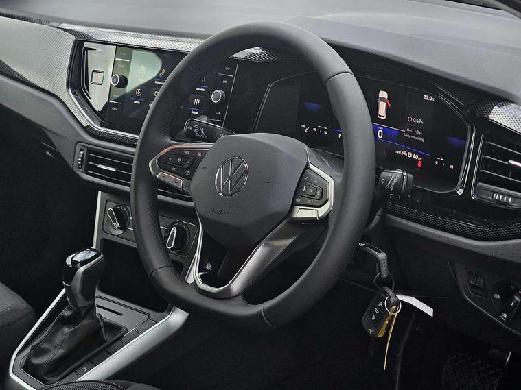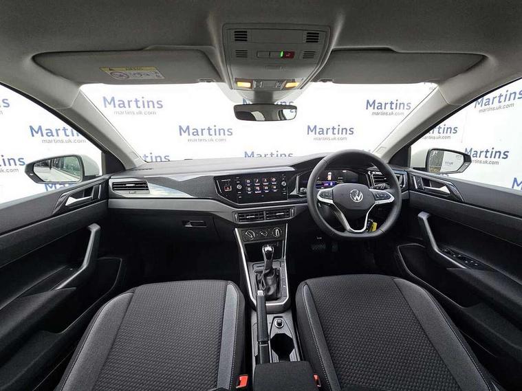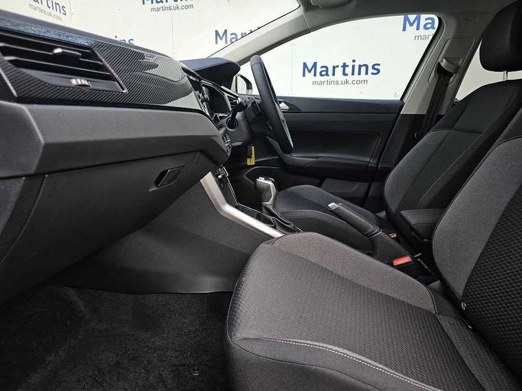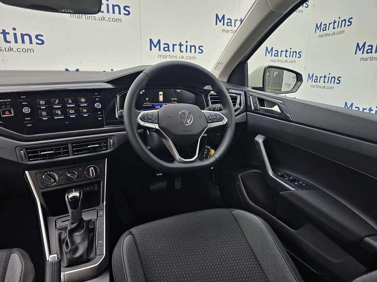 Advanced driver attention and drowsiness monitor, Bluetooth mobile phone interface, Dynamic road sign display, Emergency call service, Mobile phone preparation with inductive charging function, Multifunction front facing camera for distance control, Power assisted speed sensitive steering, Predictive adaptive cruise control without follow-to-stop and speed limiter, Preparation for navigation system with media and internet package, Preparation for We connect and We connect plus, Rear view camera, Speedo and rev counter, electronic odometer, trip, service interval display and exterior temperature gauge, Standard rear axle, Travel Assist - Lane keeping system and traffic jam assist, Travel assist including emergency assist, Trip computer, Warning signal and warning light for front and rear seatbelts not fastened, Washer fluid level indicator, Wireless app connect, Front wheel drive, Rear shock absorpion, Start-stop system with battery regeneration (recuperation - energy recovery during braking), DAB Digital radio, Diversity antenna for FM reception, Automatic dimming interior rear view mirror, Automatic headlight control with LED separate daytime running lights with coming/leaving home function, Body colour bumpers with chrome inserts, Body colour door handles, Body colour door mirrors, Electric front windows, Engine badge deletion, Headlight range adjustment, Heat insulating and laminated safety glass windshield, LED Headlights, LED rear combination lamps, Power folding adjustable/heated exterior mirrors and front passenger exterior mirror lowering function, Rain sensor, Rear electric windows, Rear fog light, Rear side wing doors, Rear tinted glass from B-pillar backwards approx 65% tinted, Rear windscreen washer and wiper with interval delay, Third brake light, 12V power socket in centre console, 2 front and 2 rear reading lights with switch off delay and dimmer, 2 USB-C ports in the front, 2 USB-C charging sockets on the center console in the rear, 3 rear head restraints, 60/40 split folding rear seat and rear seat bench not split, Carpet mats, front and rear, Ceramique roof lining, Chrome plated radiator grille inserts, air vent surrounds and light switch surrounds, Door and side trim panel, Driver and front passenger seat height adjustment, Driver/passenger sunvisors with illuminated vanity mirrors, Front centre armrest, Front seat backrest storage pockets, Front standard seats, Handbrake lever handle in leather, Hartley/Thomas cloth upholstery, Headliner in recycled material, Isofix child seat preparation easy-fit (for two outer rear seats, and front passenger seat) compatible with I-size, Leather trimmed gear knob, Luggage compartment cover, Luggage compartment lighting, Removable luggage compartment floor, Single front passenger seat, Standard climatic zones, Standard pedal cluster, Three spoke leather wrapped multifunction steering wheel with shifting paddles, Light and vision pack - Polo, 3 point height adj front seatbelts + pretensioners, 3 point seat belt for centre rear seat, 3 point seatbelts, outer rear with ECE lable, ABS, Driver and front passenger airbag with front passenger airbag deactivation, Drivers and front passengers safety optimised head restraints, ESC (Electronic stability control) + EDL (Electronic Differntial lock) and ASR (Traction control), Extended and predictive pedestrian/ cyclist protection, Front assist with autonomous emergency braking (for Adaptive Cruise Control ACC up to 130 mph), Front curtain and side airbags with center airbag, Front disc brakes, Hill hold control, Manual child lock in rear doors, Rear drum brakes, Single tone horn, Tyre pressure loss indicator, Alarm with interior protection, Anti-theft alarm system with interior monitoring, backup horn, and towing protection, Anti-theft wheel bolts, Electronic engine immobiliser, Lava stone black gloss/matt decorative inserts in dash and front door panels, 16" Torsby alloy wheels, Low rolling resistance tyres,