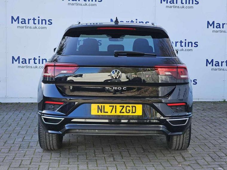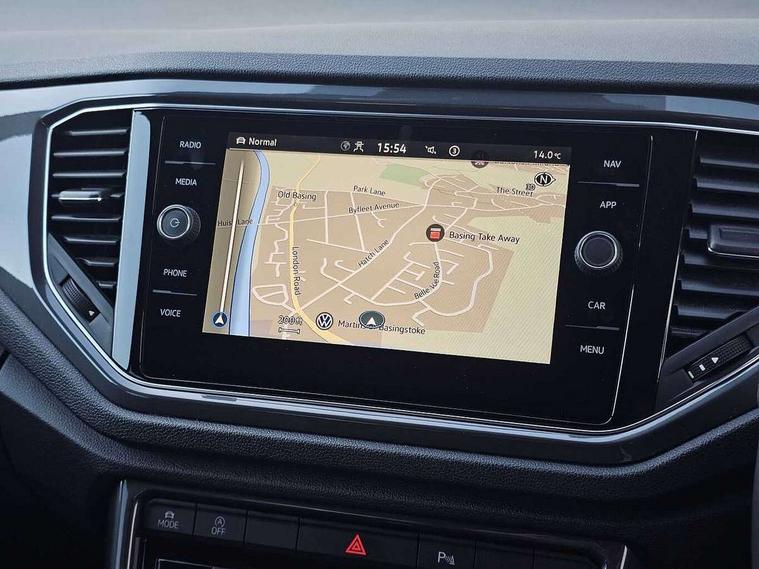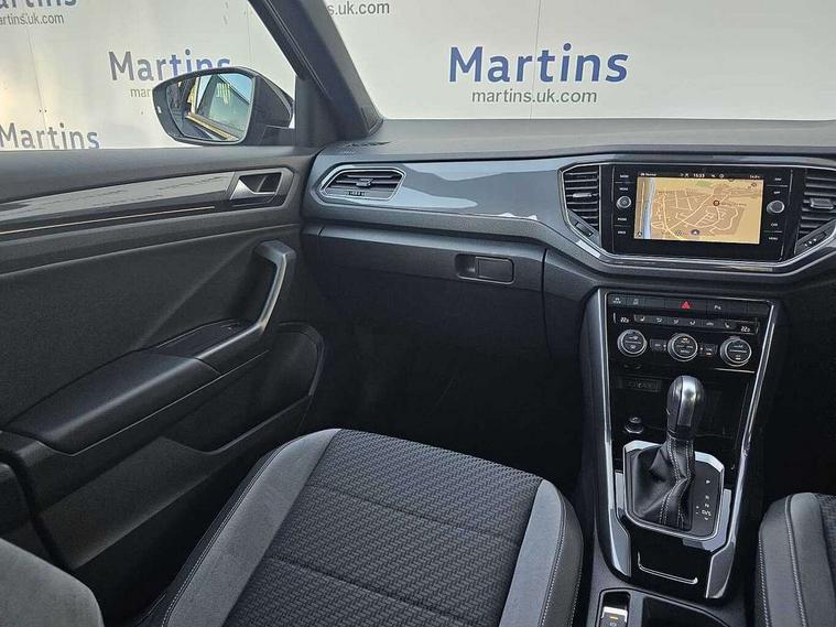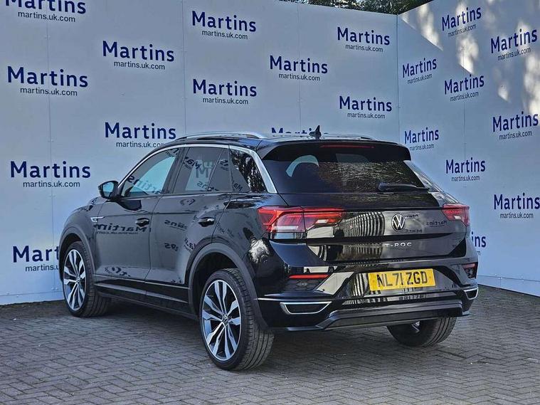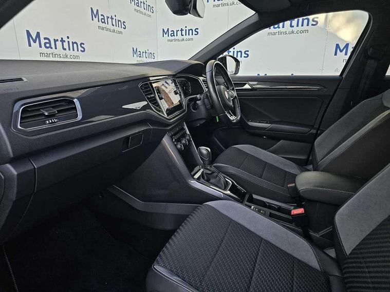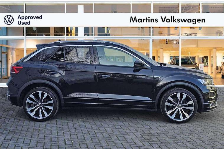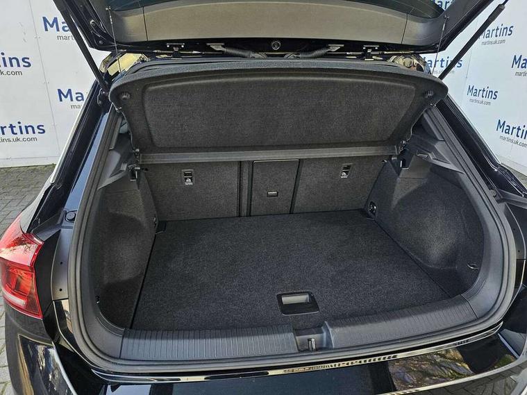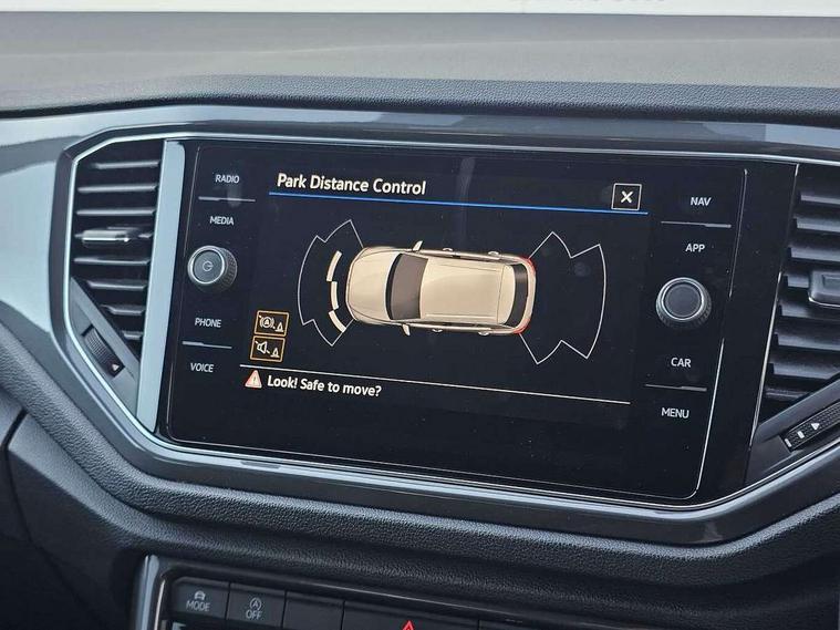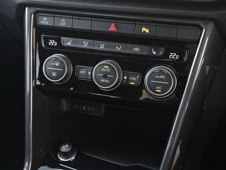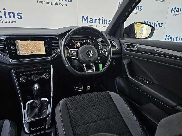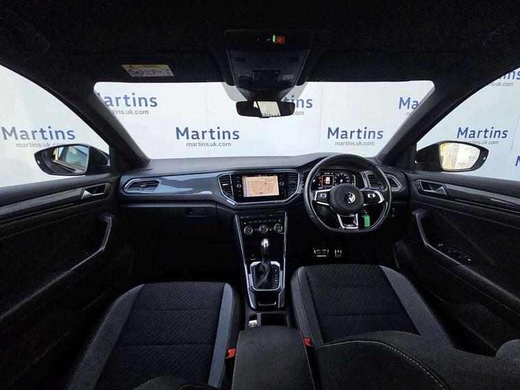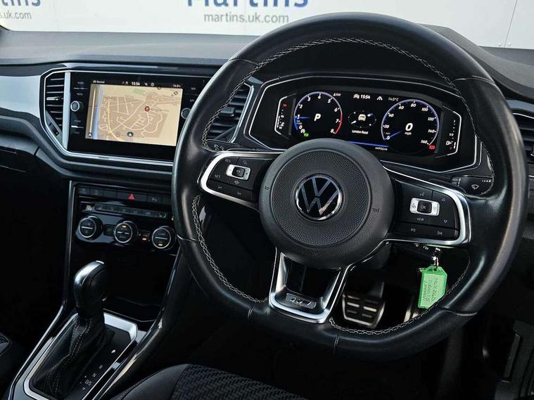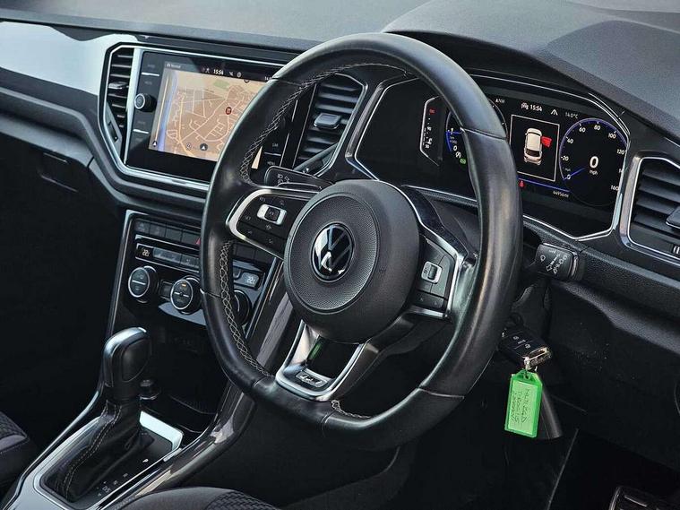 'Lights On' Reminder warning buzzer, Adaptive cruise control, Bluetooth telephone and audio connection for compatible devices, Car information display, Digital Cockpit Pro - Active info display, Driver alert system with audible and visual fatigue detection system, Driver tips and journey analysis, Emergency call service, Lane assist with warning text instrument cluster, Modified key software - reduce switch off time for key status change to Long no motion, Multifunction camera, Multifunction computer with visual gear change recommendation for fuel consumption, Navigation system discover media including streaming and internet, Service interval indicator, Think blue trainer driver tips and journey analysis, Traffic sign recognition, Voice activation, Warning sound and light for front seatbelts unfastened, Wireless app connect for apple carPlay, Battery regeneration during braking, Rear shock absorption for sports version, Start/stop function with battery regeneration, DAB Digital radio, Disk brakes in front, Diversity antenna for FM reception, Music playback - MP3, WMA and AAC files, Premium USB cable in choice of either Apple or Android smartphone compatibility, SD card slot, Simultaneous pairing of 2 compatible mobile devices, SMS functionality - read, compose and send SMS messages using touch-screen display, Storage compartment with longitudinal and height adjustable in armrest and two rear air vents, Three route options - Fast, Short, Eco, Title and cover art display, USB-C Interface and USB charging socket, Auto dimming interior rear view mirror, Automatic coming/leaving home lighting function and daytime running lights, Automatic hazard lights activation under emergency braking, Black grained lower door protectors, Body colored door lower parts, Body colour door handles, Body colour rear roof spoiler, Chrome effect left and right trapezoid exhaust tailpipe fascia surround, Chrome plated moldings, Chrome trim on upper and lower radiator grille, Dusk sensor, Dynamic headlight range control with self adjusting whilst driving, Electrically foldable, adjustable and heated door mirrors with puddle lights and reverse activated kerb-view adjustment on passenger's door mirror, External USB type C socket and charging sockets, Front and rear electric windows, Front fog lights with static cornering function, Front windscreen wiper with intermittent wipe and 4 position delay, Fully galvanised body, Heated rear window, Heated windscreen washer jets, High level 3rd brake light, LED darkened rear light clusters, LED headlamps with automatic range adjustment and unique signature LED separate daytime running lights, LED rear number plate lights, LED tail lamp rear comination lamps, Privacy glass, R-Line design body coloured bumpers, Rain sensor, Rear tinted glass from B-pillar backwards approx 65% tinted, Rear wash/wipe with intermittent wipe setting, Silver anodised roof rails, Volkswagen roundel, 12V socket in centre console storage area, 3 rear head restraints, 4 load lashing points in luggage compartment, Aluminium pedals, Black roof lining and sun visors, Branded points of interest, Carbon flag cloth upholstery, Chrome plated radiator grille inserts, air vent surrounds and light switch surrounds, Climate control - 2 zone electronic air conditioning with automatic air recirculation and allergy filter, Door and side trim panel, Door and side trim panel in foam film, insert in leatherette, Drawer under drivers seat, Front + rear carpet mats, Front centre armrest, Front cupholders x 2, Front seat back storage pockets, Front sports seats with R-Line logo on seat backrest, Glovebox, Heated front seats, Height adjustable front seats, Height/reach adjust steering wheel, Instrument lighting, white adjustable panel illumination, Interior light delay, Interior light in footwell, Isofix easy fit child seat preparation for 2 outer rear seats, Leather gearshift knob, Leather multi function sport steering wheel with gear change selection via paddle shift on steering wheel, LED interior light with switch off delay/dimmer and 2 front/rear LED reading lights, Load through provision with single cup holder when folded down, Luggage compartment cover, removable, Luggage compartment lighting, R Line badge, Scuff plates in door apertures, Split folding rear seat backrests with centre armrest, Stainless steel pedals, Storage compartment in left and right luggage area, Storage compartment in rear doors, Storage compartments in driver and front passenger doors, Sunvisors with illuminated vanity mirrors, Unique R Line door sill protectors, White ambient lighting, R line styling pack - T-Roc, Winter pack - T-Roc, 3 rear three point seatbelts, ABS, Curtain airbags, Driver and front passenger safety-optimised head restraints, Drivers and front passengers airbags with passengers deactivation switch, Drivers seatbelt reminder, Electronic parking brake with auto hold, Electronic stability control (ESC) includes ASR, EDL, EDTC and trailer stabilisation function, Front assist with city emergency braking and pedestrian monitoring, Front seat side impact airbags, Hill start assist, Predictive pedestrian protection, Rigid safety cell with front and rear crumple zones, Single tone horn, Three point height adjust front seatbelts + pretensioners, Tyre pressure loss indicator, Ventilated front and rear disc brakes, Volkswagen roadside assistance, Alarm with remote central locking and interior protection, Electronic engine immobiliser, Remote central locking with SAFELOCK, radio remote control with 2 remote control folding keys, Shadow grey decorative inserts in dash, centre console and door panel, 19" Suzuka alloy wheels with low rolling resistance tyres and anti wheel bolts,