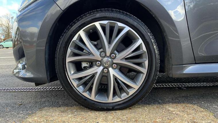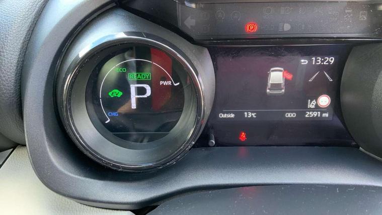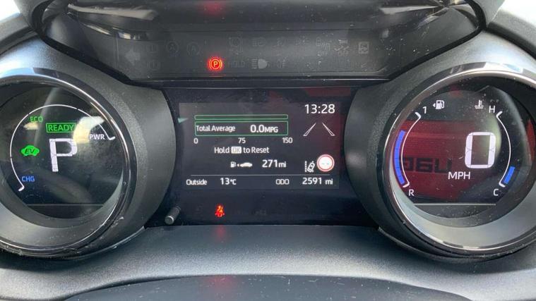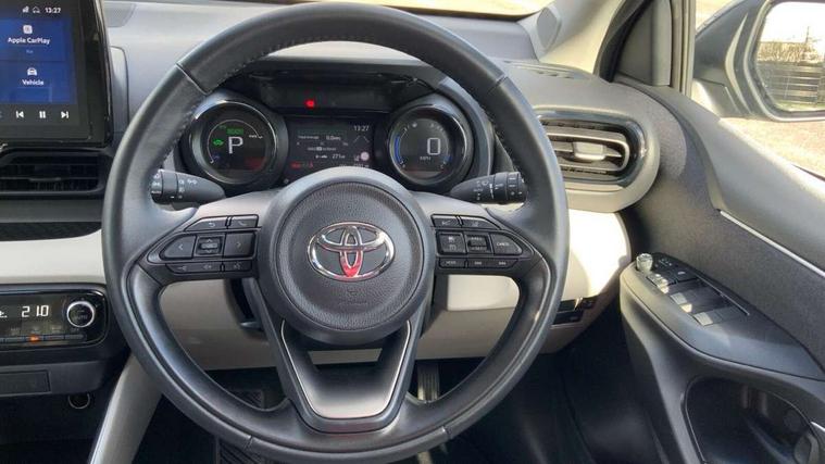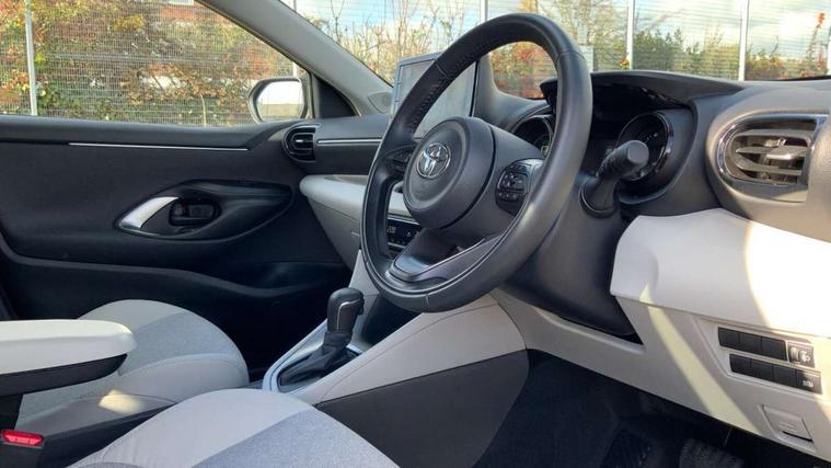 Adaptive cruise control, Adjustable speed limit with speed warning, Blind spot monitoring, Bluetooth connectivity, Colour binocular inspired displays with digital speedometer, E-call, Electric power steering, Hybrid energy display, Multi information display switches on steering wheel, Reversing camera, Smartphone integration with Apple CarPlay and Android auto, Tailgate, Touch 2 navigation system, Voice recognition, Vehicle Stability Control (VSC), 6 speakers, 9" HD multimedia display touch screen with Toyota smart connect, USB connection, Acoustic windscreen glass, Auto windscreen wipers, Automatic headlights, Automatically retractable door mirrors, Body coloured door mirrors, Electric adjustable heated door mirrors, Follow me home headlights, Front auto power windows with anti jam protection, Full LED rear lights, LED daytime running lights, LED front fog lights, LED front light guide, LED Headlights, LED High mounted stop lamp, LED Indicators, LED rear light guide, Manual headlight levelling, Painted chequered front grille, Rain sensor, Rear auto power windows with anti jam protection, Rear privacy glass, Rear side wing doors, Rear spoiler, Rear wiper, Satin lower front grille, Shark fin antenna, Turning signal integrated indicators in door mirrors, Variable front intermittent wipers, 3 adjustable rear headrests, 3 seat bench in 2nd row, 3 spoke leather steering wheel, 60/40 split folding rear seat, Active headrests, Adjustable boot height, Coat hooks in rear grab handles, Cup holders (2 front & door), Data Communication Module (DCM) connected services, Dual zone automatic air conditioning, Fabric seat with partial synthetic leather upholstery, Front armrest, Front sport seats, Glovebox, Grey roof lining, Height adjustable driver's seat, Height adjustable passenger seat, Isofix seat fixing, Leather gearshift, Map pockets on the backs of the front seats, Pollen filter, Shopping bag hooks, Single front passenger seat, Tilt/telescopic steering column, Parking pack - Yaris, 3 point seatbelts on all rear seats, ABS+EBD+Brake assist, Electronic parking brake, Emergency brake light system (EBS), Front passenger airbag on/off switch, Front seatbelt reminder, Hill start assist control (HAC), Rear child proof door locks, Rear seat belt reminder, Supplemental Restraint System (SRS) 8 airbags: Driver & passenger's airbags, dual side curtain airbags, side impact airbags, front centre airbag, Toyota Safety Sense 2, Precollison + Night time Pedestrian & Cyclist Detection, Lane Trace Assist, Auto High Beam, Intelligent ACC & Road Sign Assist, Tyre pressure warning system, 2x Master key, Alarm/immobiliser, Keyless smart entry with push button start, Remote AC via MyT, Remote locking via MyT, Remote powered central double locking doors, Satin chrome interior styling, Soft touch instrument panel, Space saver spare wheel,