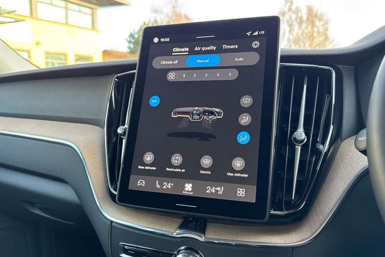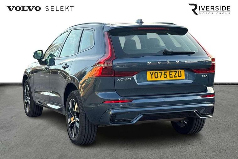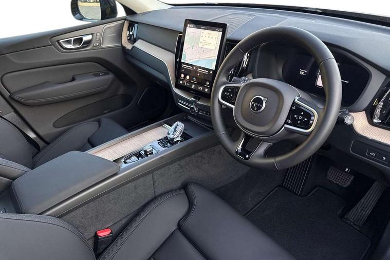 11.2" centre console touch screen, 12.3" Progressive Driver Display, 360 degree surround view parking camera with side proximity sensors, Adaptive cruise control, Adjustable steering wheel force, Android auto (Wired), Apple carplay (wired), Bluetooth handsfree system, Drive mode settings, Driver alert control with lane keeping aid, Driver understanding system, Emergency services call system, Front and rear park assist, Google Automotive Services, Intelligent speed assistance, Oncoming Lane Mitigation, PAS, Power operated tailgate with handsfree opening and closing, Service interval indicator, Speed limiter, Speed sensitive steering, Trip computer, Volvo cars services with app, Volvo on call with App, Wireless/Inductive Mobile Phone Charging, 2 phase on board charger 6.4kW (home charging limited to 3.7kW), 6m 3 phase 16amp Type 2 / mode 3 charge cable, 8 speed automatic transmission with start/stop + manual change functions, Electric rear axle drive, Recharging port located in nearside front wing, DAB Digital radio, Low speed exterior sound speaker, Premium Sound by Harman Kardon, dirac unison, dolby pro logic II surround sound, 13 speakers/600W output and fresh air subwoofer, Steering wheel remote infotainment controls, Adaptive brake lights with high level LED brake lights, Auto dimming interior + exterior mirrors, Automatic headlight levelling system, Automatic LED Headlights + Active high beam incorporating daytime running lights, Electric adjustable/heated/auto power folding door mirrors, Electric front+rear windows, Front aluminium tread plates, Heated front windscreen, High gloss black door mirrors and window surround, High gloss black front and rear bumper decoratives, High gloss black mesh front grille with high gloss black surround, Home safe and approach lighting, Integrated roof rails in high gloss black, Puddle lights, Rain sensor with automatic windscreen wiper activation, Rear side wing doors, Rear wiper, Roof antenna, Roof spoiler, Tinted windscreen, Visible VIN plate, 12V socket in front tunnel console and luggage compartment, 2 zone electronic climate control with Clean zone air quality system and pollen filter, 3 seat bench in 2nd row, 3 Spoke tailored steering wheel with chrome trim, A-pillar parking ticket holder, Air purifier particulate matter (PM) 2.5 filter, B Pillar ventilation, Bright metal luggage scuff plate, Centre console cupholders and storage, Charcoal floor mats, Front and rear courtesy lights, Front and rear door pocket illumination, Front cupholder illumination, Front footwell illumination, Front reading lights, Front seat cushion extensions, Glovebox compartment with illumination, Head restraints for all seats, Heated front seats, Heated steering wheel, Height/reach adjustable steering column, Illuminated luggage compartment, Illuminated vanity mirrors + ticket holder, Inner door release handle illumination, ISOFIX attachment on outer rear seats, Load cover, Load protection net, Multi directional lumbar support, Power driver seat with memory + exterior mirrors memory, Power height adjustable passenger seat, Power passenger seat with memory, Quilted nordico leather upholstery, Rear armrest with cupholder, Rear footwell and front and rear side step illumination, Rear reading lights, Rear seat concealed storage, Single front passenger seat, Tailgate illumination and ambient door lighting, Underfloor stowage compartment, Versatile split folding rear seat - 60/40, Driver assist pack without Adaptive cruise control - XC60, 5 three point seatbelts, City safety with steering support with Pedestrian + cyclist + front collision warning with full auto brake and rear auto brake, Drivers knee airbag, Dual stage driver/passenger airbags, Electronic parking brake with auto hold, First aid kit, Front seats SIPS airbags, Hill descent control - Off-road drive mode, Hill start assist, IC (Inflatable Curtains) - Full Length, Passenger airbag cut-off device, Power child locks on rear doors, Road sign information display, Run off Road Mitigation, Run off Road Protection, Seatbelt reminder and pretensioners, SIPS (Side Impact Protection System), Slippery road and hazard light alert, Stability and Traction Control with Spin control, Engine Drag Control and Corner Traction Control, Tyre pressure monitoring system, Vehicle deceleration control with Anti-lock Brake System, Electronic Brake Distribution and Emergency Brake Assist, Warning triangle, WHIPS whiplash protection system - front, Anti-theft alarm including immobiliser/volume sensor + level sensor, Key integrated remote control central locking + fuel flap with deadlocking system and auto open/close power windows, Keyless Drive (includes Keyless Entry and Keyless Start), Locking wheel nuts, Private locking for tailgate, Summer tyres, Tyre sealant kit + 12v compressor,