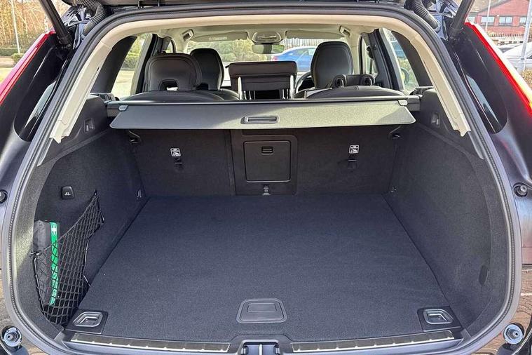 11.2" centre console touch screen, 12.3" Progressive Driver Display, 360 degree surround view parking camera with side proximity sensors, Adaptive cruise control, Adjustable steering wheel force, Android auto (Wired), Apple carplay (wired), Bluetooth handsfree system, Drive mode settings, Driver alert control with lane keeping aid, Driver understanding system, Emergency services call system, Front and rear park assist, Google Automotive Services, Intelligent speed assistance, Oncoming Lane Mitigation, PAS, Power operated tailgate with handsfree opening and closing, Service interval indicator, Speed limiter, Speed sensitive steering, Trip computer, Volvo cars services with app, Volvo on call with App, Wireless/Inductive Mobile Phone Charging, 2 phase on board charger 6.4kW (home charging limited to 3.7kW), 6m 3 phase 16amp Type 2 / mode 3 charge cable, 8 speed automatic transmission with start/stop + manual change functions, Electric rear axle drive, Recharging port located in nearside front wing, DAB Digital radio, Low speed exterior sound speaker, Premium Sound by Harman Kardon, dirac unison, dolby pro logic II surround sound, 13 speakers/600W output and fresh air subwoofer, Steering wheel remote infotainment controls, Adaptive brake lights with high level LED brake lights, Auto dimming interior + exterior mirrors, Automatic headlight levelling system, Automatic LED Headlights + Active high beam incorporating daytime running lights, Electric adjustable/heated/auto power folding door mirrors, Electric front+rear windows, Front aluminium tread plates, Heated front windscreen, High gloss black door mirrors and window surround, High gloss black front and rear bumper decoratives, High gloss black mesh front grille with high gloss black surround, Home safe and approach lighting, Integrated roof rails in high gloss black, Puddle lights, Rain sensor with automatic windscreen wiper activation, Rear side wing doors, Rear wiper, Roof antenna, Roof spoiler, Tinted windscreen, Visible VIN plate, 12V socket in front tunnel console and luggage compartment, 2 zone electronic climate control with Clean zone air quality system and pollen filter, 3 seat bench in 2nd row, 3 Spoke tailored steering wheel with chrome trim, A-pillar parking ticket holder, Air purifier particulate matter (PM) 2.5 filter, B Pillar ventilation, Bright metal luggage scuff plate, Centre console cupholders and storage, Charcoal floor mats, Front and rear courtesy lights, Front and rear door pocket illumination, Front cupholder illumination, Front footwell illumination, Front reading lights, Front seat cushion extensions, Glovebox compartment with illumination, Head restraints for all seats, Heated front seats, Heated steering wheel, Height/reach adjustable steering column, Illuminated luggage compartment, Illuminated vanity mirrors + ticket holder, Inner door release handle illumination, ISOFIX attachment on outer rear seats, Load cover, Load protection net, Multi directional lumbar support, Power driver seat with memory + exterior mirrors memory, Power height adjustable passenger seat, Power passenger seat with memory, Quilted nordico leather upholstery, Rear armrest with cupholder, Rear footwell and front and rear side step illumination, Rear reading lights, Rear seat concealed storage, Single front passenger seat, Tailgate illumination and ambient door lighting, Underfloor stowage compartment, Versatile split folding rear seat - 60/40, Driver assist pack without Adaptive cruise control - XC60, 5 three point seatbelts, City safety with steering support with Pedestrian + cyclist + front collision warning with full auto brake and rear auto brake, Drivers knee airbag, Dual stage driver/passenger airbags, Electronic parking brake with auto hold, First aid kit, Front seats SIPS airbags, Hill descent control - Off-road drive mode, Hill start assist, IC (Inflatable Curtains) - Full Length, Passenger airbag cut-off device, Power child locks on rear doors, Road sign information display, Run off Road Mitigation, Run off Road Protection, Seatbelt reminder and pretensioners, SIPS (Side Impact Protection System), Slippery road and hazard light alert, Stability and Traction Control with Spin control, Engine Drag Control and Corner Traction Control, Tyre pressure monitoring system, Vehicle deceleration control with Anti-lock Brake System, Electronic Brake Distribution and Emergency Brake Assist, Warning triangle, WHIPS whiplash protection system - front, Anti-theft alarm including immobiliser/volume sensor + level sensor, Key integrated remote control central locking + fuel flap with deadlocking system and auto open/close power windows, Keyless Drive (includes Keyless Entry and Keyless Start), Locking wheel nuts, Private locking for tailgate, Summer tyres, Tyre sealant kit + 12v compressor,