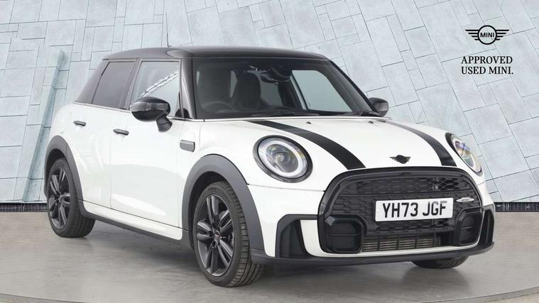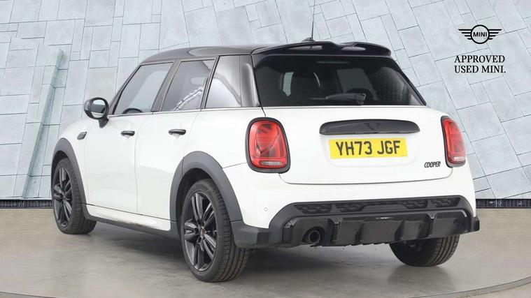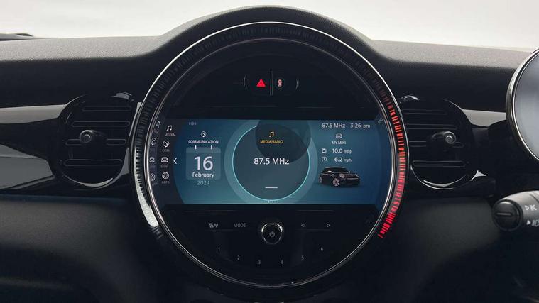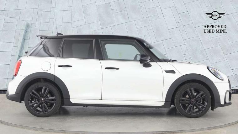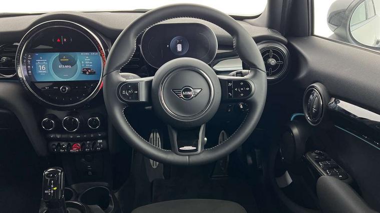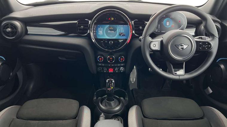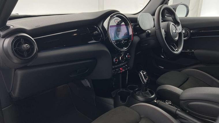 Apple CarPlay, Automatic start/stop function with brake energy recuperation, Compatible mobile phone bluetooth with audio streaming, Electro-mechanical speed dependant steering assistance, Flexible car sharing preparation, MINI Driving Modes - centre toggle switch to control driving setting (sport, mid and green), Mini E-call, MINI TeleServices, On board computer, Rear park distance control, Service interval indicator, Adaptive suspension, Double Vanos system, Fully variable valve control, Gear change indicator display, High precision injection, Performance Control, Steptronic transmission with double clutch, 8.8" touchscreen with LED ring, FM tuner and DAB digital radio, 3rd brake light, Automatic headlight activation switch, Body colour fuel filler cap, Chrome border high gloss black slats radiator grille, Dynamic brake lights, Electric front+rear windows, Exhaust tailpipe on left with chrome finisher, Heated rear window, Heated windscreen washer jets, JCW Aerodynamic kit - Front and rear bumpers with sporty JCW styling and part-painted side sills with MINI John Cooper Works door sill finishers, John Cooper Works rear spoiler, Metal door sill strips with MINI imprint, Model logo Cooper on right of tailgate, Rain sensor window wipers, Rear fog lights, Rear LED lights with union jack design, Rear side wing doors, Rear window wiper, Side scuttle panel with integrated indicator, Sun/heat protection glass, White indicator lenses, 12V Accessory socket in centre console, 3 seat bench in 2nd row, 4 lashing eyes in luggage compartment, 60/40 split folding rear seat, Anthracite headliner including grab handles and clothes hooks, Carbon black colour line - Knee roll and door armrest, Chrome interior highlights, Cupholders, Front and rear isofix with front passenger airbag deactivation, Front and rear velour floor mats, Glove compartment, Height and length steering column adjustment, Interior lighting with 12 different colours across the dashboard, underneath door bezel with illuminated laser-engraved design on central display, JCW Sport seats with integrated headrests, adjustable thigh support and John Cooper Works logo, Leatherette gearshift lever and handbrake gaiters, LED reading lights, vanity mirror lights, front foot well light and spotlight on front seats, Mechanical seat adjustment - forward/back & backrest for front seats and driver seat height adjust, Multifunction steering wheel, Single front passenger seat, Storage compartments in doors, Sunvisors with vanity mirrors, Walknappa leather steering wheel with grey seam and John Cooper Works badge on Piano Black lower steering wheel spoke, Piano black exterior pack - Mini Hatchback Cooper, 3 point seatbelts on all five seats, 6 Airbags - front, side, head and seat belt tensioners, Anti-lock braking system (ABS), Child locks on rear doors, DSC - Dynamic Stability Control, Front and rear disc brakes, Hill start assist, Single tone fanfare horn, Tyre pressure monitoring system, Alarm system with tilt sensor, monitoring doors, bonnet interior and tailgate, Electronic vehicle immobiliser, Start/stop toggle with keyless go, Piano black interior trim, Tool kit,