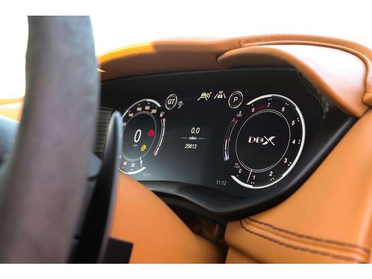 10.25" TFT centre display, 12.3" TFT instrument display, Adaptive cruise control, Apple car play/Android Auto, Aston martin satin chrome designer key, Blind spot monitoring, Bluetooth telephone connectivity, Brake pad wear indicator, Drive modes Terrain, Individual, GT, Sport, Sport + including launch control, eCall emergency call system, Electric power assisted steering (EPAS), Forward collision warning, Front parking aid with visual indicator, Inductive phone charger, Infotainment touchpad and dial, Lane change warning, Lane departure warning system (LDW), Lane keep assist, Outside temperature display, Park assist system, Rear crossing traffic warning, Rear parking aid with visual indicator, Rotary dials, Rotary infotainment system interface, Satellite navigation system, SOS emergency call button, Speed limiter, Standard underbonnet, Stop/start system, Surround camera system with deploying rear camera, Traffic sign recognition, Voice control system, 9 speed automatic transmission, Active centre transfer case, Adaptive triple chamber air suspension, All Wheel Drive (AWD), Battery conditioning connector, Electric active roll control, Electric limited slip rear differential, Electronic adaptive damping system, AM/FM radio, Aston martin premium audio, Bluetooth audio streaming, DAB Digital radio, SD card slot, USB port, 3rd brake light, Acoustic laminated front windows, Active rear brake lights, Approach Illumination, Auto dimming interior rear view mirror, Automatic headlights, Automatic high beam - AHB, Bi LED headlights, Body colour side vent, Carbon fibre rear wing lip spoiler, Electric windows, Fixed panoramic glass sunroof, Heat insulating glass, Heated rear window, Horizontal DRL/turn indicator design with larger air intakes and brake cooling grilles, LED centre high mounted stop light, LED daytime running lights, LED rear fog light, Matte black mesh bonnet vents, Power foldback door mirrors, Rain sensing windscreen wipers, Rear bumper design with integrated quarter panel vents, Rear side wing doors, Rear wiper, Sport exhaust, Standard paint protection film, 12V power sockets, 16 way electric front seats with memory, 3 seat bench in 2nd row, 40:20:40 split folding rear seats, Ambient lighting, Anodised aluminium sill plaques with aston martin wings, Automatic climate control, Black loadspace carpet, Courtesy Light, Embossed - Aston martin wings, Front and rear door pockets, Front centre console storage cover, Front head restraints, Gloss black double layer side sills, Glovebox with electric locking, Heated seats, Isofix/I size rear outer, Load rails in load space, Load tie downs in load space, Lower front console storage, Map pocket on front seat storage, Rear head restraints, Single front passenger seat, Soft close doors, Sports plus seats, Stainless steel sill protector in load space, Twin cupholders in front and rear, Twin front centre armrest, Twin sunvisors with illuminated vanity mirrors, 3x3 point rear seatbelts, Airbags - Driver and front passenger and knee, Anti theft locking wheel bolts, Anti-lock braking system (ABS), Auto vehicle hold function, Autonomous emergency braking, Carbon ceramic disc brakes, Door exit warning, EBD - Electronic brakeforce distribution, Electric parking brake (EPB), Emergency brake assist, ESC (Electronic Stability Control), Front thorax airbags/Side curtain airbags, HDC - Hill descent control, High performance braking system, Hill start assist, Intelligent wet brake control, Rear child proof door locks, Rear thorax airbags, RSC - Roll stability control, Seatbelt pre-tensioners, Seatbelt status indicator, Torque vectoring brake, Traction control, Tyre pressure monitoring system, Warning triangle, Alarm/immobiliser, Keyless entry with start/stop button, Remote central locking, Seat perforaton elegant, Seat quilting elegant,
