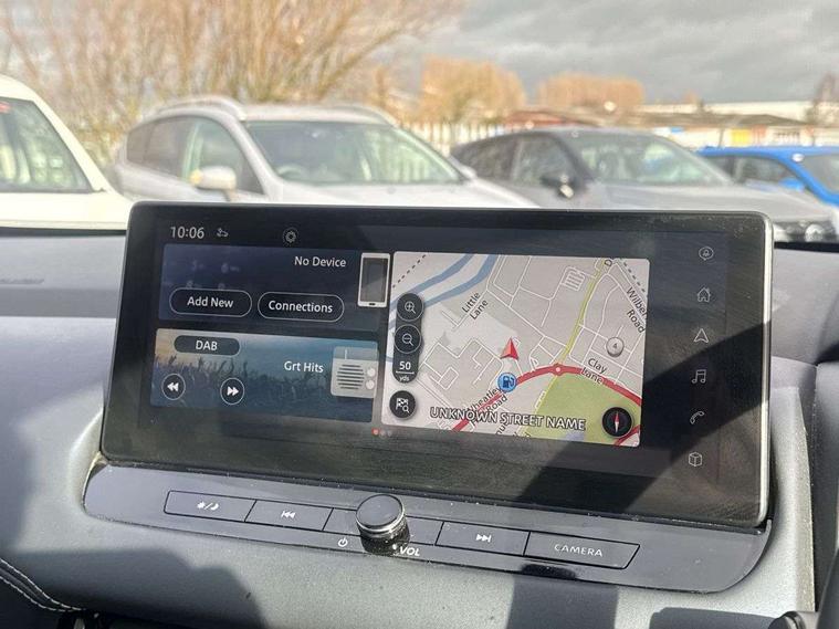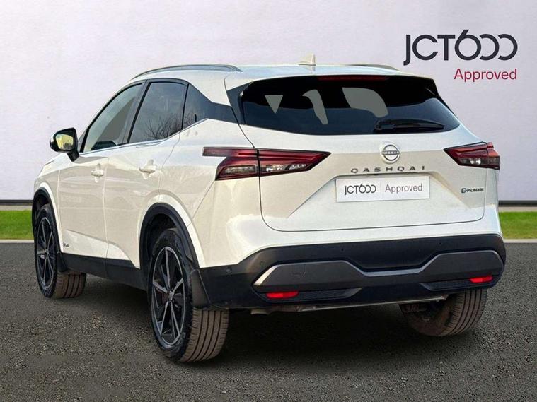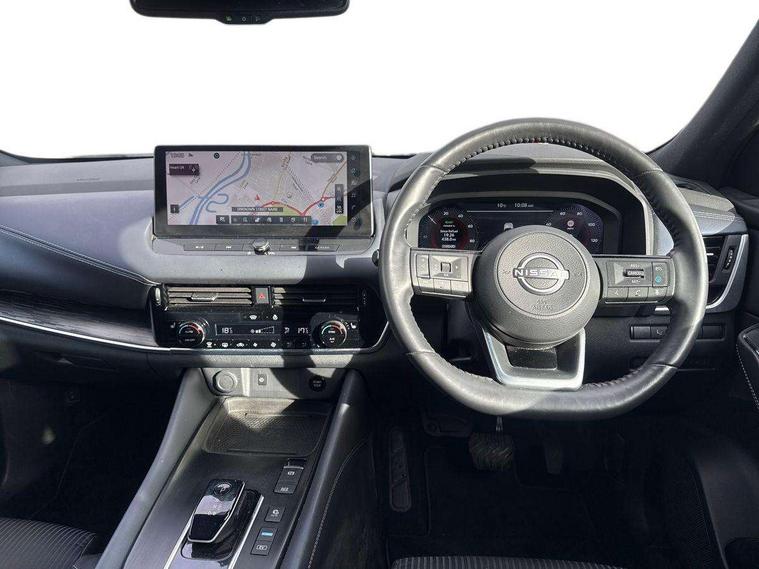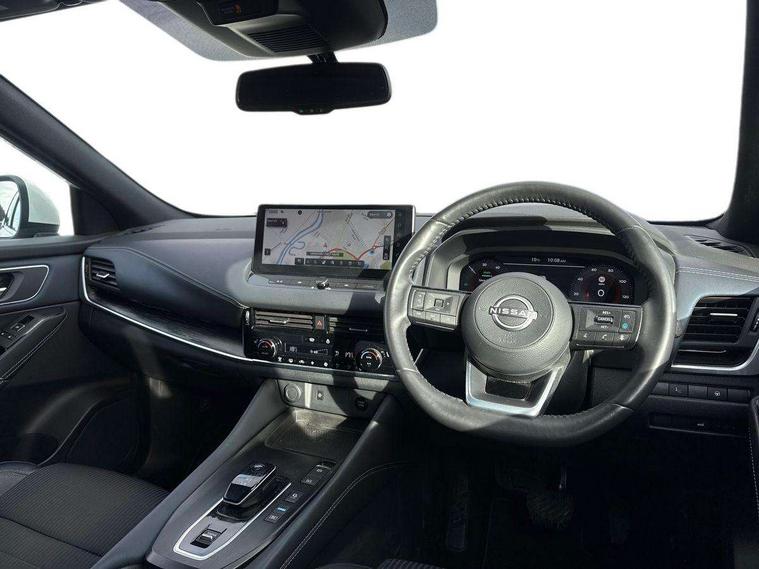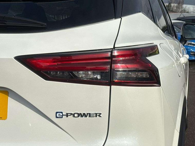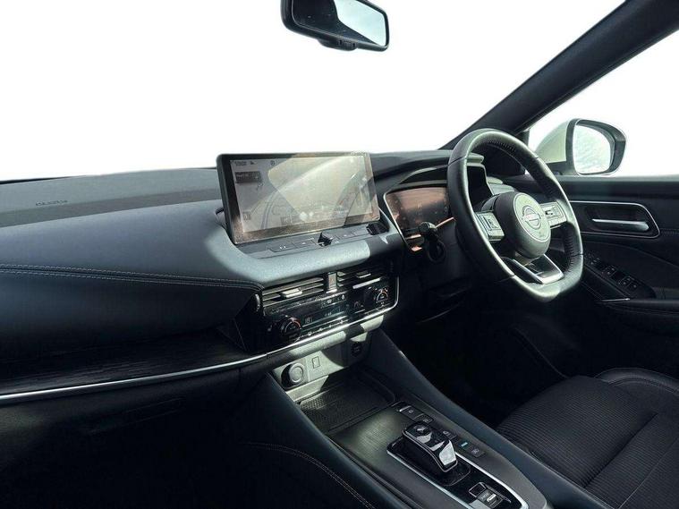 Advanced windscreen head up display, Android auto/Apple CarPlay (Wired), Blind spot warning, Drive modes (sport, normal, eco), Electric speed sensitive power steering, Emergency and breakdown call, Front and rear parking sensors, Full Digital 12.3" TFT Digital Combimeter, Google maps services - search, weather, 3D maps and Google street view, Hands free power tailgate, Idle stop/start system, Intelligent around view monitor, Intelligent Cruise control (ICC), Intelligent driver alert system, Intelligent forward collision warning, Intelligent lane intervention, Lane departure prevention, Lane departure warning system, Lane keep assist, Moving object detection, Nissan connect 12.3 inch touchscreen infotainment system, Nissan connect navigation, ProPILOT with Navi-Link, Push button starter, Rear cross traffic alert, Rear view camera, Remote control services - door locks, lights, horn and car locator, Telematics - notifications and connectivity services, TomTom live traffic services, Traffic sign recognition with legal speed adjustment, Trip computer, Virtual personal assistant and firmware over the air capability, Wireless apple carplay, Wireless charging pad, 6 speakers, AM/FM audio system with DAB, Bluetooth audio streaming, Front USB connections (Type-A and Type-C), Rear USB charging only ports (Type-A and Type-C), Auto dimming rear view mirror, Auto rear wiper when reversing, Automatic hazard signal with emergency stop signal, Body colour mirror caps, Body coloured door handles, Bodyside mouldings, Chrome side window finisher, Door handle with button, e-POWER badging, Electric auto folding door mirrors, Electrically adjustable and heated door mirrors with LED turn indicator, Follow me home headlights, Front and rear LED turning signals, Headlights auto levelling system, Intelligent auto headlights, LED daytime running lights, LED headlights with adaptive driving beam, LED rear lights, One touch front and rear electric windows with remote opening and closing, Partially body coloured bumpers, Privacy glass, Rear bumper with graphite insert, Rear reversing light (bulb lighting), Rear roof spoiler, Rear side wing doors, Rear styling plate, Shark fin antenna, Splash free rain sensing wipers, Super UV and infrared cut glass, Thermaclear heated windscreen, Three blink turn signal, 12v power socket in dashboard and luggage, 2x Rear coat hooks, 3 bench rear seats in 2nd row, 3 rear headrests, 4 folding assist grip, 6 Luggage hooks - 4 on floor, 2 on side, 60/40 split folding rear seat bench, Ambient lighting around centre console, Ambient lighting in front doors, Centre console storage tray, Chrome interior door handles, Cloth/syntech leather monoform upholstery, Dark black/blueish PVC wrapping, Dark headlining, Driver and front passenger sunvisors with illuminated vanity mirrors, Driver seat back pocket, Dual zone automatic climate control with pollen filter, e-POWER shifter, Electrically adjustable driver seat, Electrically adjustable lumbar support for driver, Front and rear door storage, Front centre console and armrest, Front cupholders x 2, Front door with bottle holders, Glovebox with light, Hard trunk cover, Heated front seats, Heated steering wheel, Height adjustable driver's seat, Height adjustable front headrests, Height adjustable passenger seat, Leather steering wheel, Luggage board system, Luggage space lighting, Manual lumbar support on passenger seat, Manually adjustable passenger (slide recline + lifter), Multifunction steering wheel, Passenger seat back pocket, Rear armrest with 2 cupholders, Rear door bottle holders, Single front passenger seat, Soft PVC kneepad, Steering wheel switches, Tilt/telescopic adjustable steering wheel, Two rear isofix child seat anchorage points with top tether, Welcome light and doors with console tray ambient lighting, Glass roof pack with roof rails - Qashqai, 3x3 point rear seatbelt pretensioners + load limiters, ABS with EBD and brake assist, Active brake limited slip, Auto hold function, Child locks on rear doors, Curtain and front side, far side airbags, Driver and passenger airbags, Driver, passenger and 2nd row rear seat belt reminder, Electronic parking brake, Front seatbelt pretensioners + load limiters, Height adjustable front seatbelts, Hill start assist, Intelligent blind spot intervention, Intelligent front emergency braking with pedestrian, cyclist recognition and junction assist, Intelligent rear automatic braking, Tyre pressure monitoring system, Vehicle dynamic control, Capless fuel filler, Engine immobiliser, Intelligent Key, Remote central door locking with deadlocking, Thatcham Cat.1 alarm, Interior instrumental panel C finisher, 19" Diamond cut alloy wheels, Tyre puncture repair kit,