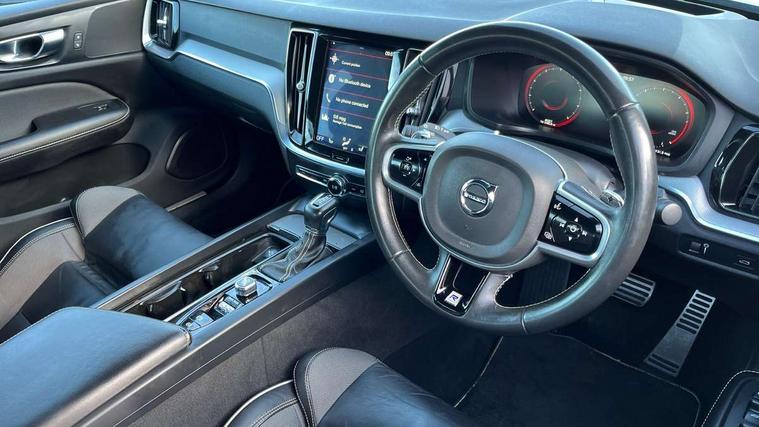 12.3" Active TFT crystal driver's information display, 9" centre console touch screen, Adjustable steering wheel force, Bluetooth handsfree system, Drive mode settings, Driver alert control with lane keeping aid, Hands free boot opening, Oncoming Lane Mitigation, Sensus navigation with European mapping and traffic information, Service interval indicator, Speed limiter, Speed sensitive steering, Trip computer, Voice activated control for key functions, Volvo on call, 8 speed automatic transmission with start/stop + manual change functions, Auxiliary input socket, DAB Radio (Digital Audio Broadcasting), Active high beam, Adaptive brake lights with high level LED brake lights, Auto dimming interior mirror, Automatic active bending LED headlights with adaptive shadow technology incorporating day running lights, Automatic headlight levelling system, Body colour bumpers, Colour coordinated auto folding and heated power door mirrors, Dual integrated exhaust pipes with high gloss black surround, Front and rear power windows, Front LED fog lights with cornering function, Headlight cleaning system, High gloss black door mirrors and window surround, High gloss black mesh front grille with silk metal surround, Home safe and approach lighting, Puddle lights, R Design tread plates, Rain sensor with automatic windscreen wiper activation, Rear diffuser, Roof antenna, Roof spoiler, Visible VIN plate, 2 zone electronic climate control with Clean zone air quality system + pollen filter, A-pillar parking ticket holder, B Pillar ventilation, Black headlining, Centre console cupholders, Contour sports seats with nappa leather/textile upholstery, Driver and front passenger seat cushion extension, Fixed rear seat and headrests, Front and rear footwell and side step illumination, Front and rear reading lights and centre armrest Storage Illumination, Front head restraints, Front/rear door pockets and front cupholder illumination, Glovebox compartment with illumination, Heated front seats, Height/reach adjustable steering column, High gloss black steering wheel remote infotainment controls, Illuminated vanity mirrors + ticket holder, ISOFIX attachment on outer rear seats, Leather sports steering wheel with gearshift paddles, Lockable glovebox, Luggage compartment illumination, Luggage compartment net pocket, Multicolour theatre lighting, Power driver seat with multi directional lumbar support and memory for seat and exterior mirrors, Rear armrest with storage + cupholders, Rear head restraints, Sports floor mats, Sports leather gear knob, Sports pedals, Tailgate illumination and ambient door lighting, Underfloor cargo storage, 5 x 3 point seatbelts, City safety with steering support with Pedestrian + cyclist + large animal detection + front collision warning with full auto brake, Dual stage driver/passenger airbags, First aid kit, Front passenger airbag cut off switch, Front seats SIPS airbags, Hill start assist, IC (Inflatable Curtains) - Full Length, Mechanical child locks on rear doors, Power parking brake with auto hold function, Road sign information display, Run off Road Mitigation, Run off Road Protection, Seatbelt reminder and pretensioners for all seats, SIPS (Side Impact Protection System), Slippery road and hazard light alert, Stability and Traction Control with Spin control, Engine Drag Control and Corner Traction Control, Tyre pressure monitoring system, Vehicle deceleration control with Anti-lock Brake System, Electronic Brake Distribution and Emergency Brake Assist, Warning triangle, WHIPS whiplash protection system - front, Anti-theft alarm including immobiliser/volume sensor + level sensor, Keyless drive (includes keyless entry and keyless start) with remote tag, Locking wheel nuts, Nappa leather key integrated remote control central locking including fuel flap with deadlocking system and auto open/close power windows, Private locking for bootlid, Metal mesh inlays,
