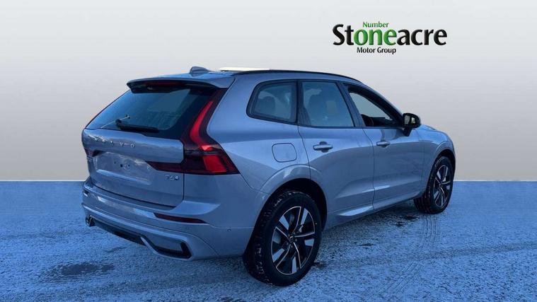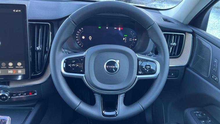 11.2" centre console touch screen, 12.3" Progressive Driver Display, 360 degree surround view parking camera with side proximity sensors, Adaptive cruise control, Adjustable steering wheel force, Android auto (Wired), Apple carplay (wired), Bluetooth handsfree system, Drive mode settings, Driver alert control with lane keeping aid, Driver understanding system, Emergency services call system, Front and rear park assist, Google Automotive Services, Intelligent speed assistance, Oncoming Lane Mitigation, PAS, Power operated tailgate with handsfree opening and closing, Service interval indicator, Speed limiter, Speed sensitive steering, Trip computer, Volvo cars services with app, Volvo on call with App, Wireless/Inductive Mobile Phone Charging, 2 phase on board charger 6.4kW (home charging limited to 3.7kW), 6m 3 phase 16amp Type 2 / mode 3 charge cable, 8 speed automatic transmission with start/stop + manual change functions, Electric rear axle drive, Recharging port located in nearside front wing, DAB Digital radio, Low speed exterior sound speaker, Premium Sound by Harman Kardon, dirac unison, dolby pro logic II surround sound, 13 speakers/600W output and fresh air subwoofer, Steering wheel remote infotainment controls, Adaptive brake lights with high level LED brake lights, Auto dimming interior + exterior mirrors, Automatic headlight levelling system, Automatic LED Headlights + Active high beam incorporating daytime running lights, Electric adjustable/heated/auto power folding door mirrors, Electric front+rear windows, Front aluminium tread plates, Heated front windscreen, High gloss black door mirrors and window surround, High gloss black front and rear bumper decoratives, High gloss black mesh front grille with high gloss black surround, Home safe and approach lighting, Integrated roof rails in high gloss black, Puddle lights, Rain sensor with automatic windscreen wiper activation, Rear side wing doors, Rear wiper, Roof antenna, Roof spoiler, Tinted windscreen, Visible VIN plate, 12V socket in front tunnel console and luggage compartment, 2 zone electronic climate control with Clean zone air quality system and pollen filter, 3 seat bench in 2nd row, 3 Spoke tailored steering wheel with chrome trim, A-pillar parking ticket holder, Air purifier particulate matter (PM) 2.5 filter, B Pillar ventilation, Bright metal luggage scuff plate, Centre console cupholders and storage, Charcoal floor mats, Front and rear courtesy lights, Front and rear door pocket illumination, Front cupholder illumination, Front footwell illumination, Front reading lights, Front seat cushion extensions, Glovebox compartment with illumination, Head restraints for all seats, Heated front seats, Heated steering wheel, Height/reach adjustable steering column, Illuminated luggage compartment, Illuminated vanity mirrors + ticket holder, Inner door release handle illumination, ISOFIX attachment on outer rear seats, Load cover, Load protection net, Multi directional lumbar support, Power driver seat with memory + exterior mirrors memory, Power height adjustable passenger seat, Power passenger seat with memory, Quilted nordico leather upholstery, Rear armrest with cupholder, Rear footwell and front and rear side step illumination, Rear reading lights, Rear seat concealed storage, Single front passenger seat, Tailgate illumination and ambient door lighting, Underfloor stowage compartment, Versatile split folding rear seat - 60/40, Driver assist pack without Adaptive cruise control - XC60, 5 three point seatbelts, City safety with steering support with Pedestrian + cyclist + front collision warning with full auto brake and rear auto brake, Drivers knee airbag, Dual stage driver/passenger airbags, Electronic parking brake with auto hold, First aid kit, Front seats SIPS airbags, Hill descent control - Off-road drive mode, Hill start assist, IC (Inflatable Curtains) - Full Length, Passenger airbag cut-off device, Power child locks on rear doors, Road sign information display, Run off Road Mitigation, Run off Road Protection, Seatbelt reminder and pretensioners, SIPS (Side Impact Protection System), Slippery road and hazard light alert, Stability and Traction Control with Spin control, Engine Drag Control and Corner Traction Control, Tyre pressure monitoring system, Vehicle deceleration control with Anti-lock Brake System, Electronic Brake Distribution and Emergency Brake Assist, Warning triangle, WHIPS whiplash protection system - front, Anti-theft alarm including immobiliser/volume sensor + level sensor, Key integrated remote control central locking + fuel flap with deadlocking system and auto open/close power windows, Keyless Drive (includes Keyless Entry and Keyless Start), Locking wheel nuts, Private locking for tailgate, Summer tyres, Tyre sealant kit + 12v compressor,