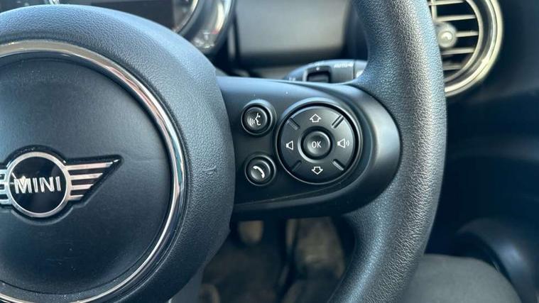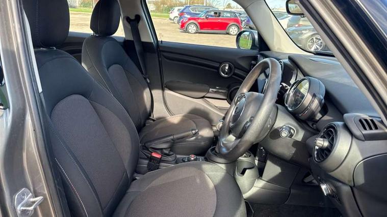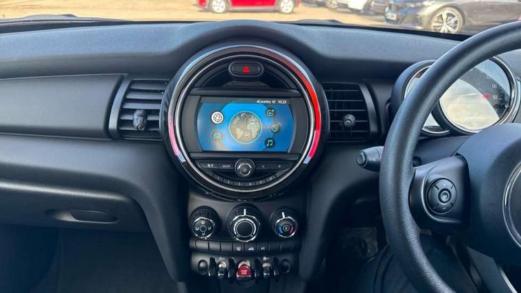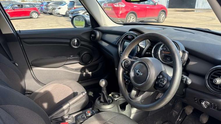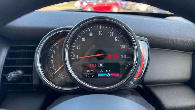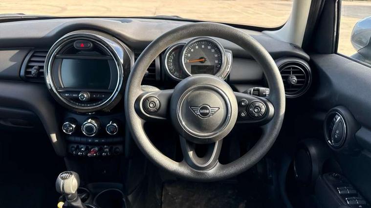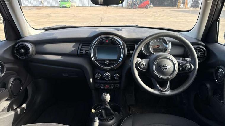 Automatic start/stop function with brake energy recuperation, Compatible mobile phone bluetooth with audio streaming, Electro-mechanical speed dependant steering assistance, Instrument cluster, Mini E-call, MINI TeleServices, On board computer, Service interval indicator, Double Vanos system, Fully variable valve control, High precision injection, FM tuner and DAB digital radio, Automatic headlight activation switch, Body colour fuel filler cap, Body colour roof and mirror caps, Chrome border high gloss black slats radiator grille, Dynamic brake lights, Electric front+rear windows, Exhaust tailpipe, Heated rear window, Heated windscreen washer jets, Metal door sill strips with MINI imprint, Rain sensor window wipers, Rear fog lights, Rear LED lights with union jack design, Rear window wiper, Side scuttle panel with integrated indicator, Sun/heat protection glass, White indicator lenses, 12V Accessory socket in centre console, 4 lashing eyes in luggage compartment, 60/40 split folding rear seat, Chrome interior highlights, Colour line - Carbon black, Cupholders, Front and rear head restraints, Front and rear isofix with front passenger airbag deactivation, Glove compartment, Height and length steering column adjustment, Interior lighting with 12 basic colours selectable via toggle switch in roof, Leather gearshift lever and handbrake gaiters, LED reading lights, vanity mirror lights, front foot well light and spotlight on front seats, Mechanical seat adjustment, driver seat height adjust, forward/back and front seats backrest, Mini logo projection on floor from drivers exterior mirror, Multifunction steering wheel, Satellite grey headlining, Storage compartments in doors, Sunvisors with vanity mirrors, 3 point seatbelts on all five seats, 6 Airbags - front, side, head and seat belt tensioners, Anti-lock braking system (ABS), DSC - Dynamic Stability Control, Front and rear disc brakes, Hill start assist, Single tone fanfare horn, Tyre pressure monitoring system, Alarm system with tilt sensor, monitoring doors, bonnet interior and tailgate, Electronic vehicle immobiliser, Start/stop toggle with keyless go, Tool kit,