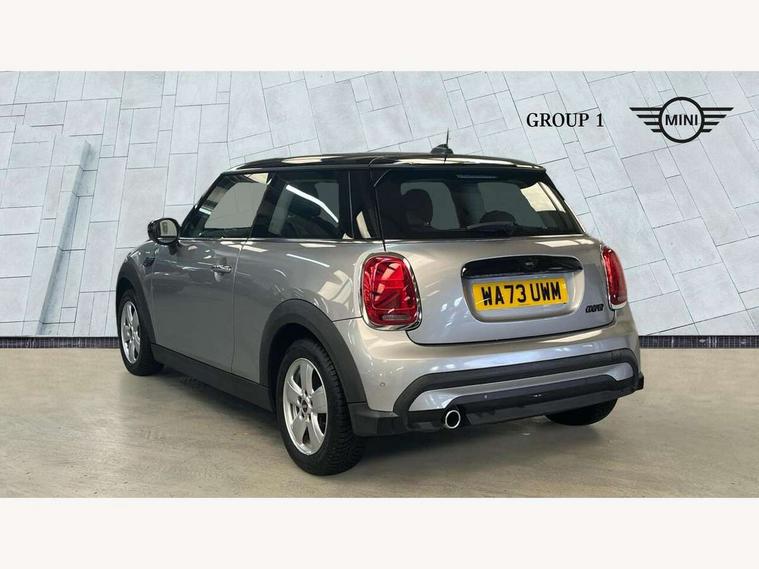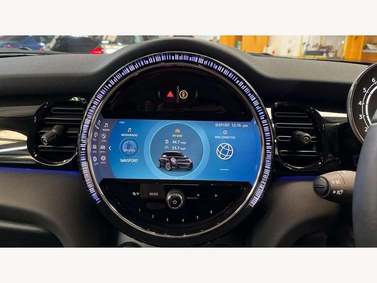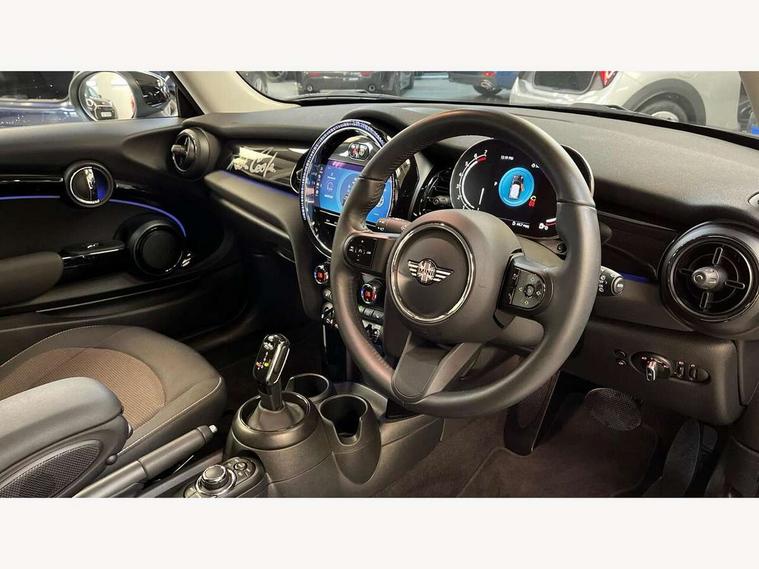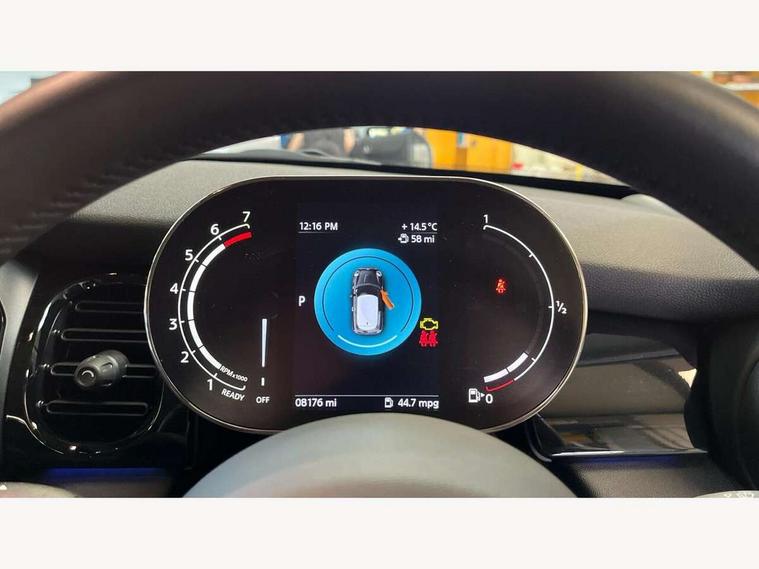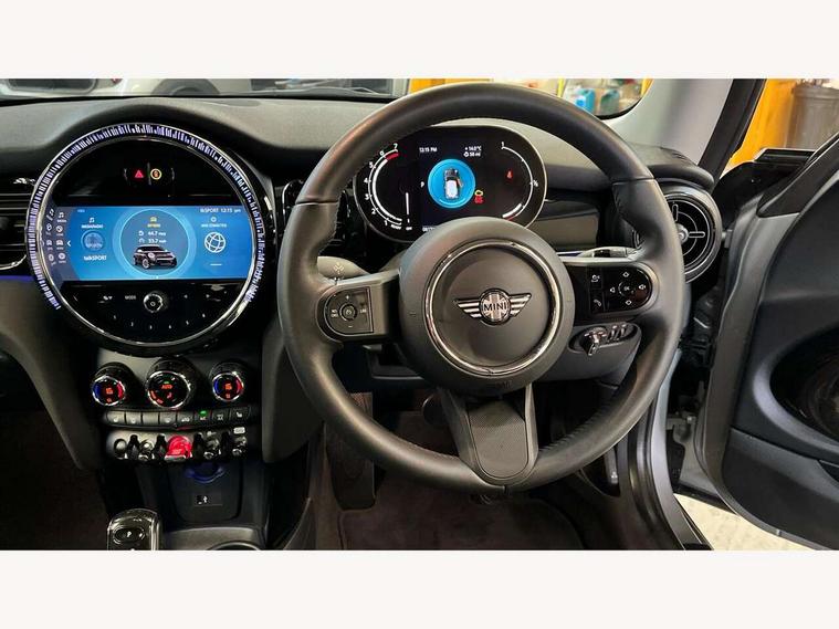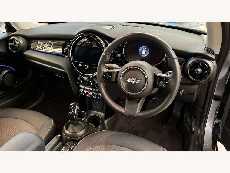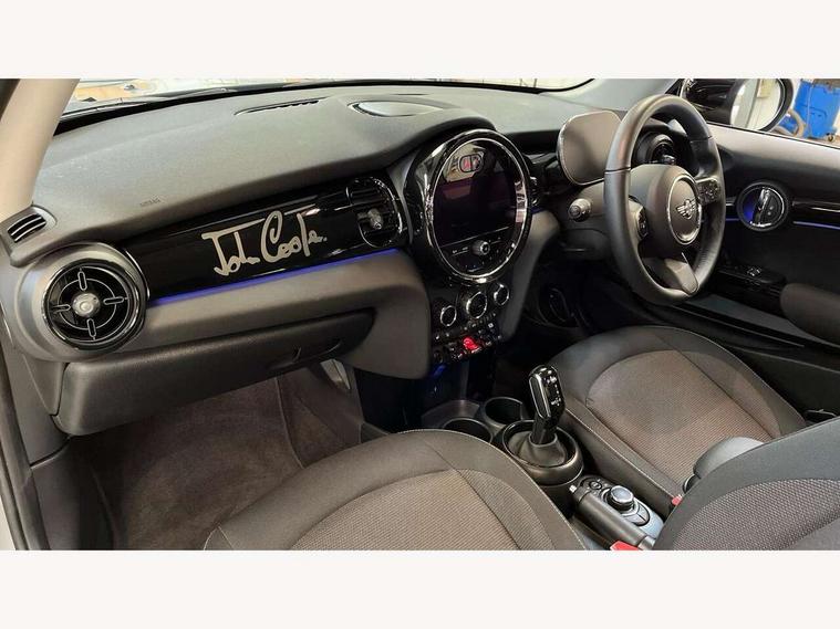 Apple CarPlay, Automatic start/stop function with brake energy recuperation, Compatible mobile phone bluetooth with audio streaming, Cruise control with brake assist, Electro-mechanical speed dependant steering assistance, Flexible car sharing preparation, Instrument cluster, Mini E-call, MINI TeleServices, On board computer, Service interval indicator, Double Vanos system, Fully variable valve control, High precision injection, Performance Control, Steptronic transmission with double clutch, 8.8" touchscreen with LED ring, FM tuner and DAB digital radio, 3rd brake light, Automatic headlight activation switch, Body colour fuel filler cap, Chrome border high gloss black slats radiator grille, Dynamic brake lights, Electric front windows, Exhaust tailpipe on left with chrome finisher, Heated rear window, Heated windscreen washer jets, LED headlight with closed ring and daytime driving lights, Metal door sill strips with MINI imprint, Model logo Cooper on right of tailgate, Rain sensor window wipers, Rear fog lights, Rear LED lights with union jack design, Rear window wiper, Side scuttle panel with integrated indicator, Sun/heat protection glass, White indicator lenses, 12V Accessory socket in centre console, 2 seat bench in 2nd row, 4 lashing eyes in luggage compartment, 60/40 split folding rear seat, Ambient lighting, Carbon black colour line - Knee roll and door armrest, Chrome interior highlights, Cupholders, Front and rear head restraints, Front and rear isofix with front passenger airbag deactivation, Front floor mats in velour, Glove compartment, Height and length steering column adjustment, Interior lighting with 12 different colours across the dashboard, underneath door bezel with illuminated laser-engraved design on central display, Leatherette gearshift lever and handbrake gaiters, LED reading lights, vanity mirror lights, front foot well light and spotlight on front seats, Manual air conditioning, Mechanical seat adjustment - forward/back & backrest for front seats and driver seat height adjust, Multifunction steering wheel, Passenger seat height adjuster, Satellite grey headlining including grab handles and clothes hooks, Single front passenger seat, Sport leather steering wheel with speed limiter and audio/communication controls, Storage compartments in doors, Sunvisors with vanity mirrors, 3 point seatbelts on all four seats, 6 Airbags - front, side, head and seat belt tensioners, Anti-lock braking system (ABS), DSC - Dynamic Stability Control, Front and rear disc brakes, Single tone fanfare horn, Tyre pressure monitoring system, Alarm system with tilt sensor, monitoring doors, bonnet interior and tailgate, Electronic vehicle immobiliser, Start/stop toggle with keyless go, Piano black interior trim, Tool kit, Tyre repair kit,