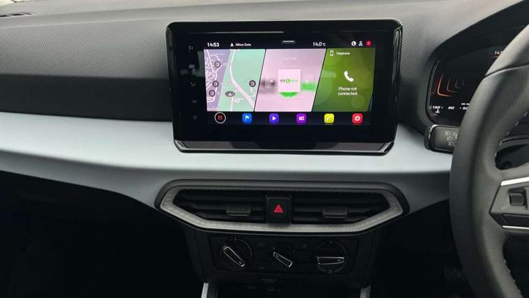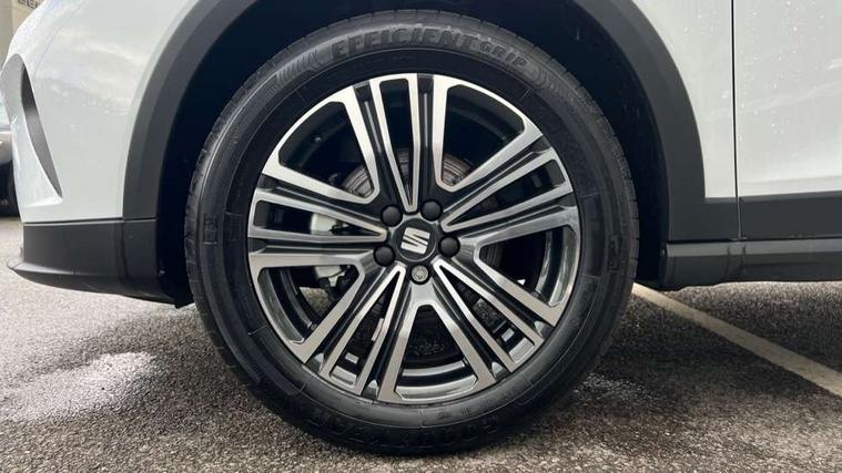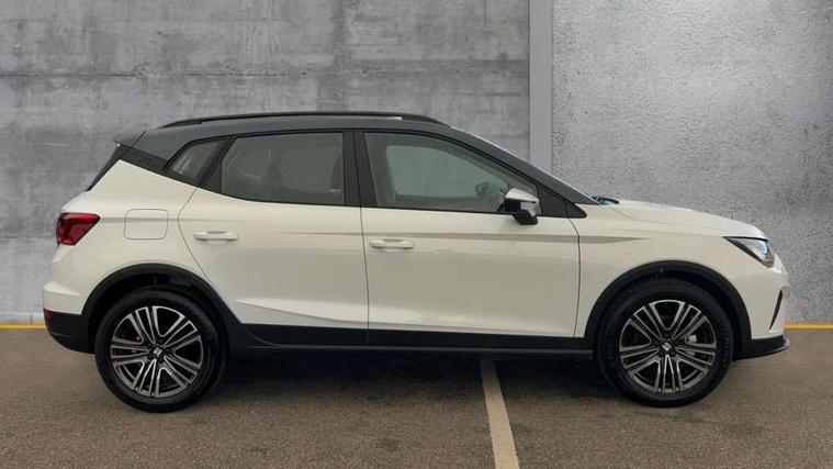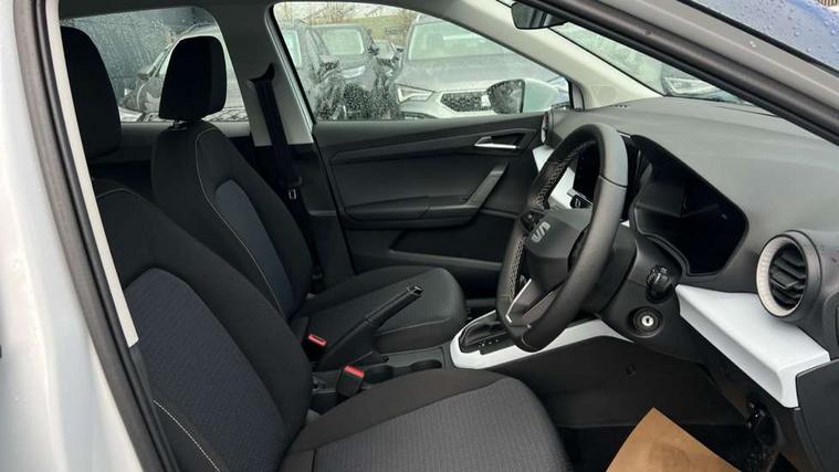 'Lights On' Reminder warning buzzer, 8" Digital cockpit, Cruise control and speed limiter, Digital clock, E-call, Electric speed sensitive power steering, Full link smartphone integration with mirror link, wireless apple carplay, Google android auto + USB Type C cable for apple and android devices, Lane keeping system, Low fuel warning light, Outside temperature display, RPM counter, Trip computer, Wireless phone charger, 9.2" colour touchscreen with navigation system, voice control and USB port (type c), Bluetooth interface for hands free and audio streaming, DAB digital radio and AM/FM radio, Steering wheel mounted audio controls, Anti theft roof antenna, Automatic activation of hazard warning lights, Black roof rails and window surrounds, Body coloured bumpers, Body coloured door handle inserts, Body coloured door mirrors, Dimming rear view mirror, ECO LED automatic headlights and LED daytime running lights, Electric adjustable door mirrors, Electric front/rear windows, Hidden exhaust pipe, LED rear tail lights and licence plate lights, Licence plate lights, Protective side mouldings, Rain sensing wipers, Rear fog lights, Rear side wing doors, Rear spoiler, Rear window wash/wipe, Third brake light, Visible VIN plate, 2 cupholders, 3 seat bench in 2nd row, 60/40 split folding rear seat, Air conditioning, Cloth upholstery, Double boot floor, Driver sunvisor with covered mirror + card holder, Dust/pollen filter, Gear shift indicator, Grey interior air vents, Grey interior roof, Height adjustable front seats, Height/reach adjustable steering column, Illuminated boot, Instrument lighting with brightness control, ISOFIX points in outer rear seats with top tether anchorage points, Leather steering wheel/gear knob/handbrake, Passenger sunvisor with vanity mirror, Potentiometer, Single front passenger seat, Two front and three rear height adjustable headrests, Interior chrome pack - Arona, Safe and driving pack (S) - Arona, 3 point seatbelts on all rear seats, ABS, Active front headrests, Child locks on rear doors, Driver and front passenger airbags with front passenger airbag de activation, front side and curtain airbags, Emergency Brake Assist (EBA) and front assist, Forward collision warning and autonomous emergency braking, Front and rear seatbelt reminder, Hill hold control, Multi-Collision braking, Tiredness recognition system, Traction control, Tyre pressure monitoring system, Deadlock, Electronic engine immobiliser, Locking wheel bolts, Remote central locking, Titan black dashboard, 17" Dynamic machined alloy wheels,