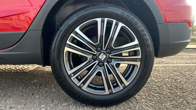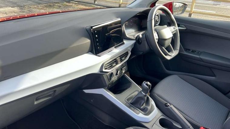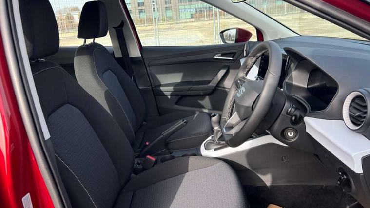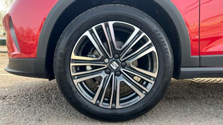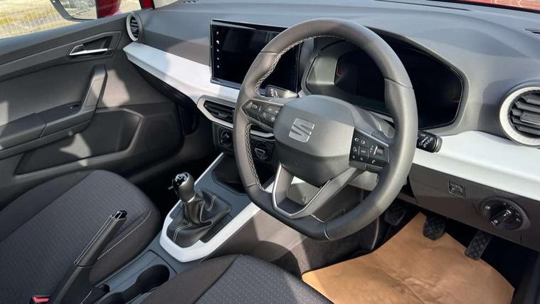 'Lights On' Reminder warning buzzer, 8" Digital cockpit, Cruise control and speed limiter, Digital clock, E-call, Electric speed sensitive power steering, Full link smartphone integration with mirror link, wireless apple carplay, Google android auto + USB Type C cable for apple and android devices, Lane keeping system, Low fuel warning light, Outside temperature display, RPM counter, Trip computer, Wireless phone charger, 9.2" colour touchscreen with navigation system, voice control and USB port (type c), Bluetooth interface for hands free and audio streaming, DAB digital radio and AM/FM radio, Steering wheel mounted audio controls, Anti theft roof antenna, Automatic activation of hazard warning lights, Black roof rails and window surrounds, Body coloured bumpers, Body coloured door handle inserts, Body coloured door mirrors, Dimming rear view mirror, ECO LED automatic headlights and LED daytime running lights, Electric adjustable door mirrors, Electric front/rear windows, Hidden exhaust pipe, LED rear tail lights and licence plate lights, Licence plate lights, Protective side mouldings, Rain sensing wipers, Rear fog lights, Rear side wing doors, Rear spoiler, Rear window wash/wipe, Third brake light, Visible VIN plate, 2 cupholders, 3 seat bench in 2nd row, 60/40 split folding rear seat, Air conditioning, Cloth upholstery, Double boot floor, Driver sunvisor with covered mirror + card holder, Dust/pollen filter, Gear shift indicator, Grey interior air vents, Grey interior roof, Height adjustable front seats, Height/reach adjustable steering column, Illuminated boot, Instrument lighting with brightness control, ISOFIX points in outer rear seats with top tether anchorage points, Leather steering wheel/gear knob/handbrake, Passenger sunvisor with vanity mirror, Potentiometer, Single front passenger seat, Two front and three rear height adjustable headrests, Interior chrome pack - Arona, Safe and driving pack (S) - Arona, 3 point seatbelts on all rear seats, ABS, Active front headrests, Child locks on rear doors, Driver and front passenger airbags with front passenger airbag de activation, front side and curtain airbags, Emergency Brake Assist (EBA) and front assist, Forward collision warning and autonomous emergency braking, Front and rear seatbelt reminder, Hill hold control, Multi-Collision braking, Tiredness recognition system, Traction control, Tyre pressure monitoring system, Deadlock, Electronic engine immobiliser, Locking wheel bolts, Remote central locking, Titan black dashboard, 17" Dynamic machined alloy wheels,