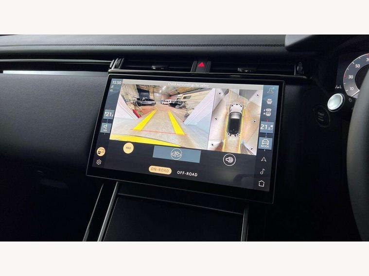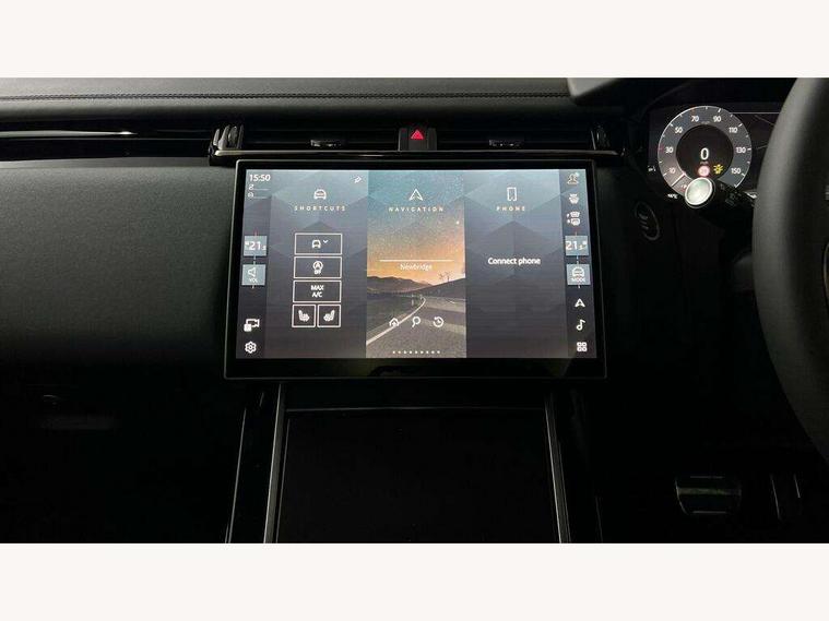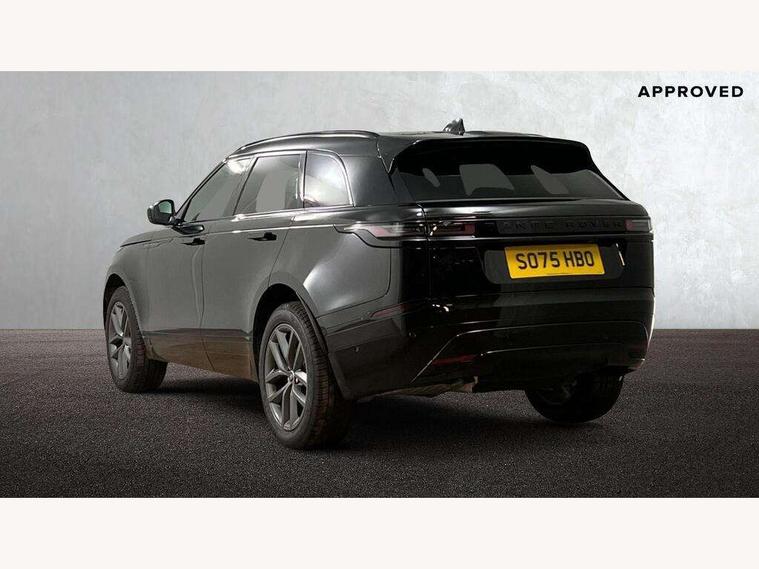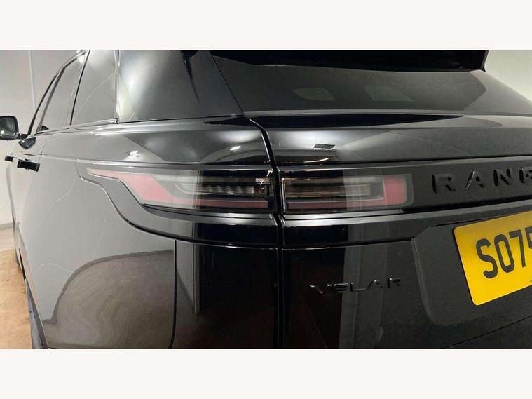 3D surround camera includes forward traffic detection and vehicle guidance, Android Auto, Apple CarPlay, Blind spot assist, Bluetooth connectivity, Brake pad wear indicator warning light, Driver condition monitor, eCall emergency call system, Front and rear parking aid, InControl remote, Land Rover InControl apps, Lane keep assist, Pivi pro with connected navigation, Rear traffic monitor, Service indicator, Speed proportional electronic power assisted steering (EPAS), Traffic sign recognition with adaptive speed limiter, Trip computer, Voice control system, Wade Sensing, Wireless device charging, 8 speed automatic transmission, All terrain progress control, Coil suspension system, Open differential with torque vectoring by braking, Single speed transfer box, DAB radio, Steering wheel mounted controls, 3rd brake light, Acoustic laminated windscreen, Auto dimming interior rear view mirror, Auto high beam assist, Automatic headlamp levelling, Automatic headlights, Black roof rails, Body coloured bumpers, Boot protection plate, Electric windows with one touch open/close and anti trap, Flush deployable exterior door handles, Follow me home headlights, Heated rear window with timer, Heated washer jets, Heated windscreen, LED headlights with signature DRL, Metal front tread plates, Metal load space scuff plates, Power fold, auto-dimming, heated door mirrors with memory and approach lights, Rain sensor windscreen wipers, Rear animated directional indicators, Rear fog lights, Rear side wing doors, Rear wash/wipe, Tailgate/boot lid spoiler, Trailer stability assist, Velar badge, 14 way electrically adjustable front seats with driver's memory function, 3 seat bench in 2nd row, Ambient lighting, Bright metal pedals, Carpet mats, Driver/passenger sunvisors with illuminated vanity mirrors, Ebony morzine headlining, Electrically adjustable steering column, Heated steering wheel, Isofix system on outer rear seats, Loadspace cover, Overhead lighting console, Overhead stowage for sunglasses, Passive front headrests, Rear air vents, Rear centre headrest, Single front passenger seat, Twin front cupholders, Twin sliding front centre armrest, Online pack with data plan - Velar, Power socket pack 2 - Velar, 355mm Front and 325mm Rear brakes, 3x3 point rear seatbelts, Anti-lock braking system (ABS), Cornering brake control, Curtain airbags, Customer configurable autolock, Door side intrusion beams, Driver airbag, DSC - Dynamic Stability Control, Electronic brake force distribution, Electronic parking brake, Electronic traction control, Emergency braking, Front and rear seatbelt reminder, Hill descent control, Hill launch assist, Low traction launch, Passenger airbag, Power operated child locks, Rear airbags, Roll stability control, Side airbags, Tyre pressure monitoring system (TPMS), Global lock and unlock switch on driver door, Immobiliser, Intrusion sensor, Keyless entry, Lock only switch on front passenger door, Locking wheel nuts, Perimetric alarm, Remote central locking, All season tyres,