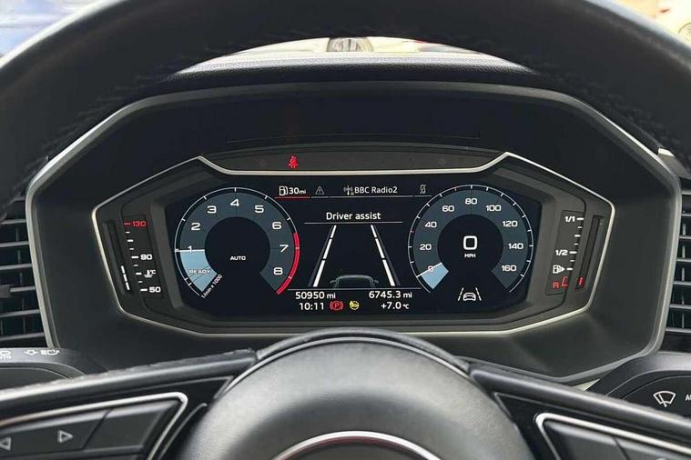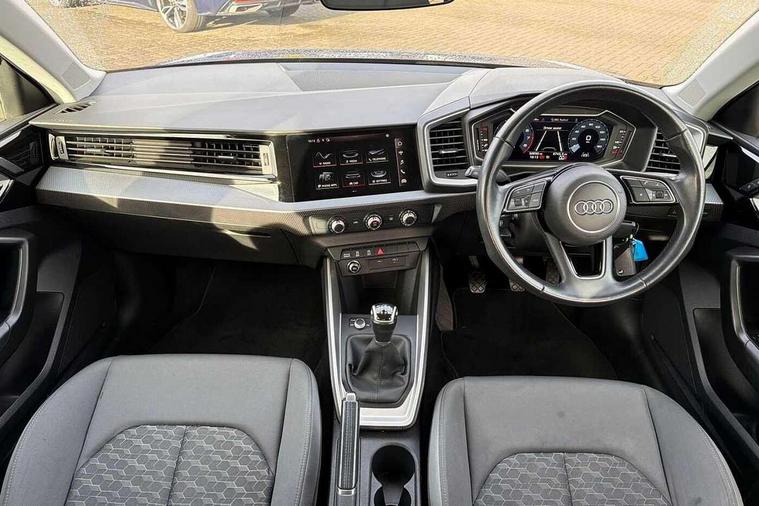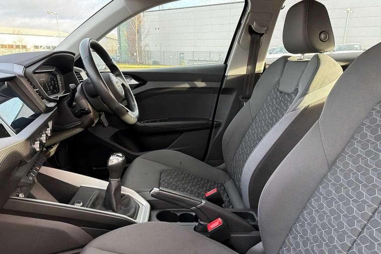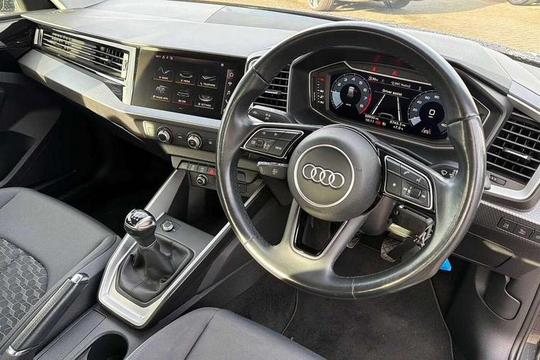 10.25" Digital instrument cluster display classis style instrument dials + speed, odometer, time, outside temperature, telephone menu + fuel level warning, Audi connect safety emergency and service including E-call, Audi drive select - power steering assistance + engine, Audi smartphone interface with connect compatible smartphone via USB directly MMI display + Nav, music, third party apps controlled via MMI controller, Automatic start/stop system, Bluetooth interface, Cruise control, Driver's information system, Electromechanical power steering, Emergency services call system, Lane departure warning system, Service interval indicator, Speed limiter, Voice control system, Washer fluid level indicator, Dynamic suspension, 1 x SDXC card reader, 2 x USB type C connection points, DAB Digital radio, MMI radio plus with 8.8" colour MMI display screen and MMI touch, Auto dimming rear view mirror, Body coloured bumpers, Body coloured door mirrors, Electric front and rear windows, Electrically adjustable, heated, folding door mirrors with integrated LED side indicator, Front side air inlets in grained matt black and C frame in titanium black, Heat insulating glass windscreen and side windows, Heated rear windscreen, High level LED brake light, LED headlights with LED rear lights + dynamic rear indicators + headlight adjustment and high beam, turning light + LED daytime running lights, Radiator grille and rear diffuser in matt titanium black, Radiator protective grille frame in matt aluminium silver, Rain and light sensors, Rear fog lights, Rear side wing doors, Rear wing door, Rear wiper, Side front spoiler lips in grained matt black, 12V socket in centre console with two cup holders, 3 rear seats with headrests, 3 seat bench in 2nd row, 40:60 Split folding rear seat or folded fully, Door sill trims with aluminium inlay, Driver and passenger seat with manual height adjust with forward and backwards adjustment, Front head restraints, Front passenger seat, Front/rear floor mats, Height and reach adjustable steering wheel, ISOFIX child seat mounting for front passenger and outer rear seats including top tether attachment point of outer rear seats, Leather gear knob with aluminium trim, Leatherette handbrake grip, Luggage compartment light with front and rear reading lights, Manually adjustable lumbar support in front seats, Novum cloth upholstery with front sport seats, Titanium grey cloth headlining, Luggage compartment pack - A1, 3x3 point rear seatbelts, Audi pre-sense front with pedestrain and cyclist recognition, Brake assist function, Driver and front passenger airbag with front side and head airbags, Electronic Stability Control including ABS, EBD, ASR and EDL, Front passenger airbag deactivation switch, Hill hold assist, Manual rear child locks, Seatbelt height adjustment for front seats, Seatbelt monitoring, Tyre pressure warning light, Warning triangle and first aid kit, Anti theft alarm, Anti theft wheel bolts and loose wheel warning, Immobiliser, Remote central locking with 2 foldaway keys, Aluminium trim for control switches, air vents and digital instrument cluster, Silver grey accent areas including air vents, door handle recesses and centre console in diamond paint finish, Slate grey inlays polygon structure in fine paint finish,