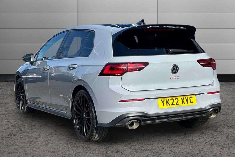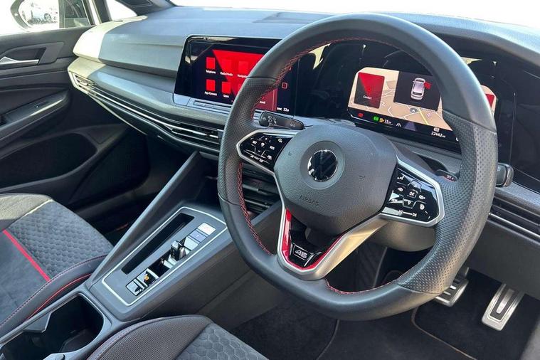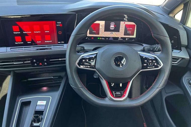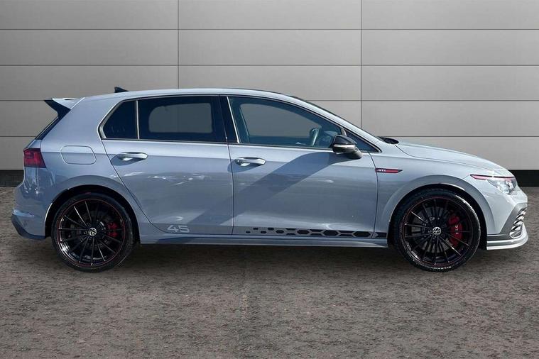 Adaptive cruise control (ACC) with speed limiter and front assist (reacting to vehicles pedestrians and cyclists), Car2X communication, Digital cockpit pro - 10.25" high resolution TFT dash display screen with customizable menus and information, Driver alert system, Driver profile selection, Dynamic road sign display, eCall - Emergency call service for SOS calls to emergency response, Lane assist, Lane change assistant, Mobile phone interface with wireless inductive charging function, Progressive steering, Speedo, rev counter, electronic odometer, trip, service interval display, exterior temperature and fuel gauge, Start/Stop function, Travel assist with emergency side assist with electrically foldable door mirrors, Warning buzzer and light for front seatbelts unfastened, Wireless app connect, Front differential lock, Petrol Particulate Filter, XDS electronic differential lock for improved traction and handling, Premium USB cable in choice of either Apple or Android smartphone compatibility, '45' lettering on the side sill panel and on the boot lid, Advanced high beam control dynamic light assist for LED matrix headlamps, Akrapovic titanium sport exhaust system, Ambient lighting, exterior illuminated styling elements at the sides, Auto dimming rear view mirror, Automatic headlamp activation with Coming home and Leaving home feature, Black painted roof, upper shell of the spoiler and door mirror covers, Body colour bumpers, Body colour door handles, Front and rear electric windows, GTI Clubsport styled bumpers, Heat insulating glass windscreen, Heated rear windscreen, High level 3rd brake light, Highway light, Illuminated front grille, IQ.Light - LED Matrix headlights, dynamic headlight control with advanced high beam control matrix dipped main beam + LED DRL + 22 LED lights, LED front fog lights with 5 honeycomb design, LED License plate illumination, LED rear combination lamp inlcuding dynamic turn signal, Performance rear spoiler, Rain sensor, Rear fog light on one side and reversing lights on both sides, Rear tinted glass 65% light absorbing from B pillar backwards, Rear windscreen washer and wiper with interval delay, Remote electrically heated, adjustable and foldable door mirrors, including door mirror puddle lights and reverse activated kerb-view adjustment on pa, Welcome light, 12V socket in front centre console, 12V socket in luggage compartment, 3 rear head restraints, 3 zone climate with controls in the rear, 45 decal and badge on steering wheel, Aluminium gear knob, Ambient lighting - Customisable 30 colour ambient lighting, Black roof lining, Brushed stainless steel pedals, Centre console, Chrome plated surround to electric mirror button, window switch and air vent surrounds, Door insert in Artvelours, Drivers and front passengers sun visors with vanity mirrors, Front + rear carpet mats, Front centre armrest with storage compartment, Front cupholders x 2, Front reading lights x 2 incorporating LED technology, Front seat lumbar support adjuster, Front sports seats, Glovebox, GTI lettering on the backrests of the front sport seats, Height adjustable front seats, Height and reach adjustable steering wheel, Isofix child seat preparation for 2 rear child seats and front passenger seat, Leather wrapped multifunction sports heated steering wheel with paddle shift, Luggage compartment lighting, Removable luggage compartment cover, Side trim panel and arm support in leatherette, Split folding backrest with centre armrest and unsplit rear seat bench, Woven fabric storage compartments in front and rear doors, 3 point height adj front seatbelts + pretensioners, 3 rear three point seatbelts, ABS, Driver and front passenger airbag with front passenger airbag deactivation, Drivers and front passengers safety optimised head restraints, Electronic parking brake with auto hold, ESC (Electronic Stability Control), Extended pedestrian protection measures, Front and rear passengers curtain airbag system including front side airbags, Front disc brakes, Rear disc brakes, Two tone horn, Tyre pressure monitoring system, Alarm with interior protection and deactivation via infotainment system, Electronic engine immobiliser, Keyless entry with start/stop button on centre console, Black metal chrome decorative inserts in dash and front door trim panels, Soul dashboard, 19" Scottsdale alloy wheels with anti theft wheel bolts, Tyre mobility kit Includes 12V compressor and tyre sealant,