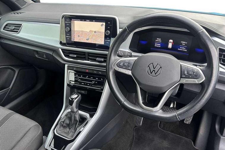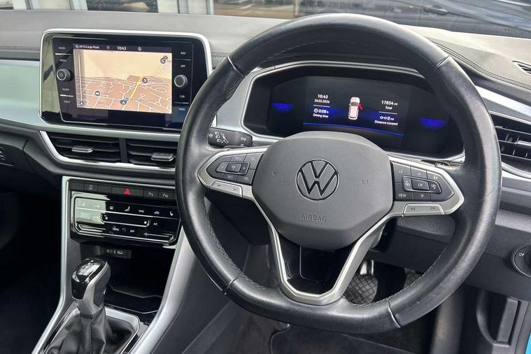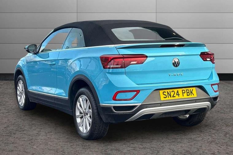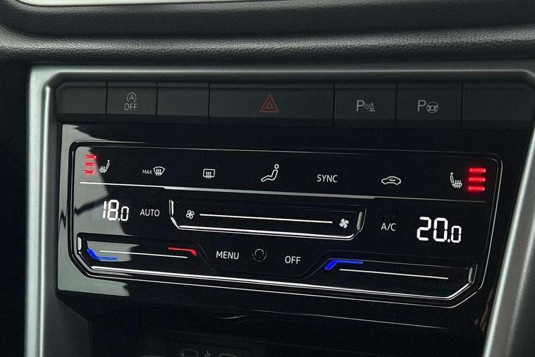 Adaptive cruise control and speed limiter, Advanced driver attention and drowsiness monitor, Bluetooth mobile phone interface, Brake pad wear indicator, Car information display, Driver tips and journey analysis, Emergency call service, Modified key software - reduce switch off time for key status change to Long no motion, Multifunction computer with visual gear change recommendation for fuel consumption, Multifunction front facing camera, Online services, Park assist including front and rear parking sensors, Speedo and rev counter, electronic odometer, trip, service interval display and exterior temperature gauge, Start/stop system with brake energy recovery, Tailgate/trunk lid release from outside, Warning sound and light for front seatbelts unfastened, Diversity antenna for FM reception, Music playback - MP3, WMA and AAC files, SMS functionality - read, compose and send SMS messages using touch-screen display, Title and cover art display, USB-C Interface and USB charging socket, We Connect and We Connect Plus functionality, Ambient lighting with logo projection, Auto dimming interior rear view mirror, Automatic hazard lights activation under emergency braking, Automatic headlight control with LED separate daytime running lights with coming/leaving home function, Black roof, Body colour door handles, Body colour rear spoiler, Body coloured bumpers and radiator grille with chrome trim and front fog lamps with chrome bezel, Chrome effect left and right trapezoid exhaust tailpipe fascia surround, Dark red rear combination lamps in LED technology, Dusk sensor, Exterior mirrors aspherical on driver side, convex on front passenger side, Headlight range control, Heat insulating glass windscreen, High level 3rd brake light, LED rear number plate lights, Power operated canvas convertible top, Power windows with comfort operation and circuit breaker, Rain sensor, Rear boot, Rear exhaust tailpipe, Rear fog light on one side and reversing lights on both sides, Remote electrically foldable door mirrors, puddle lights and reverse activated passenger door mirror, Volkswagen roundel, Windscreen wiper with intermittent wipe light, Without exterior ambient lighting, 12V socket in centre console storage area, 2 LED front reading lights, 2 seat bench in 2nd row, 50:50 Split folding rear seat backrests with fixed rear seat bench, Air care climatronic air conditoning system with active combination filter and 2-zone temperature control, Black door lower parts with chrome trim, Chrome plated surround to light, mirror and window switch, Door and side trim panel with leatherette insert, Easy entry backrest release, Front and rear carpet mats with black stitching, Front centre armrest, Front cupholders x 2, Front door pockets, Front seat back storage pockets, Heated multi function steering wheel with tiptronic, Height/reach adjust steering wheel, Instrument lighting, white adjustable panel illumination, Interior light delay, Interior light in footwell, Interior lighting with switch off delay and contact switches on all doors, Interior white ambient lighting and surround lighting, Isofix child seat preparation, Lockable glove compartment with light, Luggage compartment lighting, Rear head restraints, Single front passenger seat, Sun visors with illuminated vanity mirrors, Driver assistance pack without proactive passenger protection - T-Roc Cabriolet DSG, 2 x 3-point seatbelts/outer rear seats with ECE label, Driver and front passenger airbag with front passenger airbag deactivation, Driver and front passenger safety-optimised head restraints, Drivers seatbelt reminder, Electronic parking brake, Electronic Stability Control (ESC) including ABS, ASR and EDL, Front and rear disc brakes, Front assist with autonomous emergency braking, Pedestrian monitoring, Predictive pedestrian protection, Rigid safety cell with front and rear crumple zones, Side airbag/thorax airbag system, for front passengers, Three point height adjust front seatbelts + pretensioners, Two tone horn, Tyre pressure loss indicator, Volkswagen roadside assistance, Anti-theft alarm system with interior protection and central locking system with SAFELOCK, radio remote control and 2 remote control folding keys, Electronic engine immobiliser, Trims for alloy wheels,